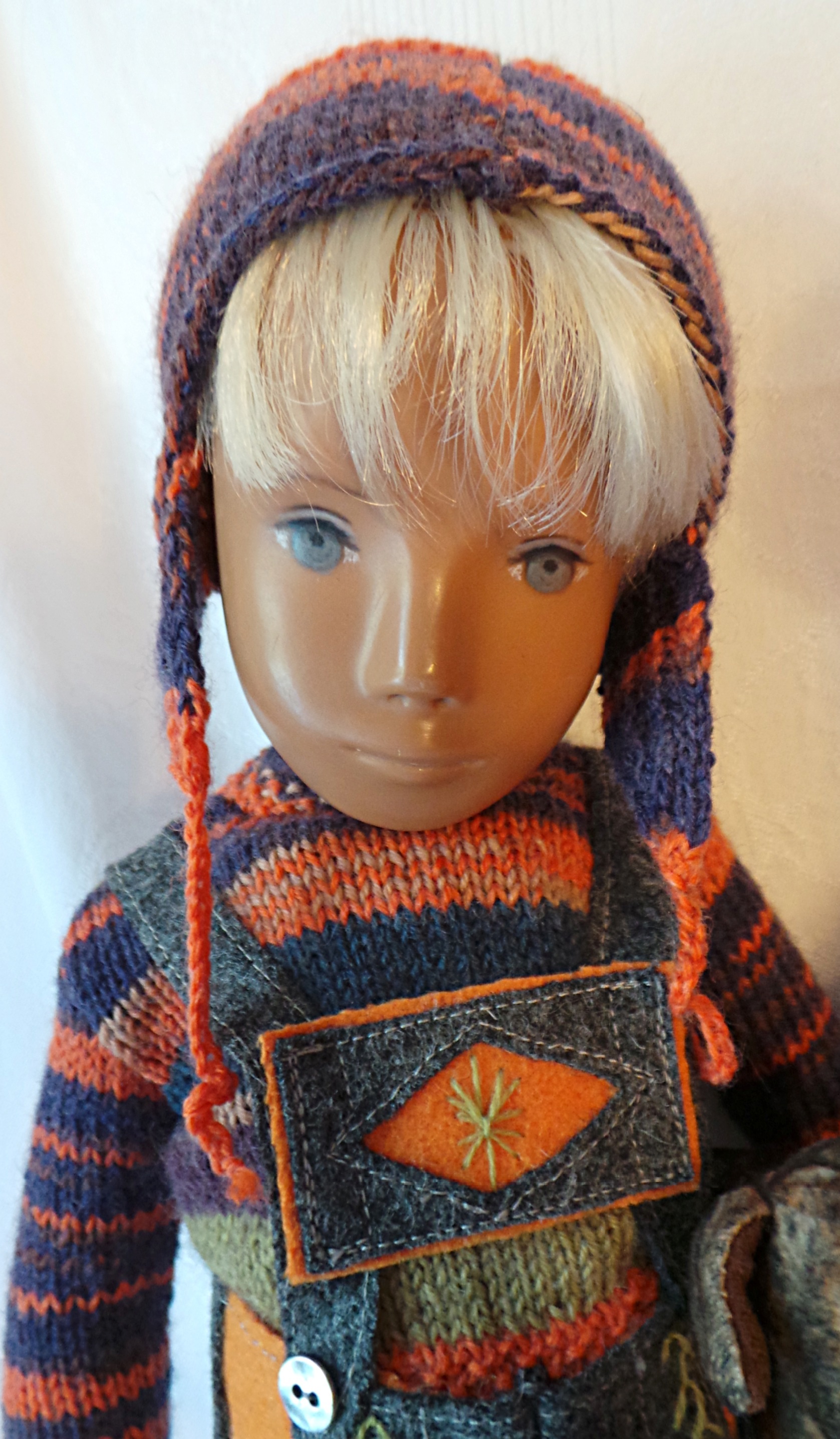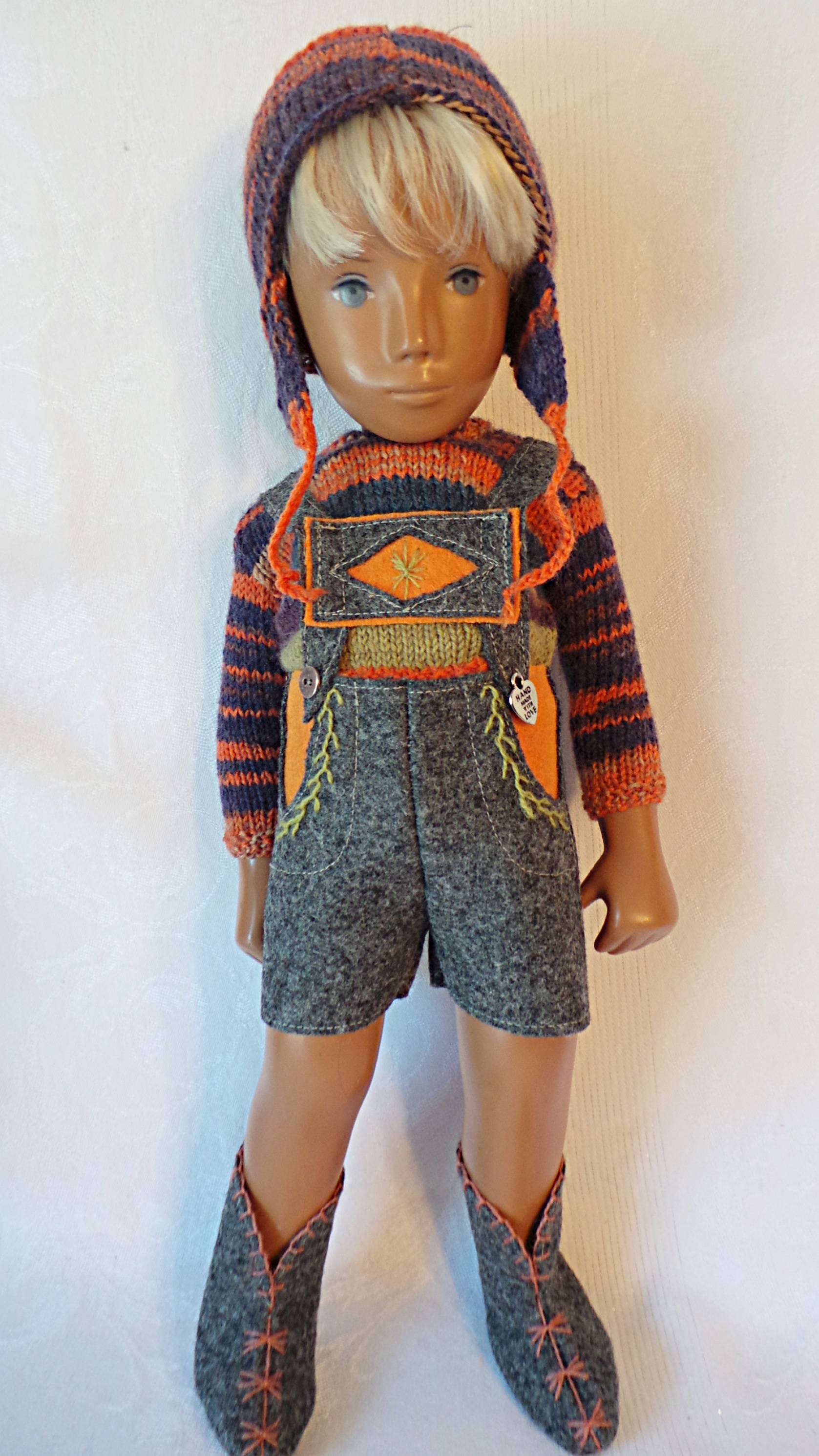 Today, a quick post before going to work of Chloe and Finn wearing lovely outfits made by Janet Myhill Dabbs. I received them just after Christmas and Finn insisted on being first to wear the lederhosen. I think I would have chosen Drew with his dark features to wear them but I cannot resist dear Finn π Both outfits have such nice detail down to the tiny, silver heart advising “Hand made with Love”. When you hold these outfits in your hands, you can see the great care that was given in their creation. I hope you enjoy the photos. Have a wonderful day!!!