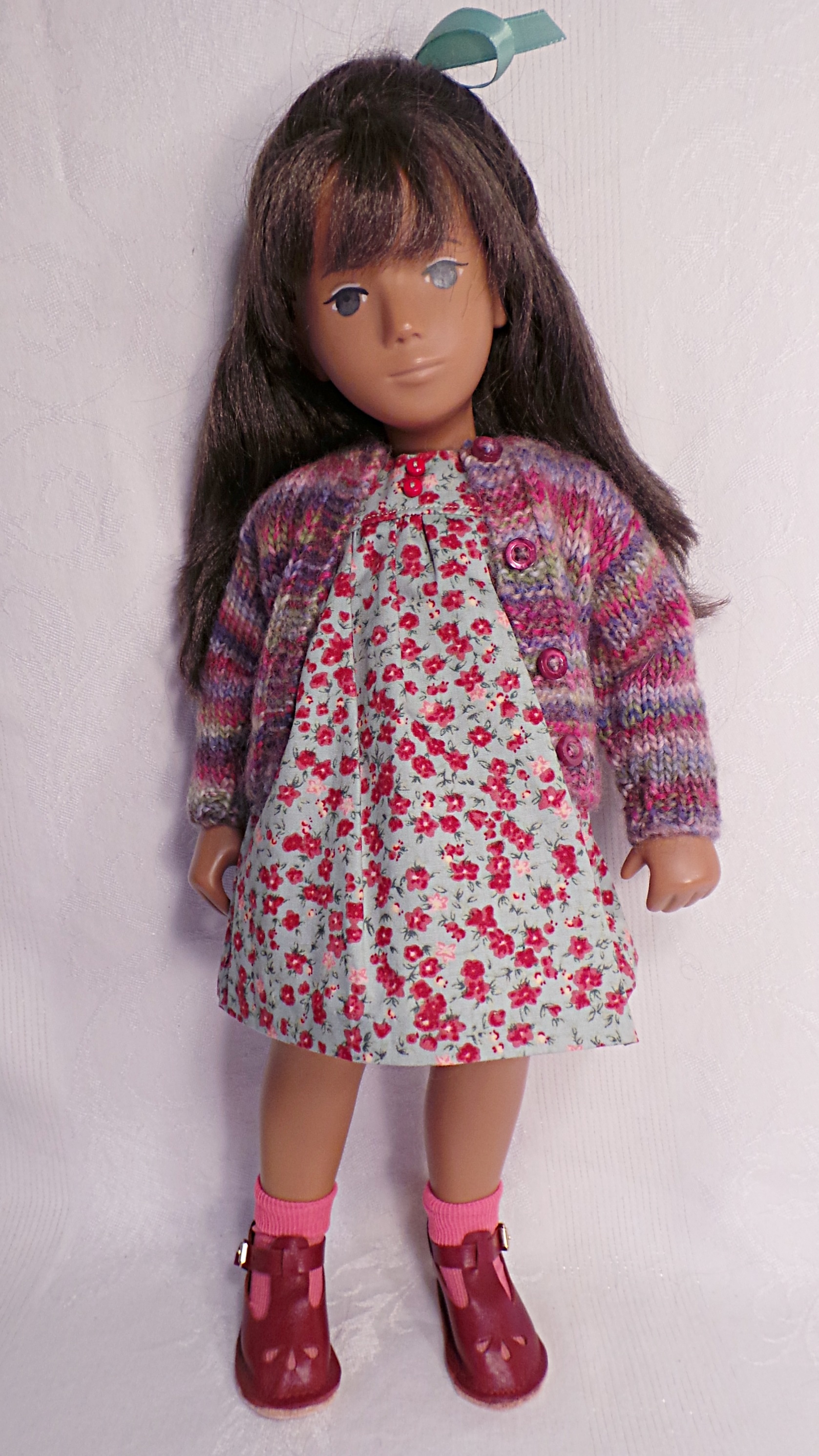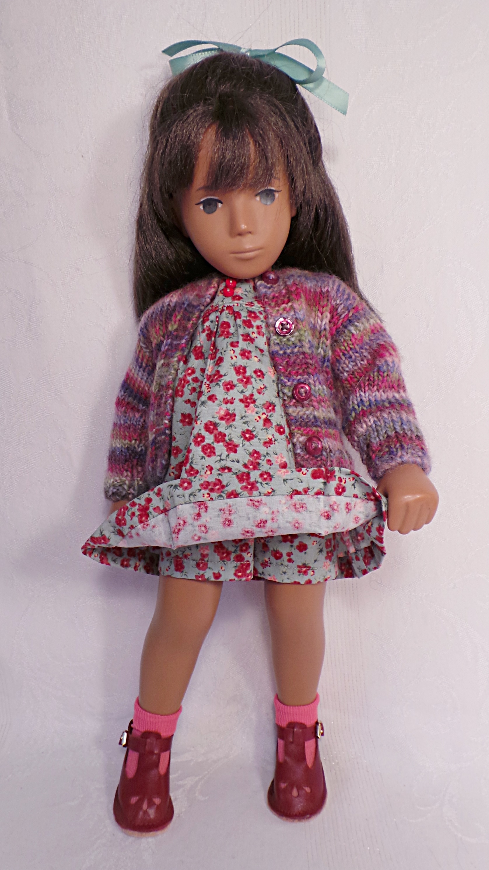 I love coming home to enjoy the weekend. I took a few photos of Chloe wearing a pretty dress and sweater and both are from Shelly’s site. Her wonderful leather shoes are by Monica.