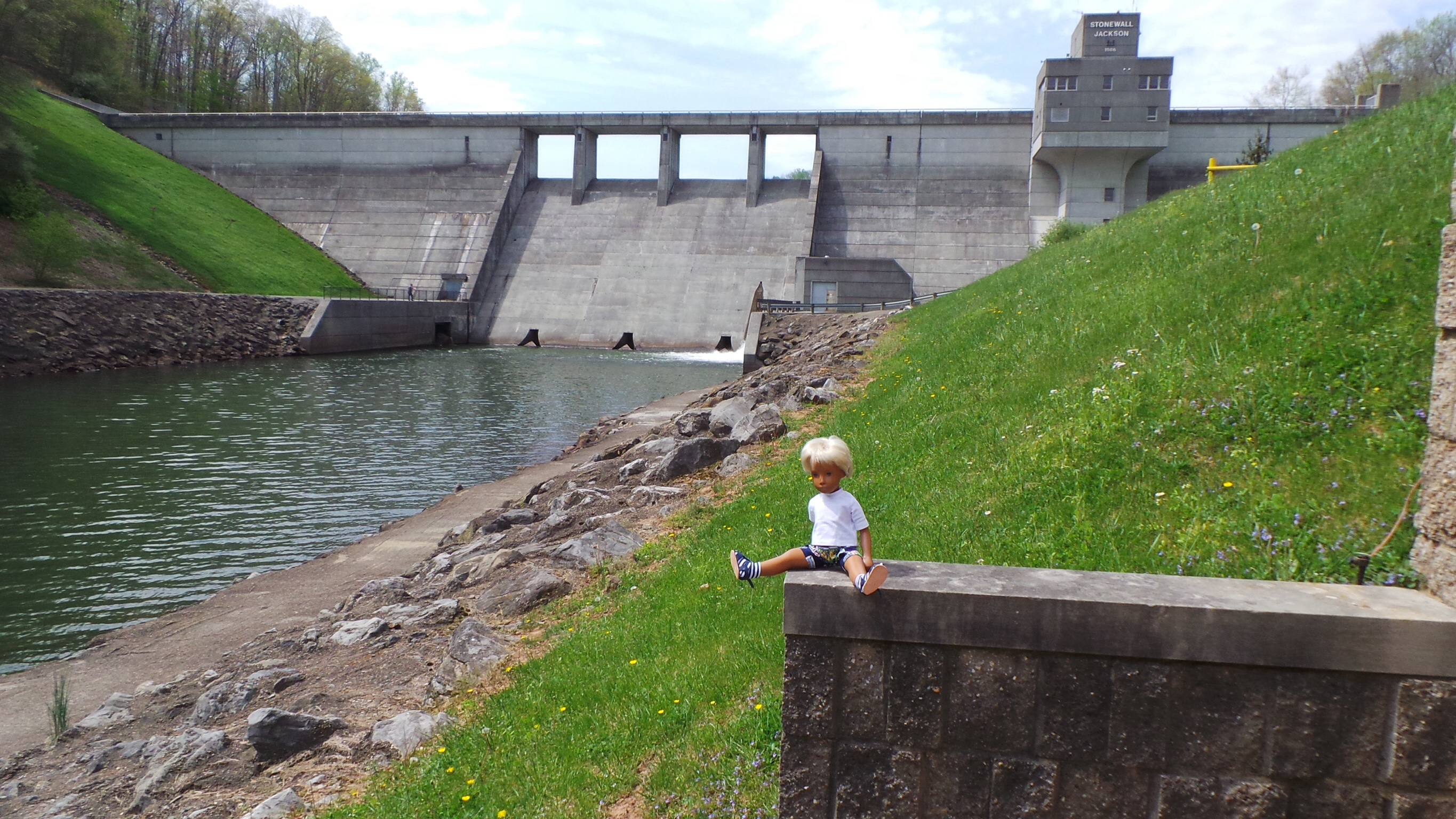 Finn decided to sit a while and look at the huge Stonewall Jackson Dam. This dam impounds the water that creates all of the water recreation activities on the lake behind it.