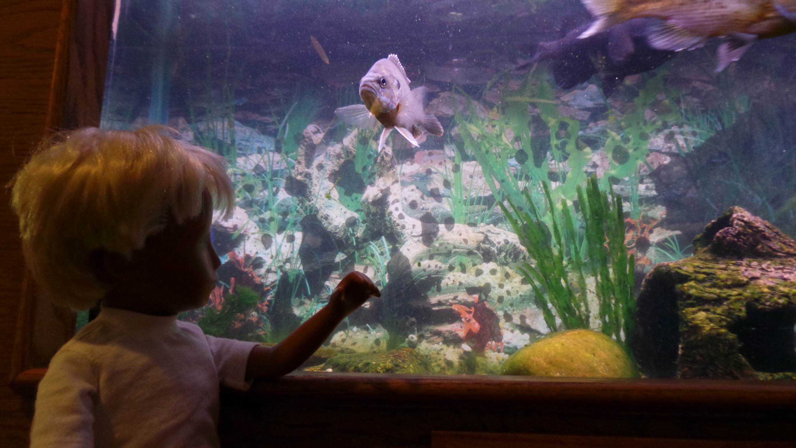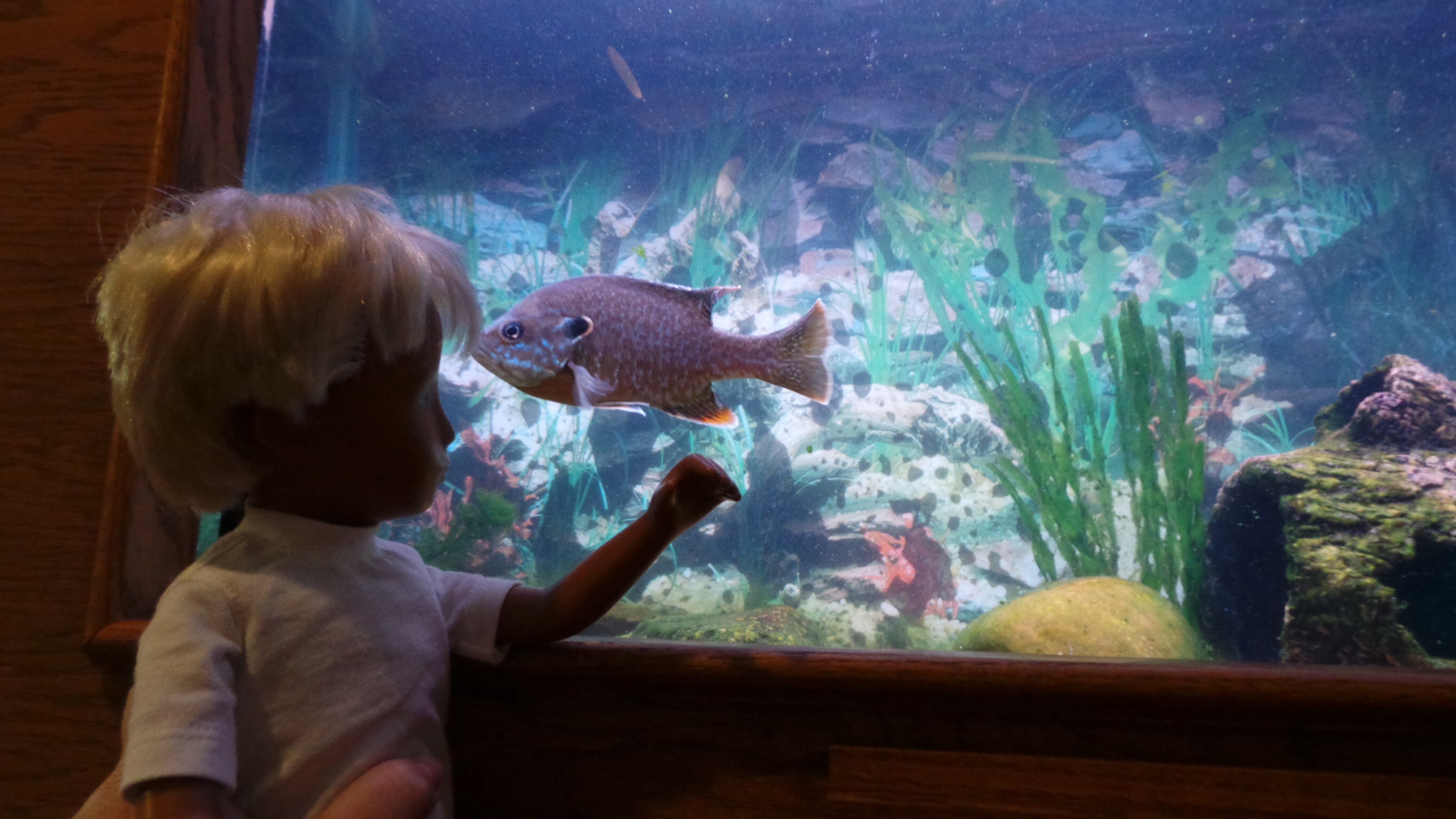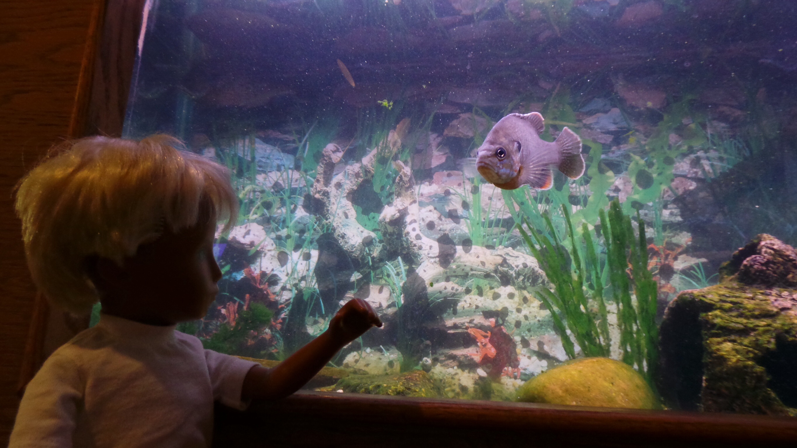 Finn loved the aquarium best of all. This blue gill was very friendly and came over to Finn immediatly to say hello.