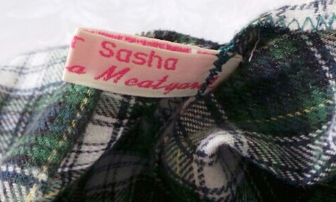 This photo of Abby shows her wearing a beautiful studio dress. It is not original to her and Mummy bought it for her. Mummy told me that Abby’s outfit was used in at least one Sasha exhibit. It is made from used linen fabric and decorated with braids, ric-rac, and ribbon. I like it because it is so soft and pretty. 🙂