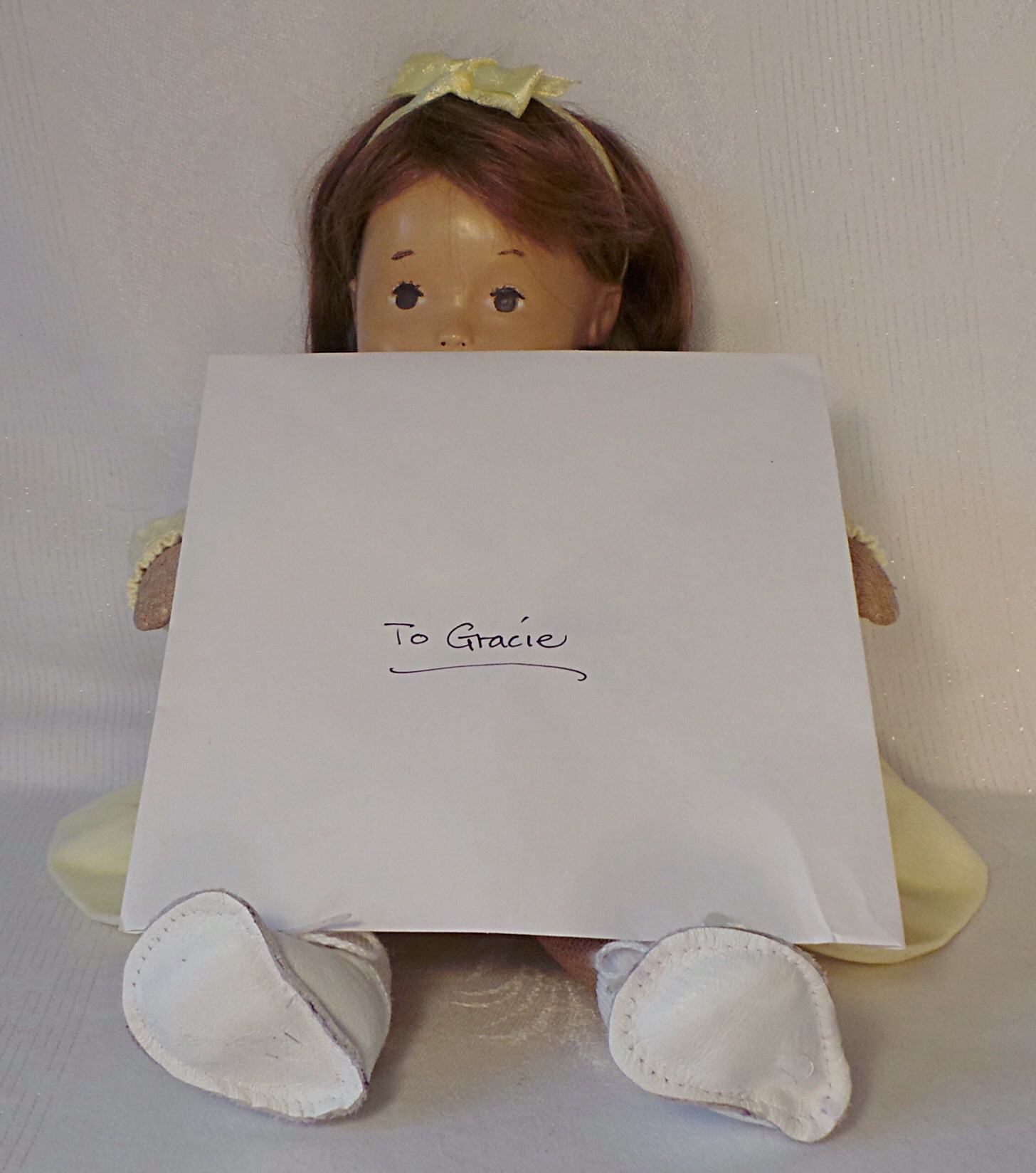 Oh, how lovely, a card with my name, Gracie, written on it. Mummy read it to me and the box was sent by my loving Godmother, Norvell Jones. Auntie Norvell put two wrapped packages inside the box. How exciting, I want to dance around the room!