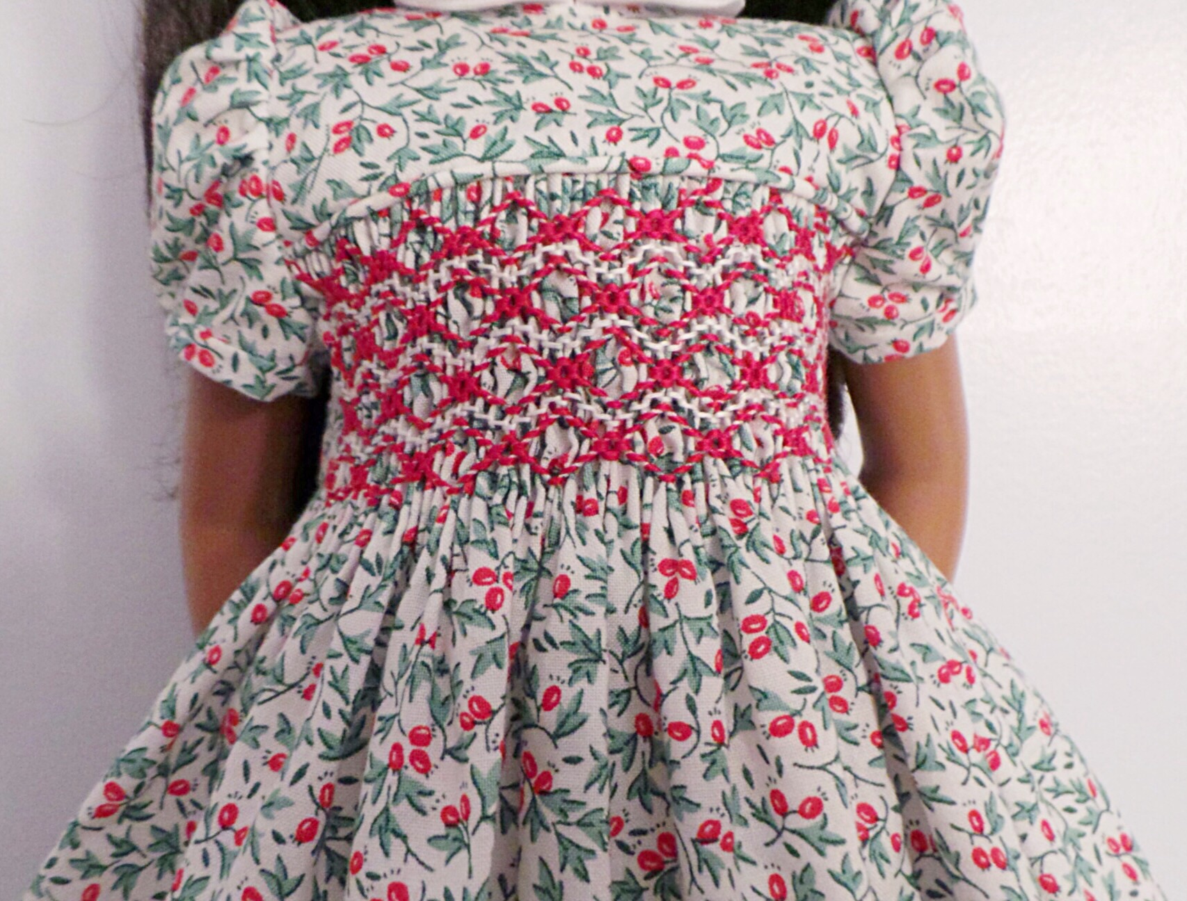 Adeline is very happy to model her new Christmas outfit made by Karen Warnaka. I love Karen’s dresses with the beautiful smocking and her amazing wool jackets and coats. This outfit was made for sweet Adeline to wear for Christmas. ❤