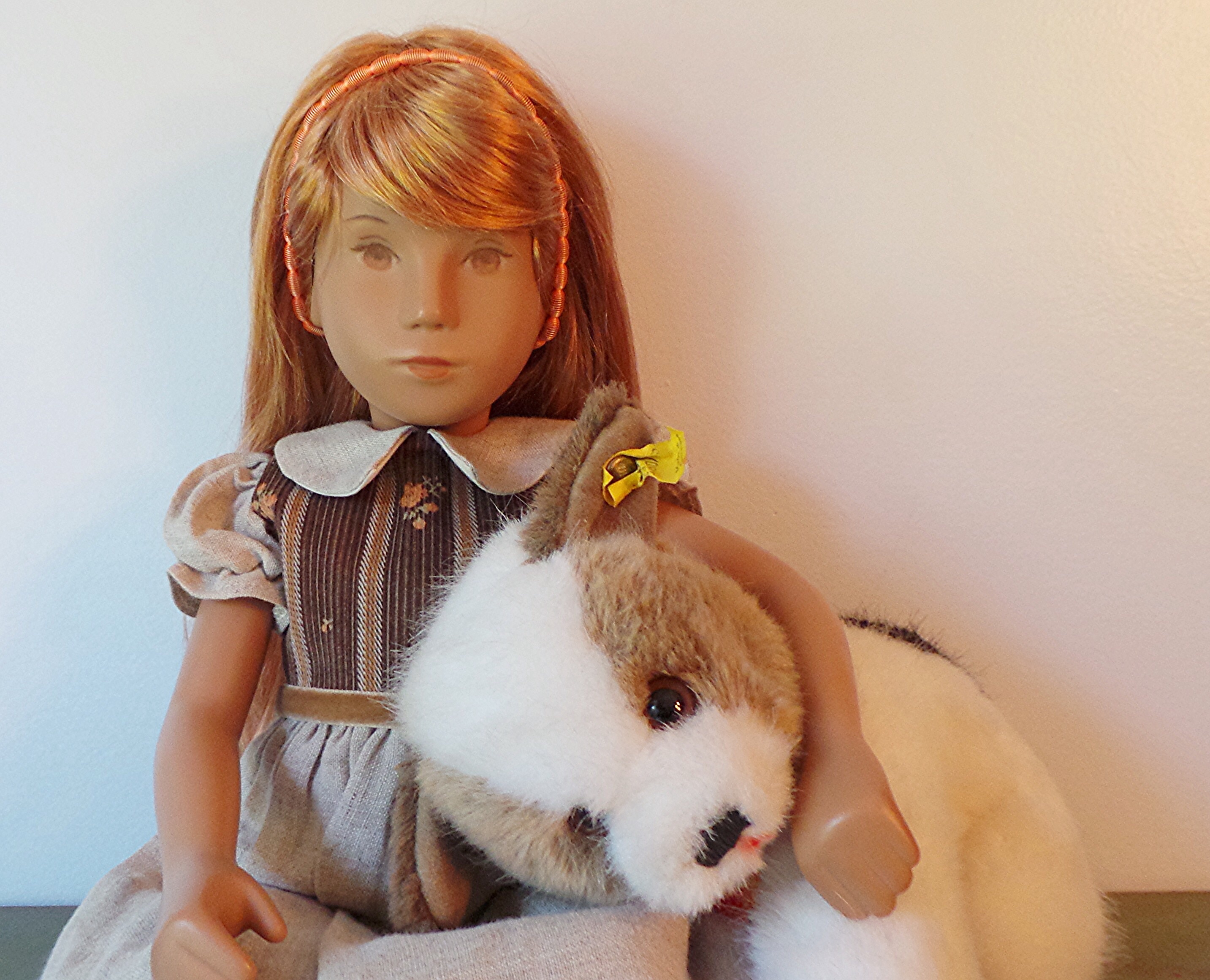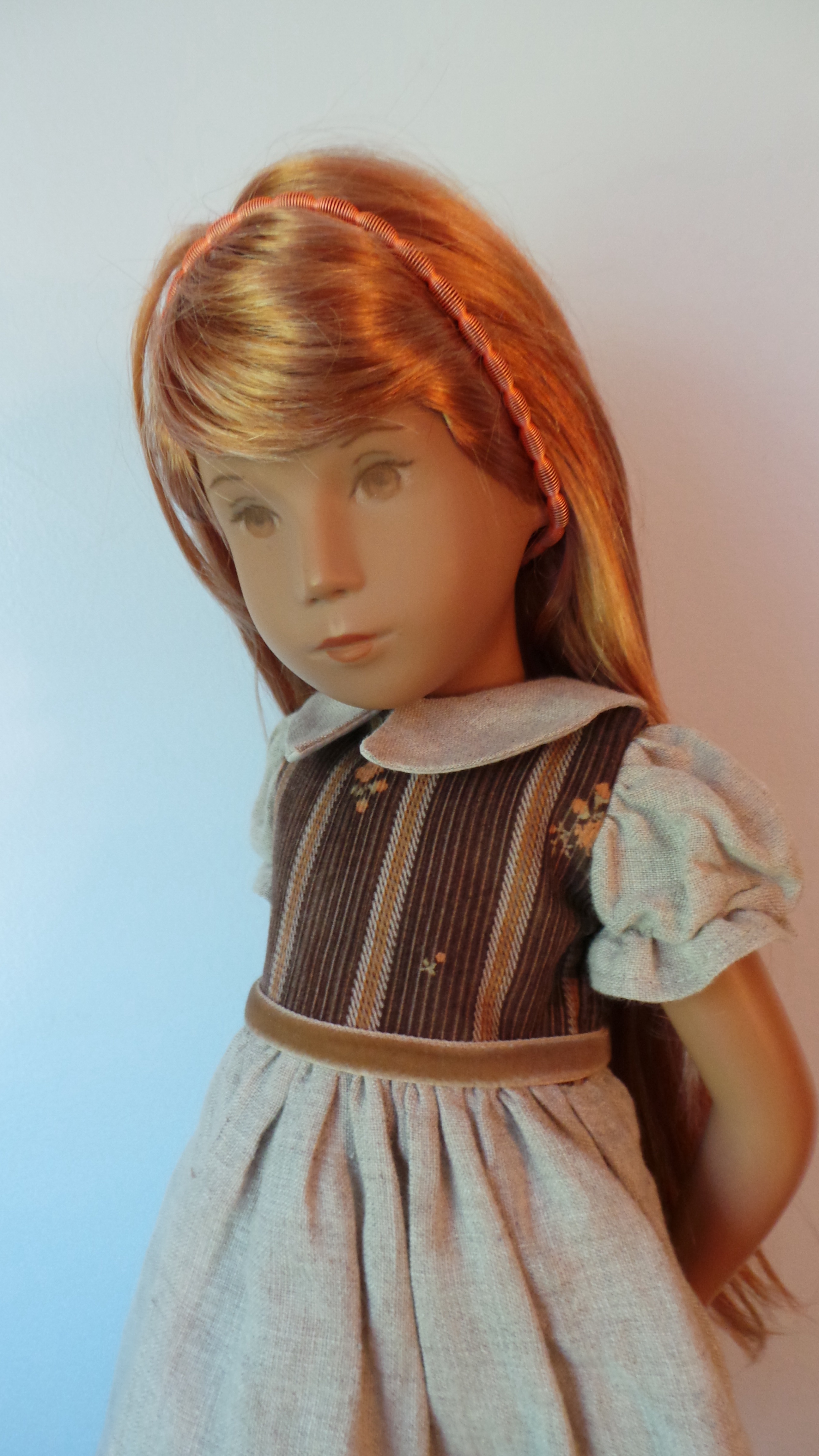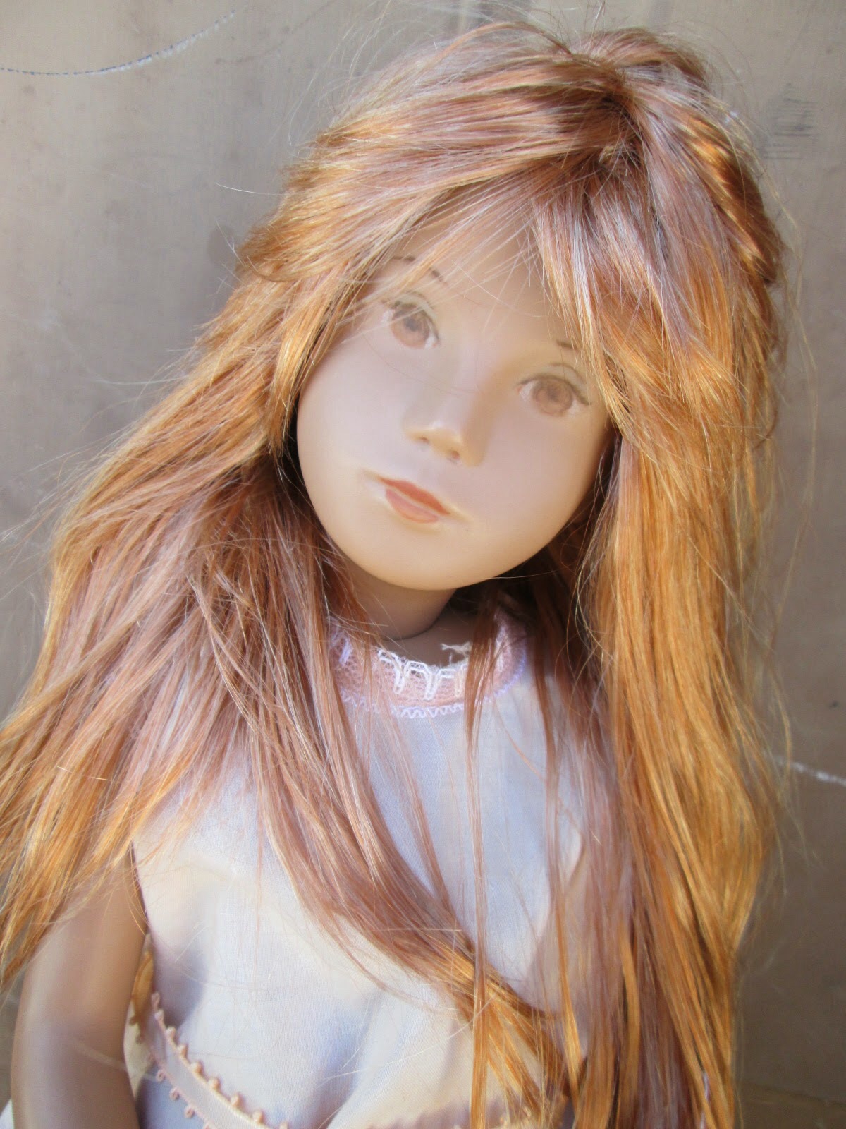 I thought it would be a very nice way to kick off the introductions of two new additions to the Sasha Shangri-La family by posting their cheery little faces on my 100th blog post, a notable milestone!  So, I am popping the cork of celebration by first introducing the petite Marcie. Marcie was adopted from the loving home of Ellen Church. She is a 1970 Gotz no navel with beautiful blue eyes and remarkable red hair. ❀