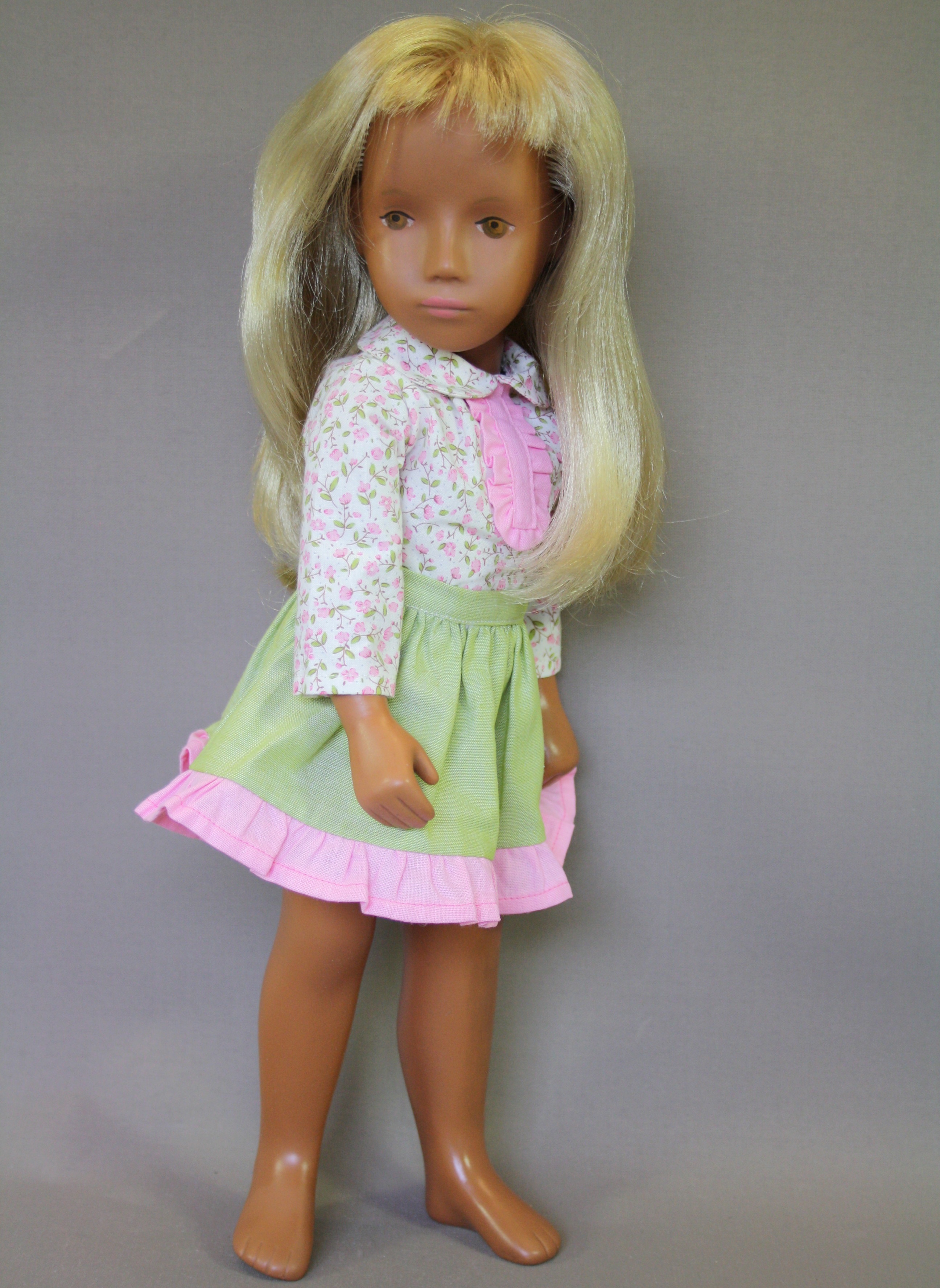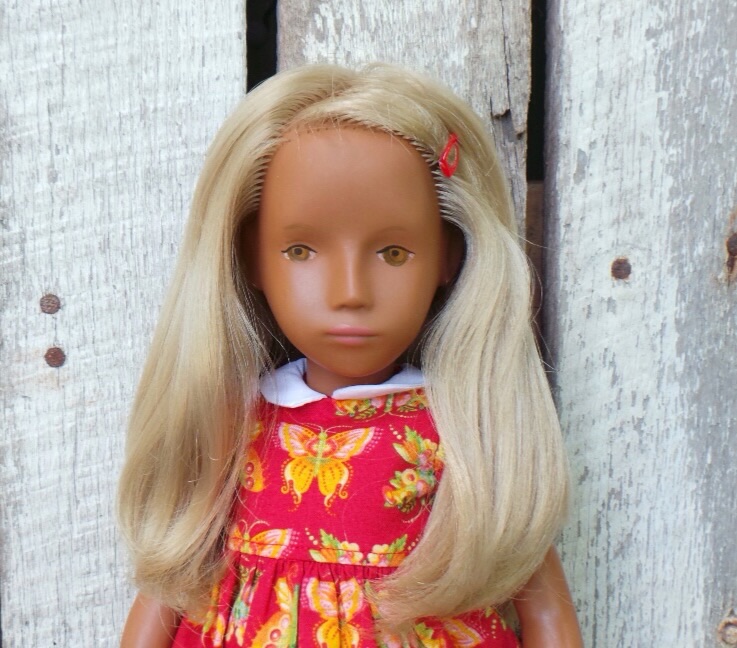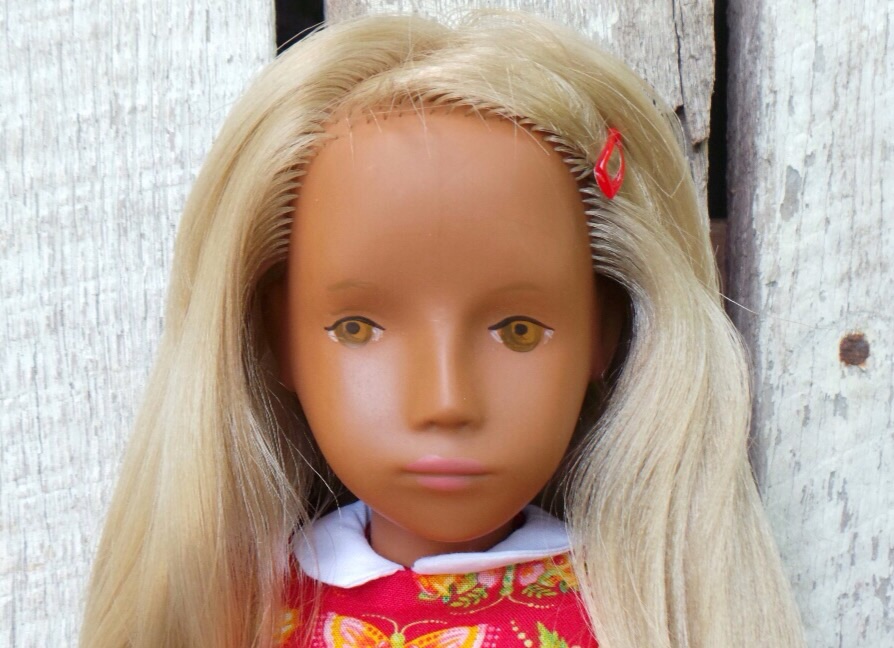 I am very vunerable to Sasha waifs and this pretty little golden eyed 1960’s Gotz girl captured my heart on Shelly’s site. I watched her for what seemed like an eternity and finally contacted Shelly and adopted her. 🙂