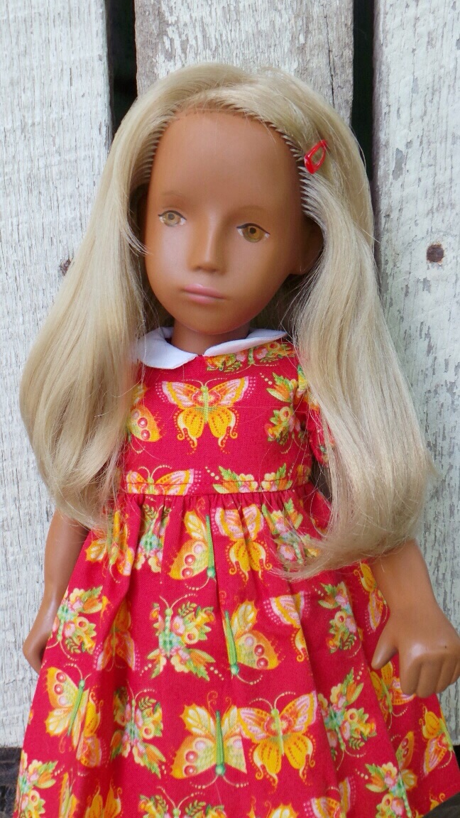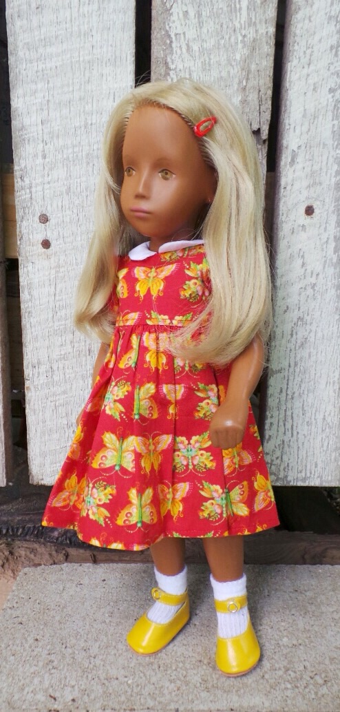 I’m very fond of this style of the early Gotz eye-painting and love how the golden butterflies on her dress enhance their golden hue. I can’t understand just how the later 1990s Gotz dolls came to have such poor bland and insipid eye-styles after these super early examples.