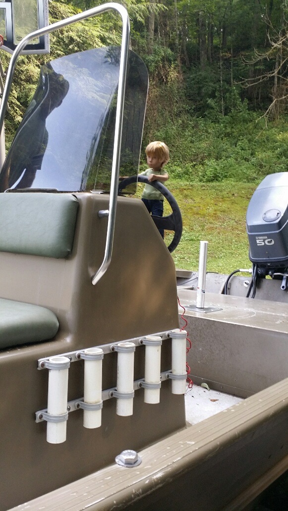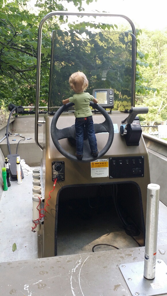 Max is an outdoors boy and he is having fun with Dad’s new fishing boat.