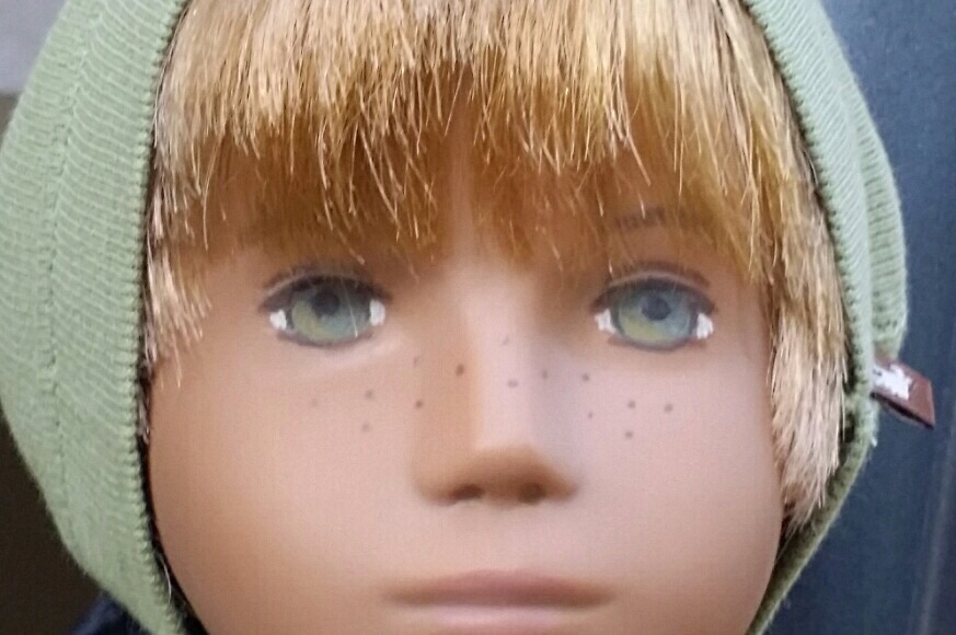 When I left California, I left a blonde Gregor in the very talented hands of Cassie Rogers. The boy would be cleaned, repainted and hair dyed. Plus, Cassie perfectly outfitted him. ย Please meet the very handsome, green eyed, freckle faced Max. ๐Ÿ™‚