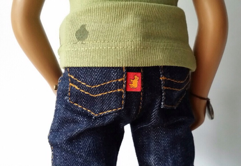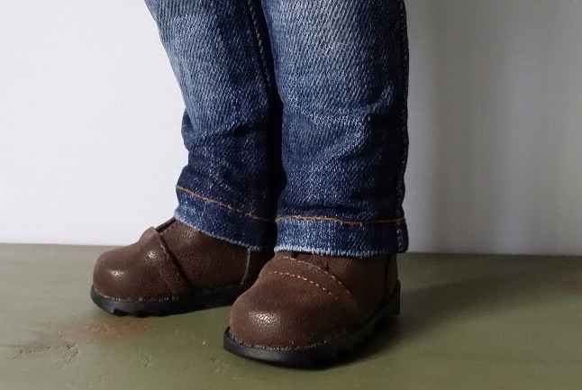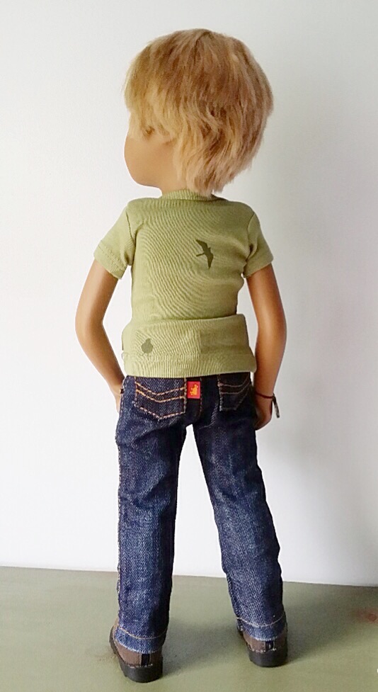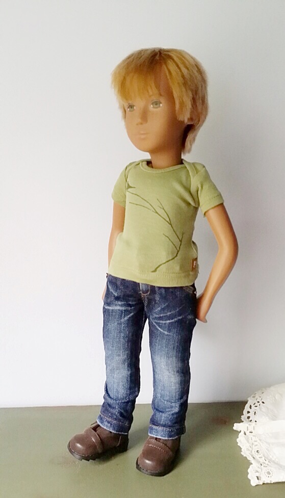 Cassie dressed Max wonderfully with green t-shirt, distressed jeans, and brown leather boy boots. He has a hat too that is shown in other photos. I absolutely love Max and his outfit!
