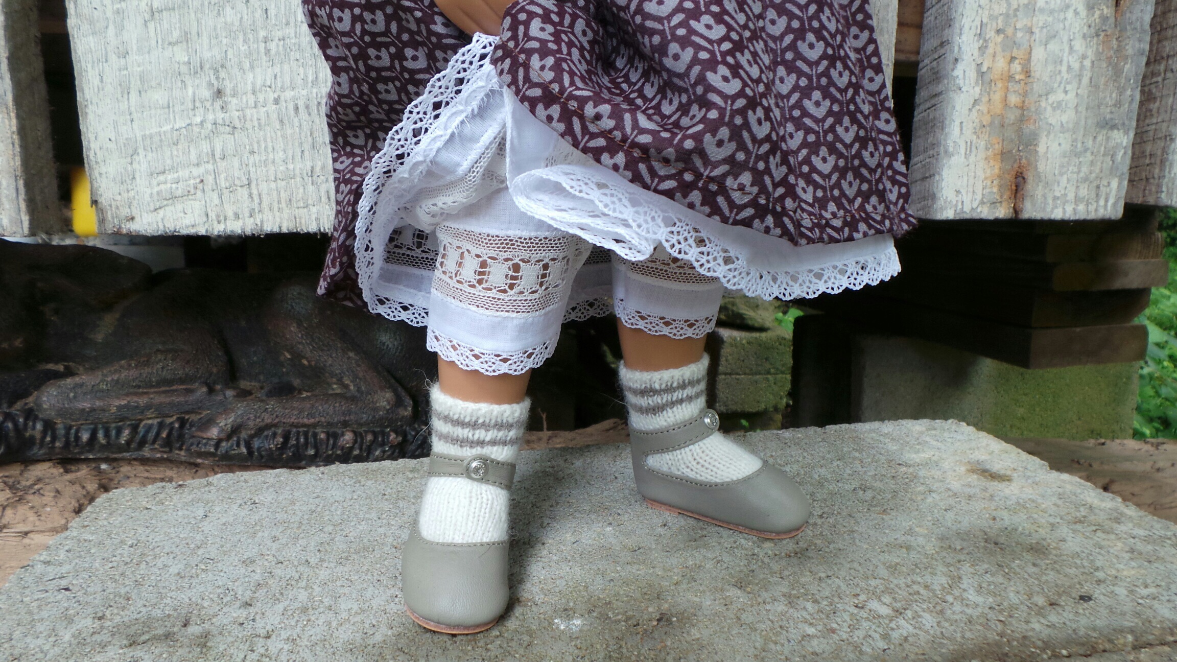 Gertie’s dress by Dolliepatch is made of silk and her leather shoes are by Sashapotamus. πŸ™‚