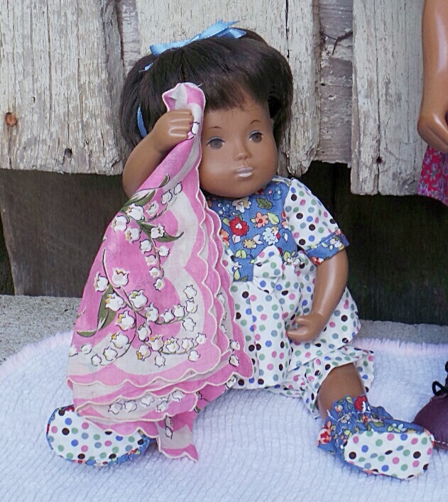 I have been put away for a long time and Mommy said it was about time to show me, Baby Pixie, on the Sasha Shangri-La blog. Mommy says that I am a very early Trendon baby with molded eyelids and she also said that I have a quirky eyebrow too. I am not certain what all of this means but Mommy said I should add this to my Baby Pixie post. ❀