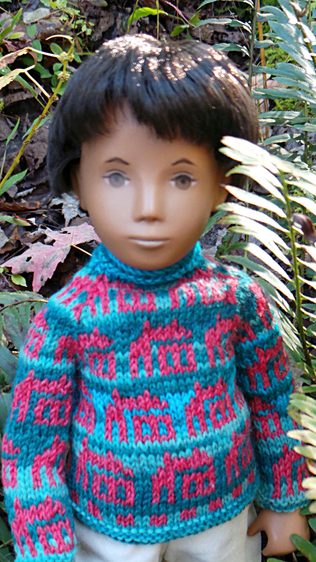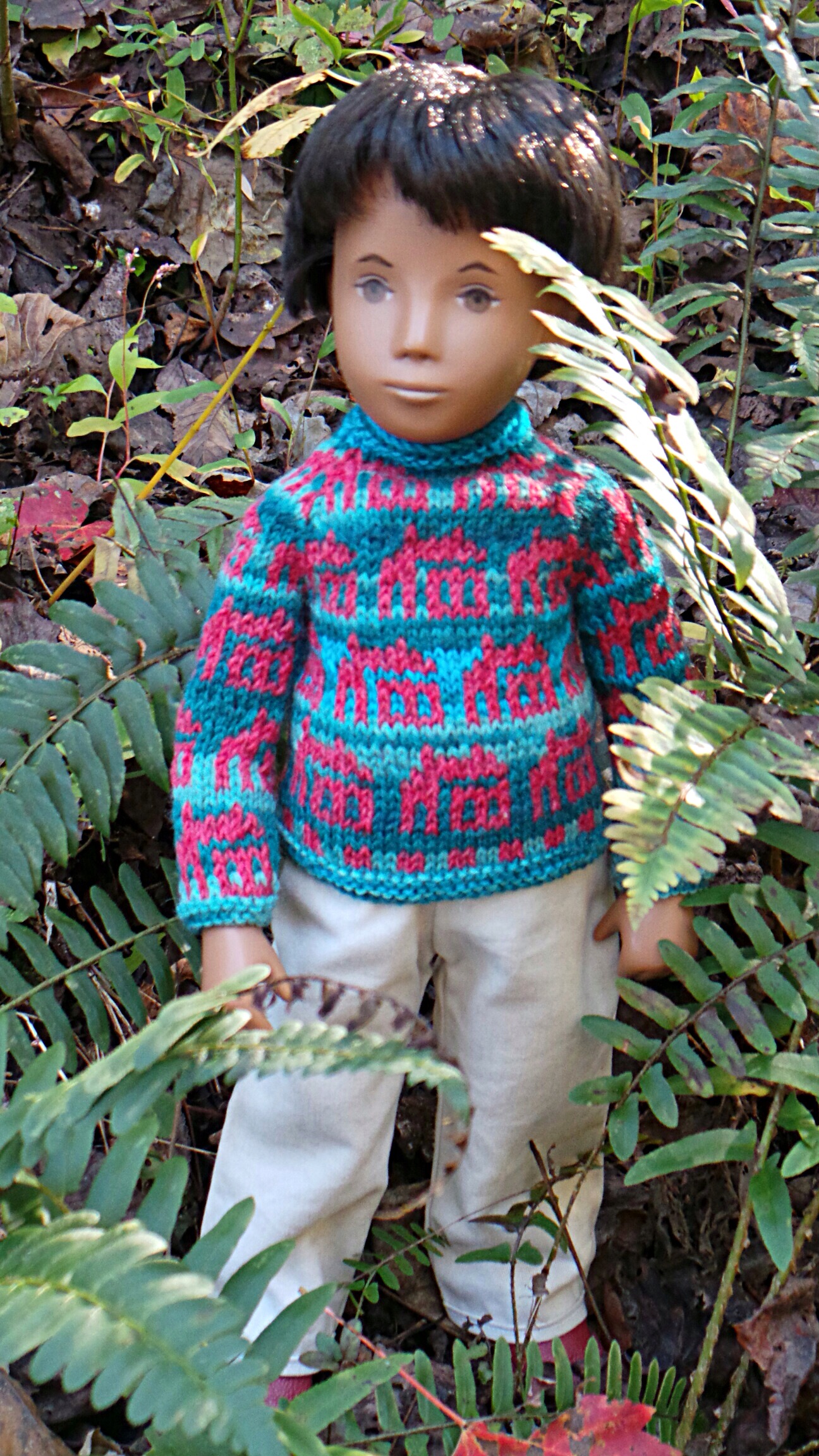 Bronson is wearing a wonderful knitted creation using a mini Kaffe pattern. It is perfect for these cooler days. ❀