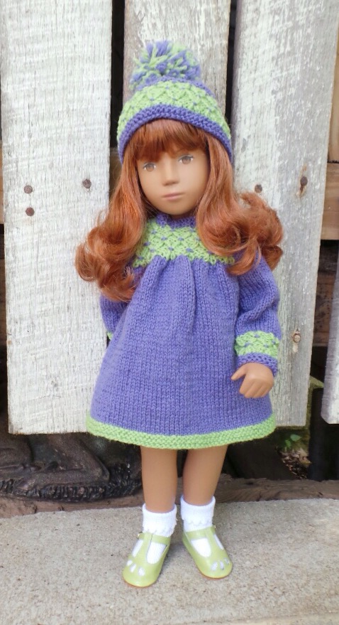 Right, that’s now finished so we’re back to complete this comment. That’s a really pretty and finely knitted dress that you’re wearing today Tassie. We love all, the pale green details and the bobble hat.