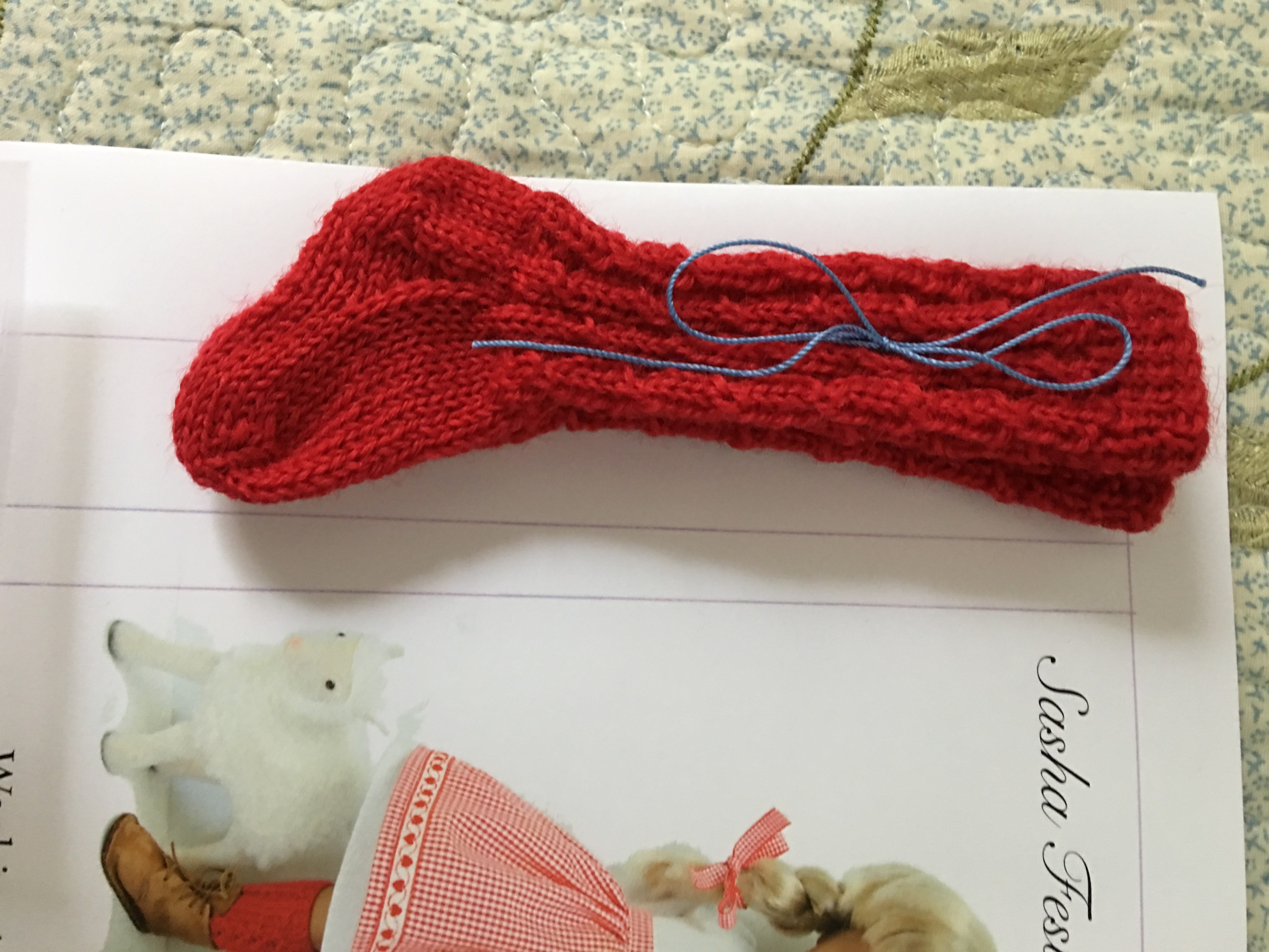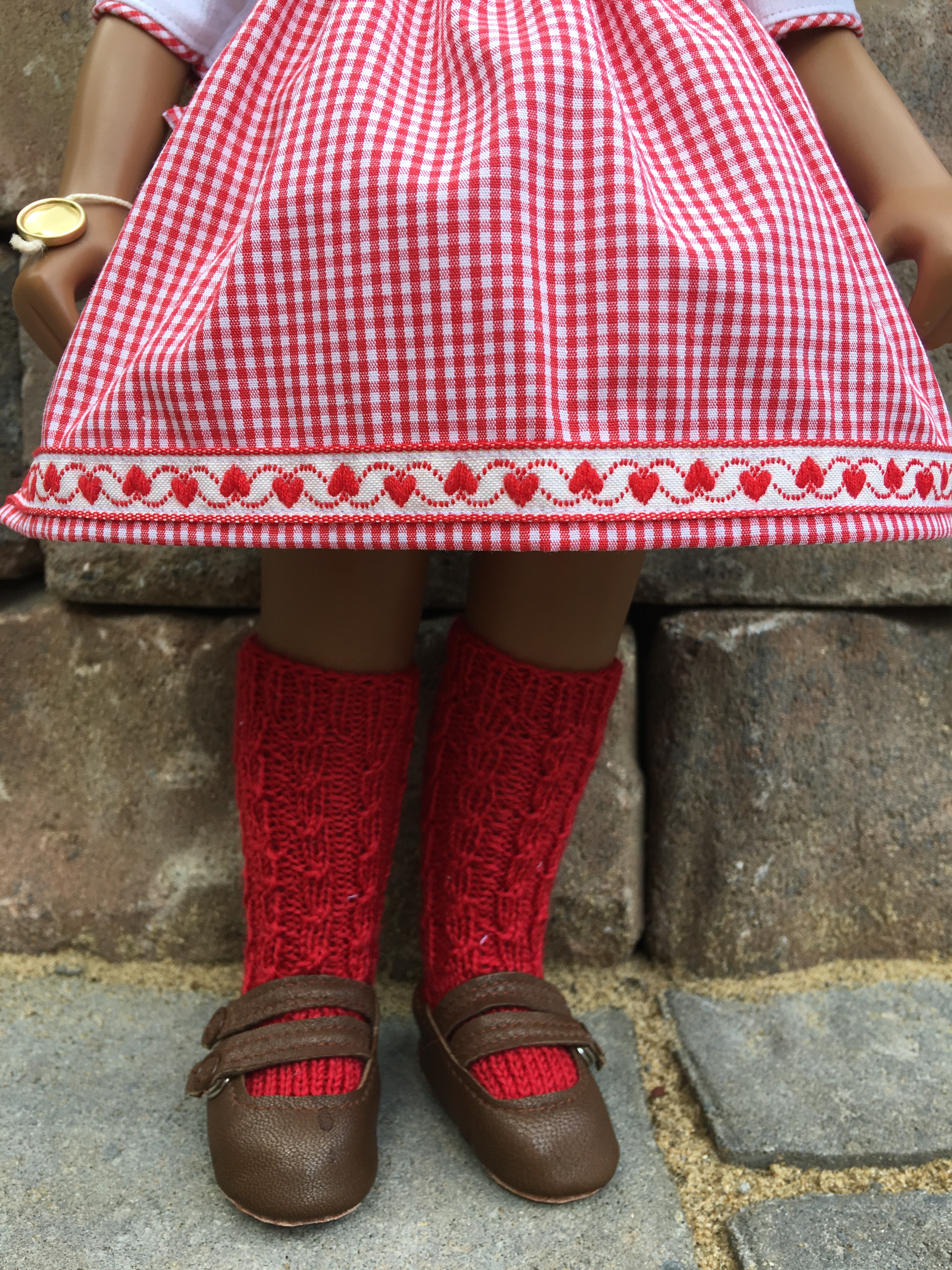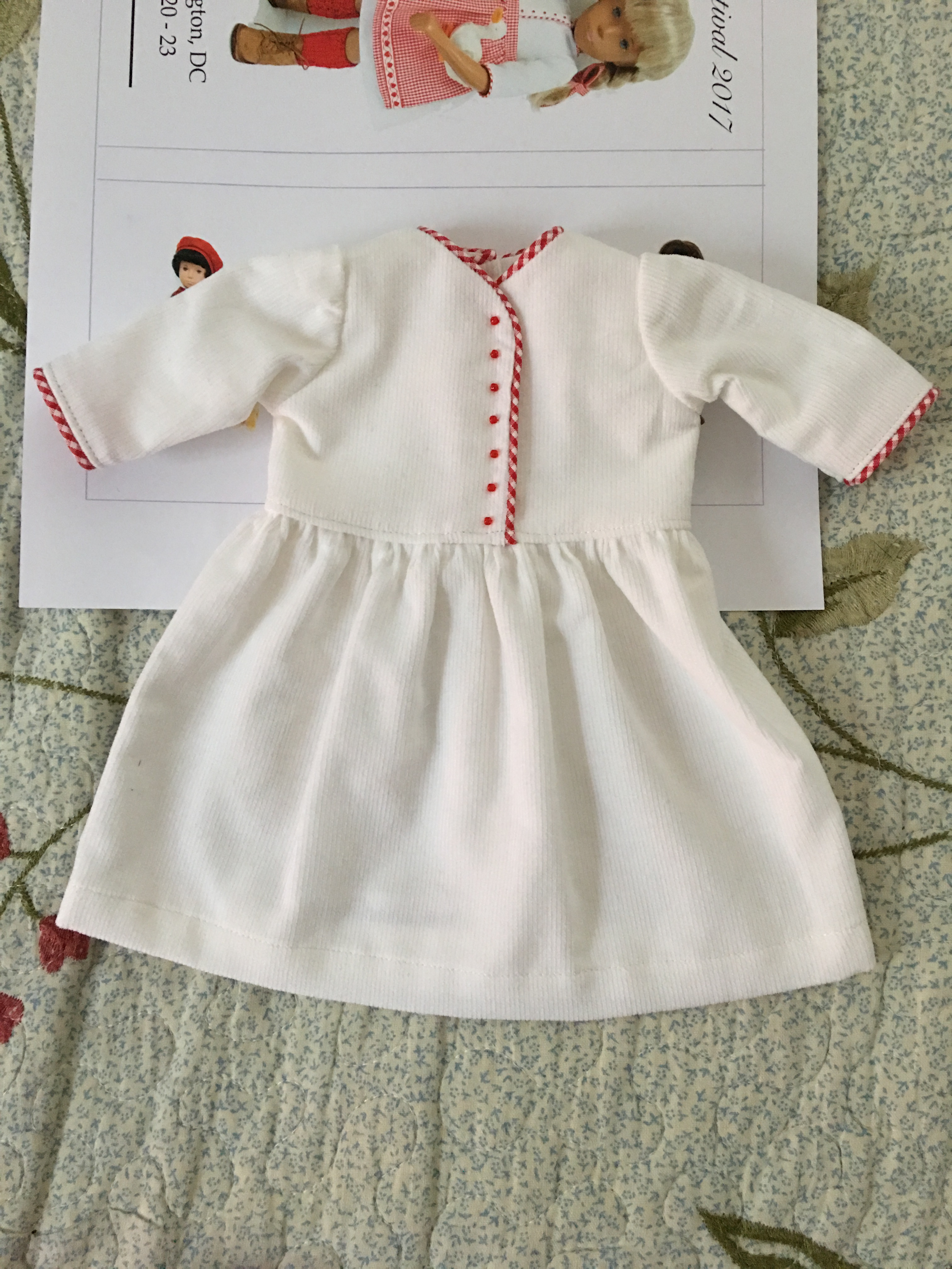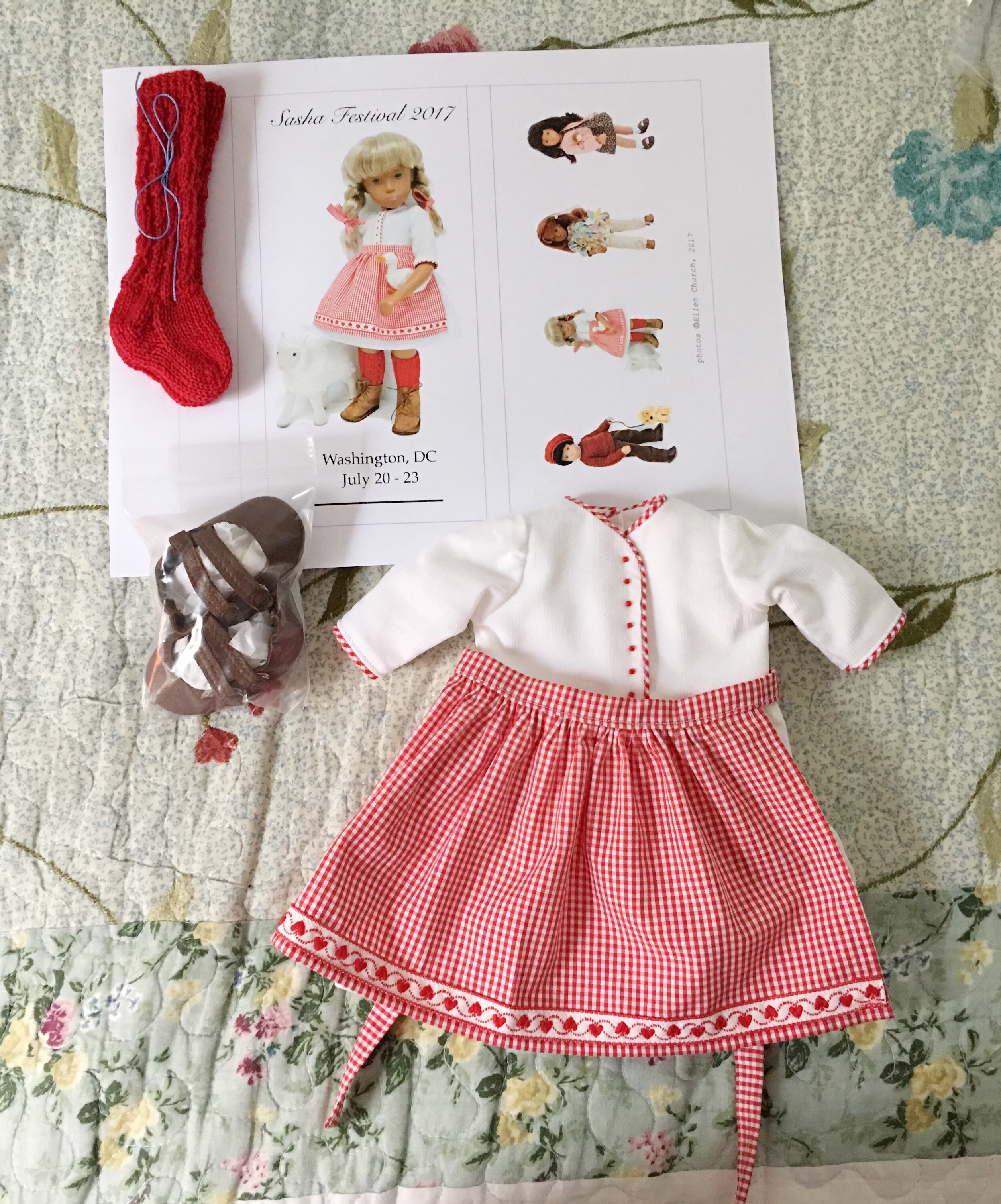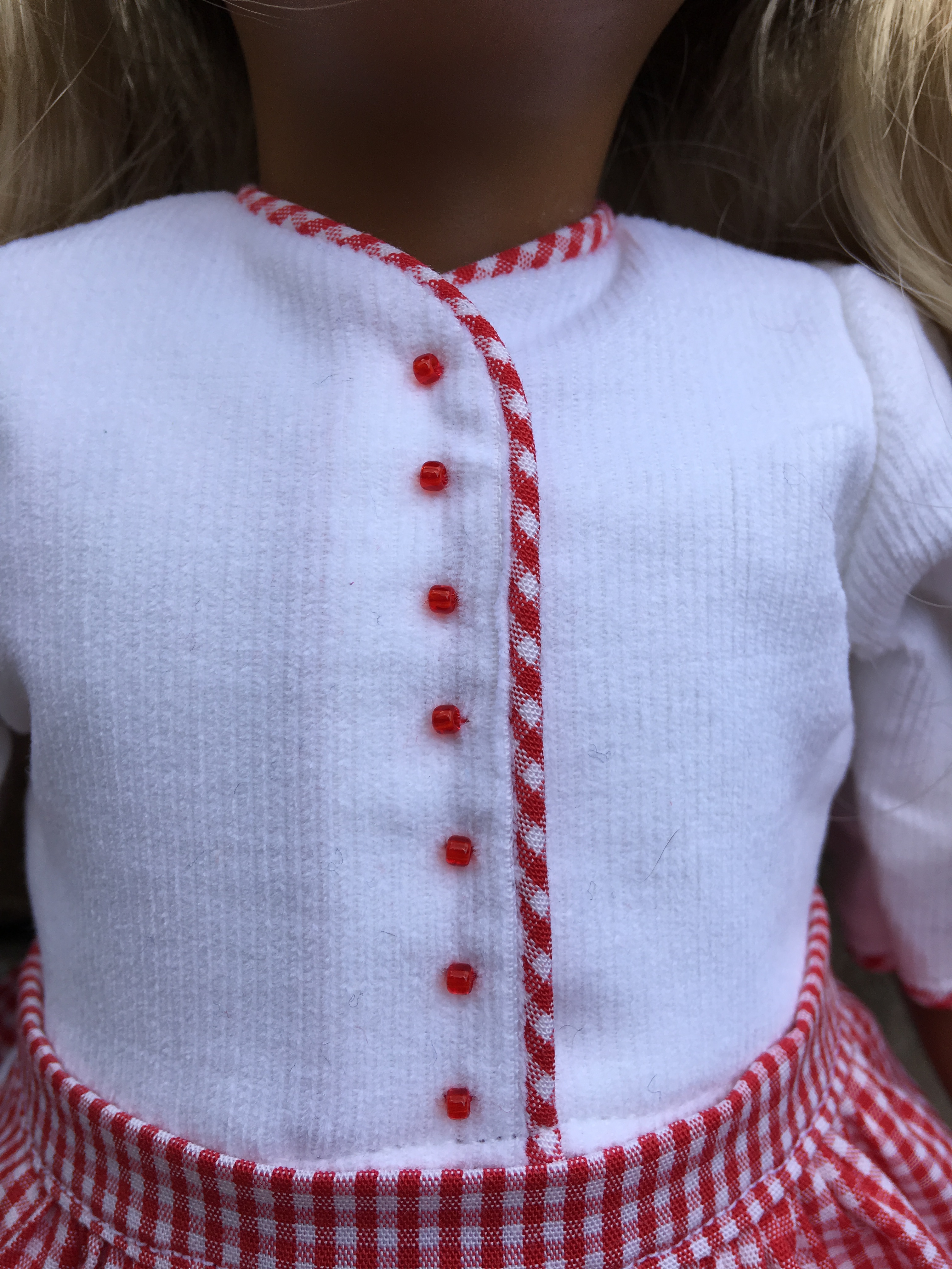 The full outfit on Alaine. I happened to have some red gingham ribbon for her hair. ❤️