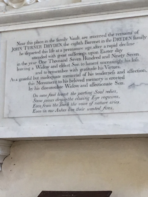 A beautiful and moving wall monument in memory of John Turner Dryden.