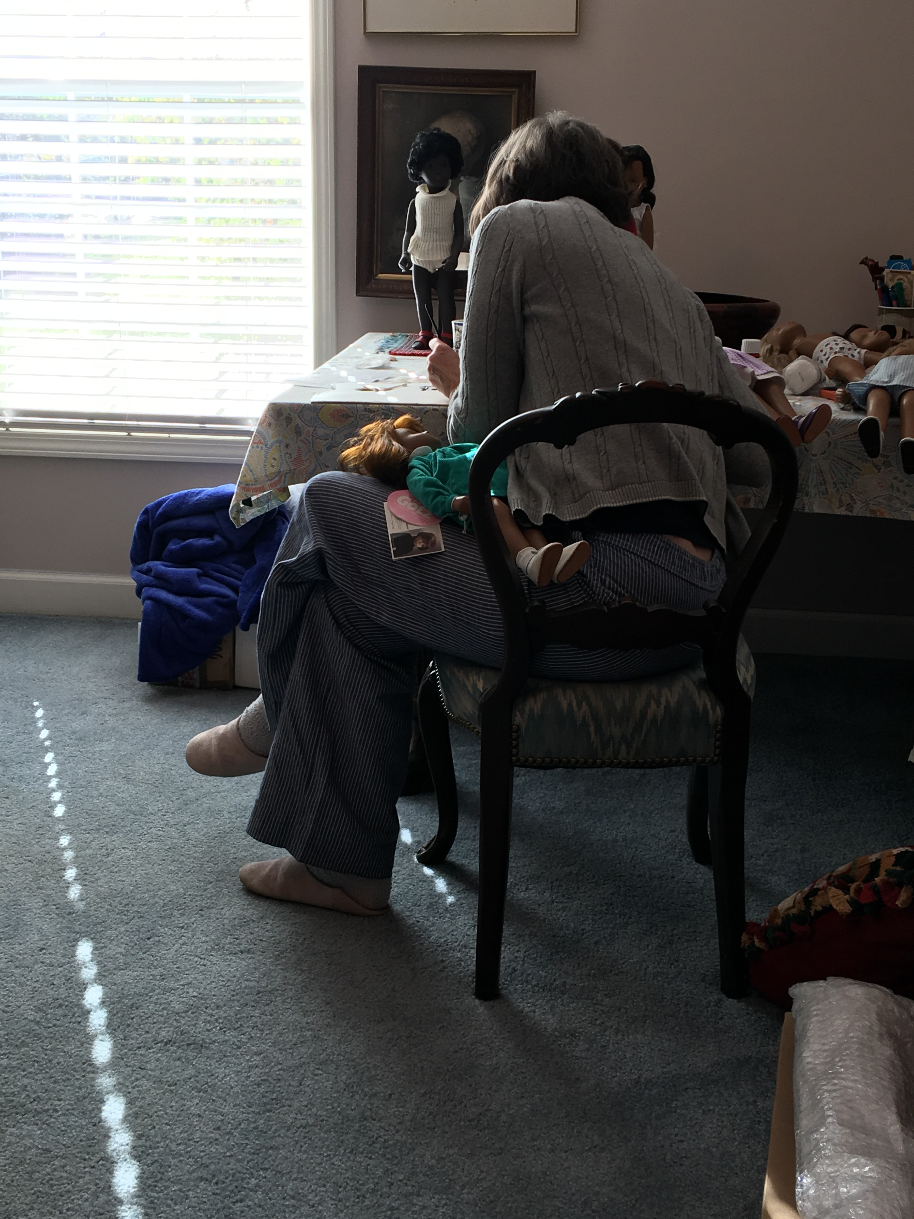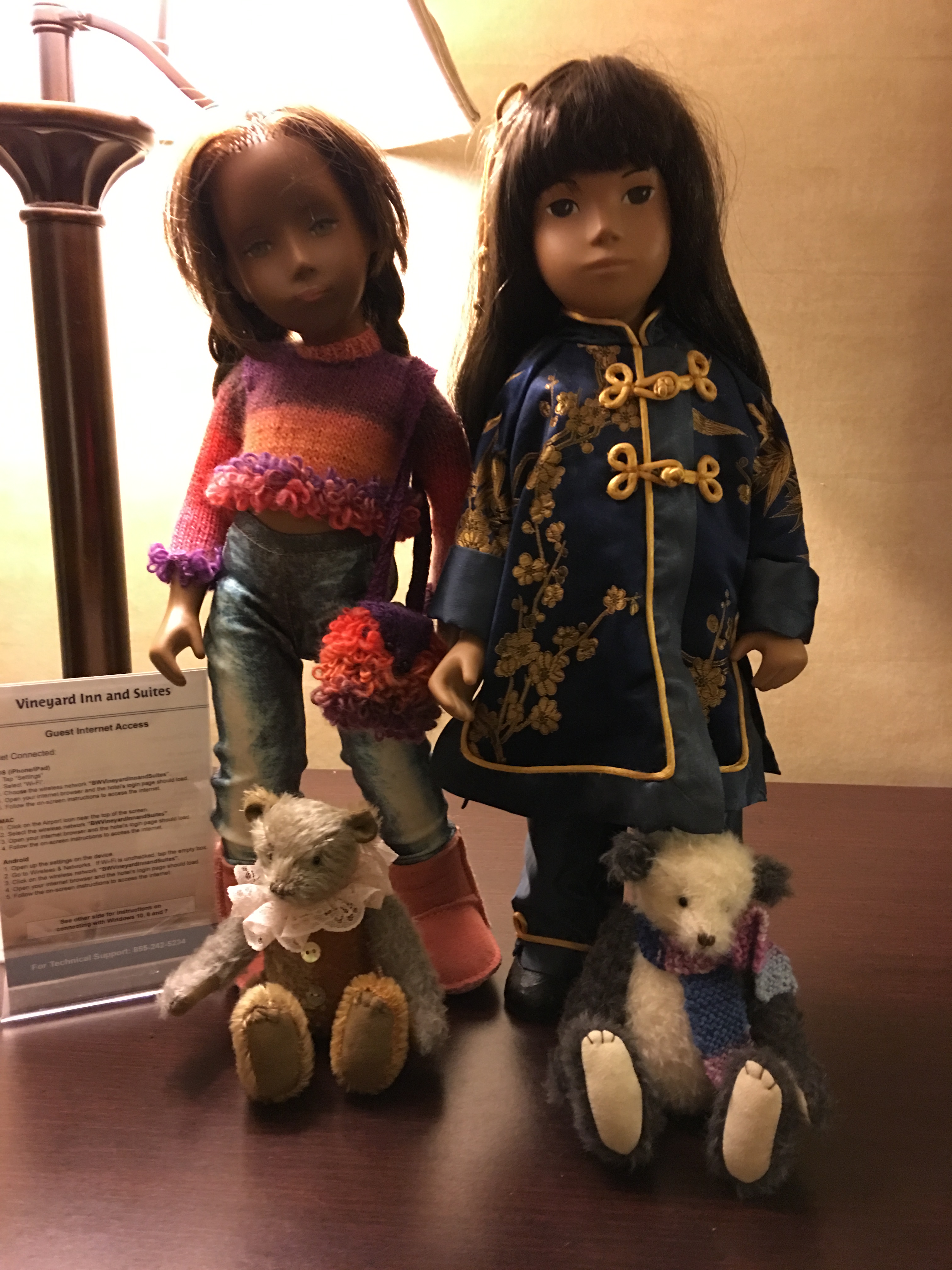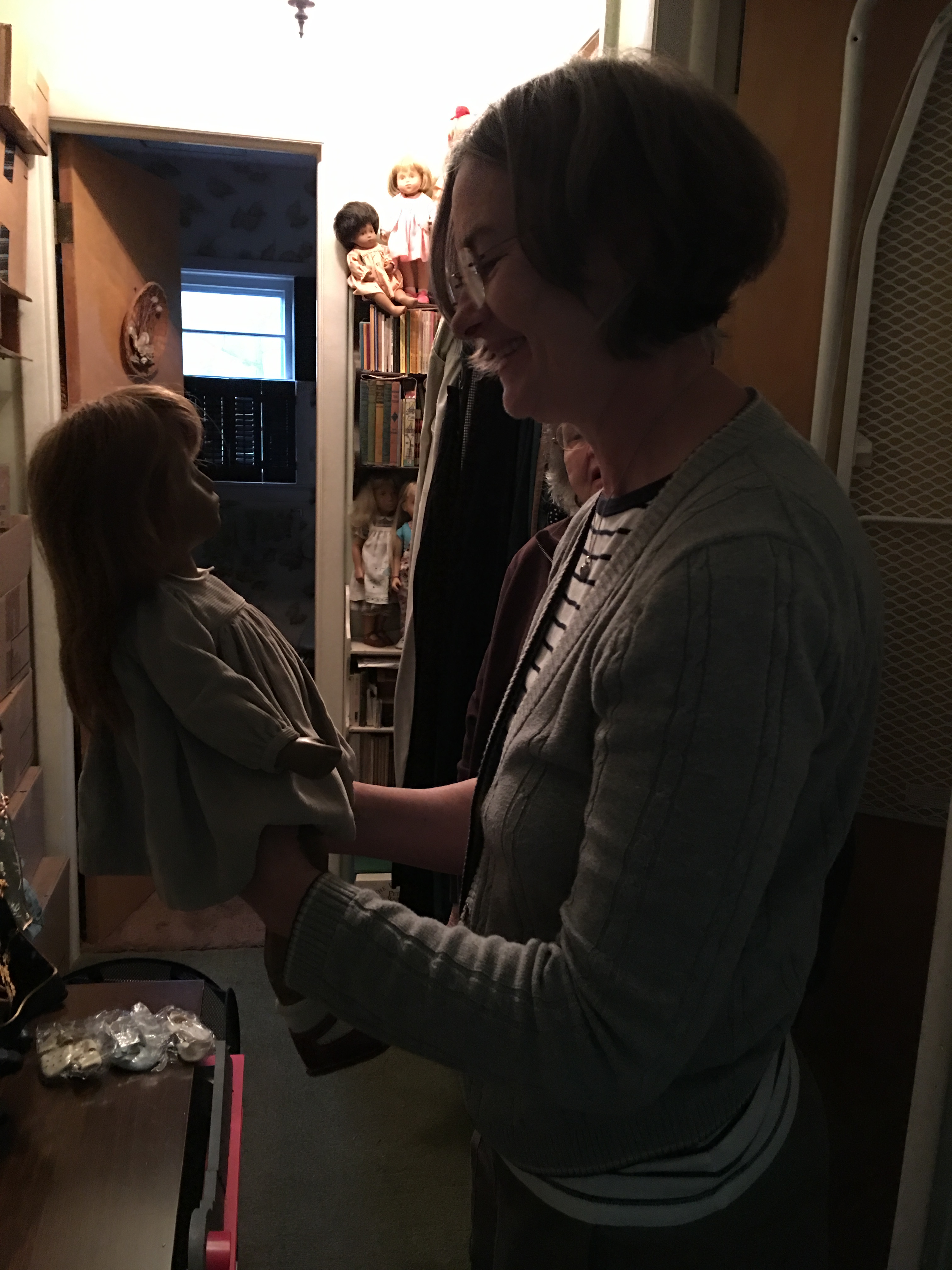 I picked up Janet at the airport in Columbus, Ohio and it was a very happy reunion.  Since it was after 7:00 pm, we drove a couple of hours and stopped to rest at a hotel in New Philadelphia, Ohio.  The next day we drove to a second hotel in New York and we went to see Dorisanne the following day.  We were on a mission to pick up Janet’s beautiful studio doll named Katherine. ❤️