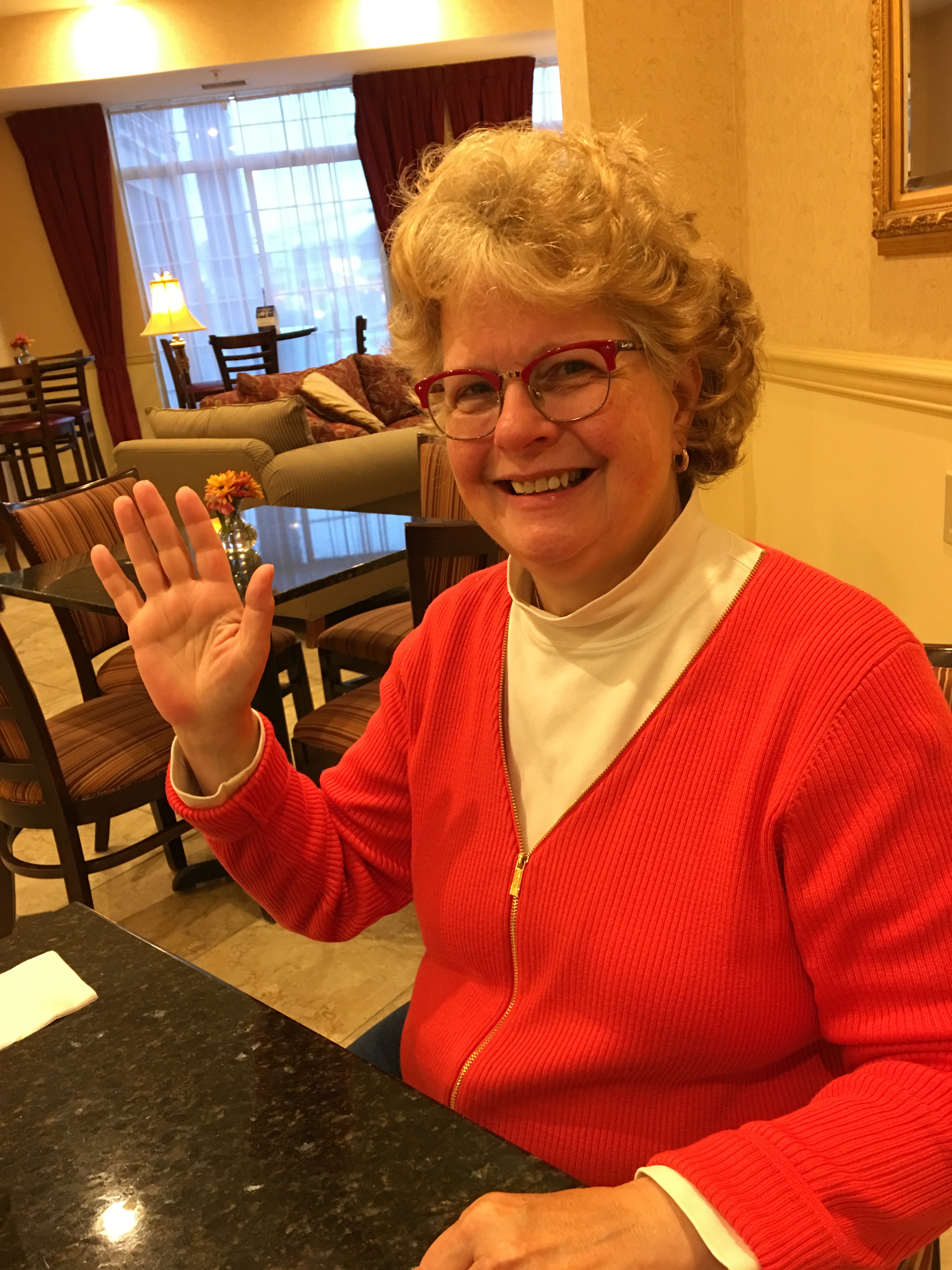 Janet and I eating breakfast and getting excited about picking up Janet’s Katherine or Katie. ❤️