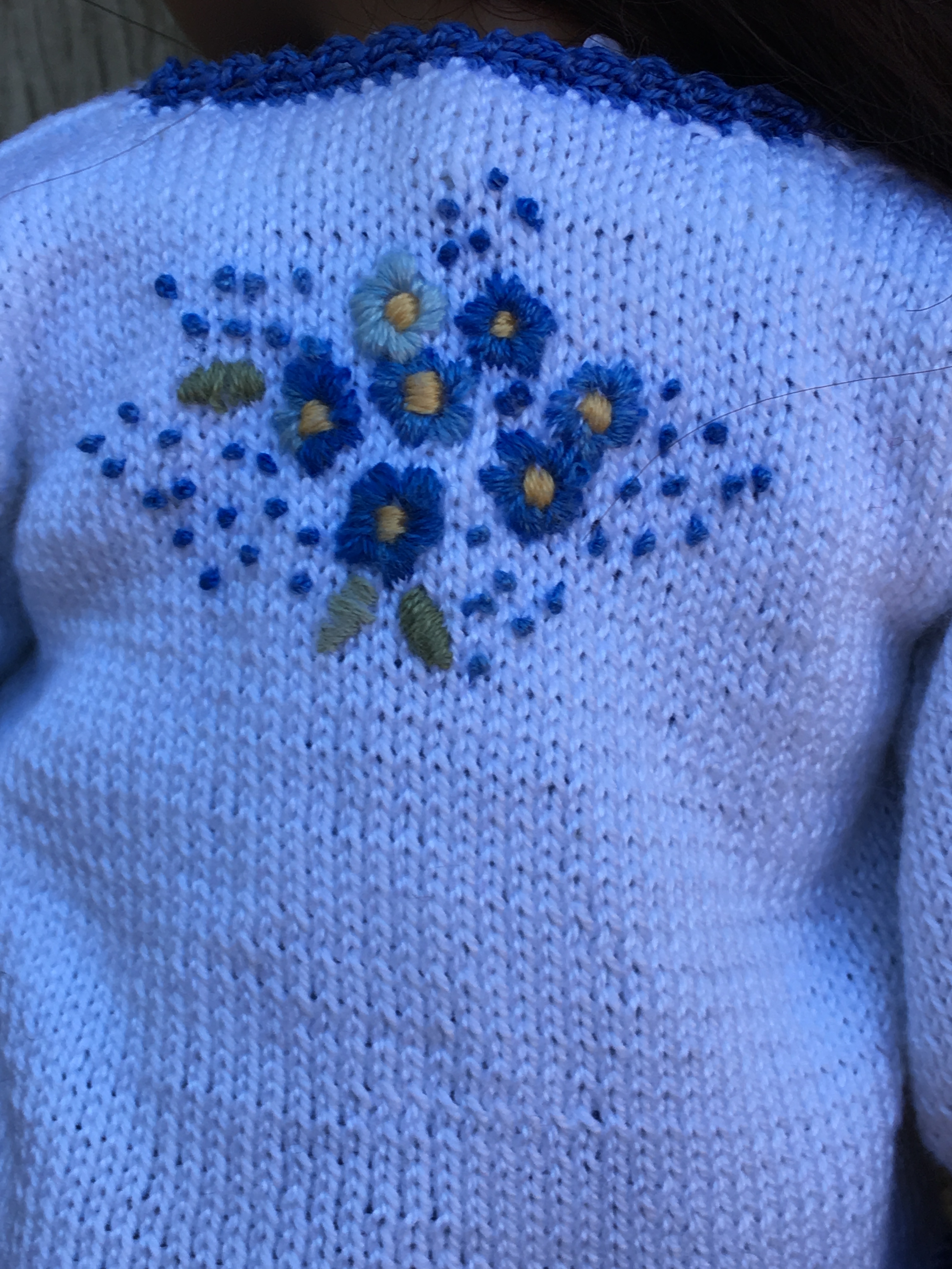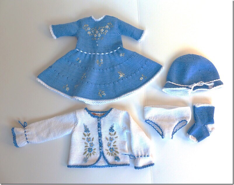 3. WOW! This knit ensemble is amazing Ginger! It suits Christine very well. There is so much beautiful floral detail. Plus the shade of blue most definitely brings out her gorgeous bright blue eyes. A very lucky girl.