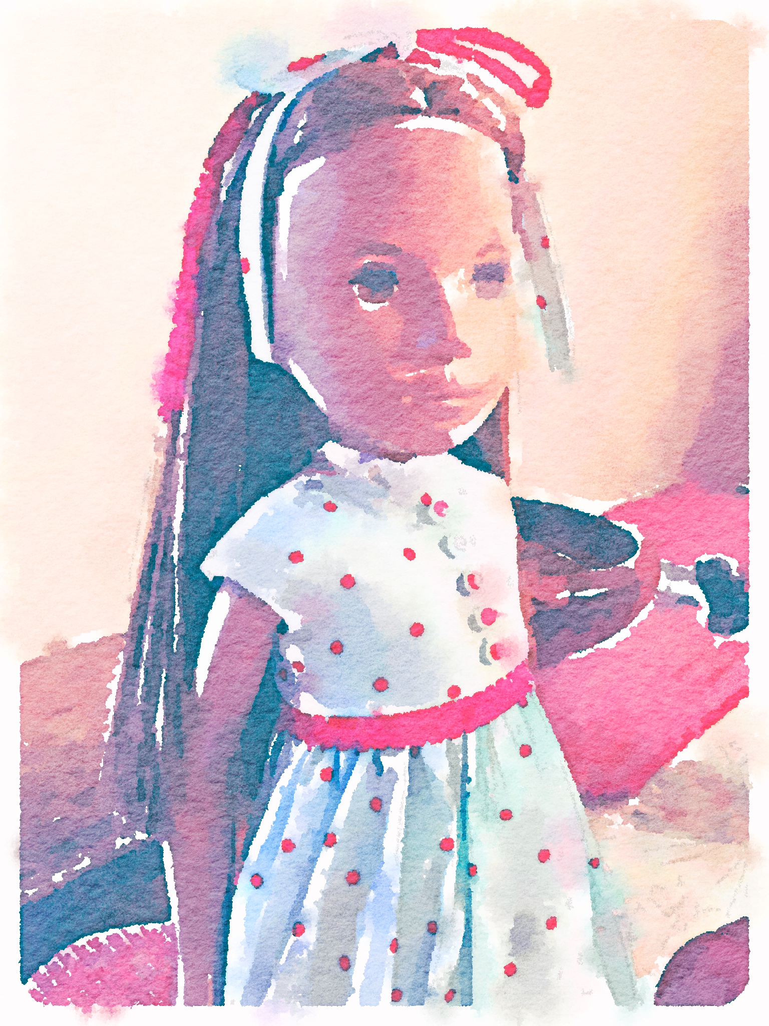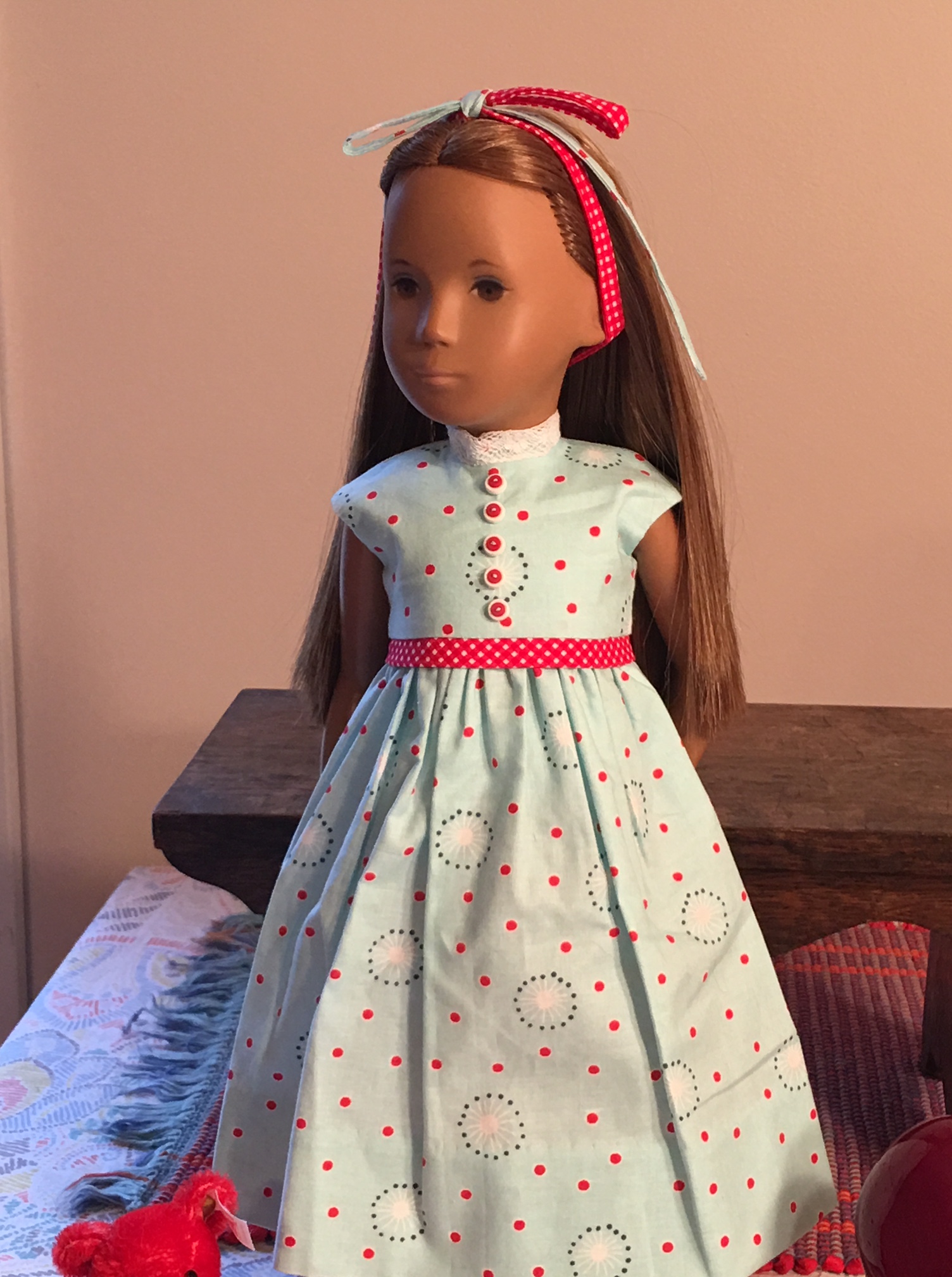 What a happy coincidence that your mini me’s name is Lucy. Sarah’s reroots are the best, and I love Maureen’s clothes. All the little extra trims she adds are so delightful.
