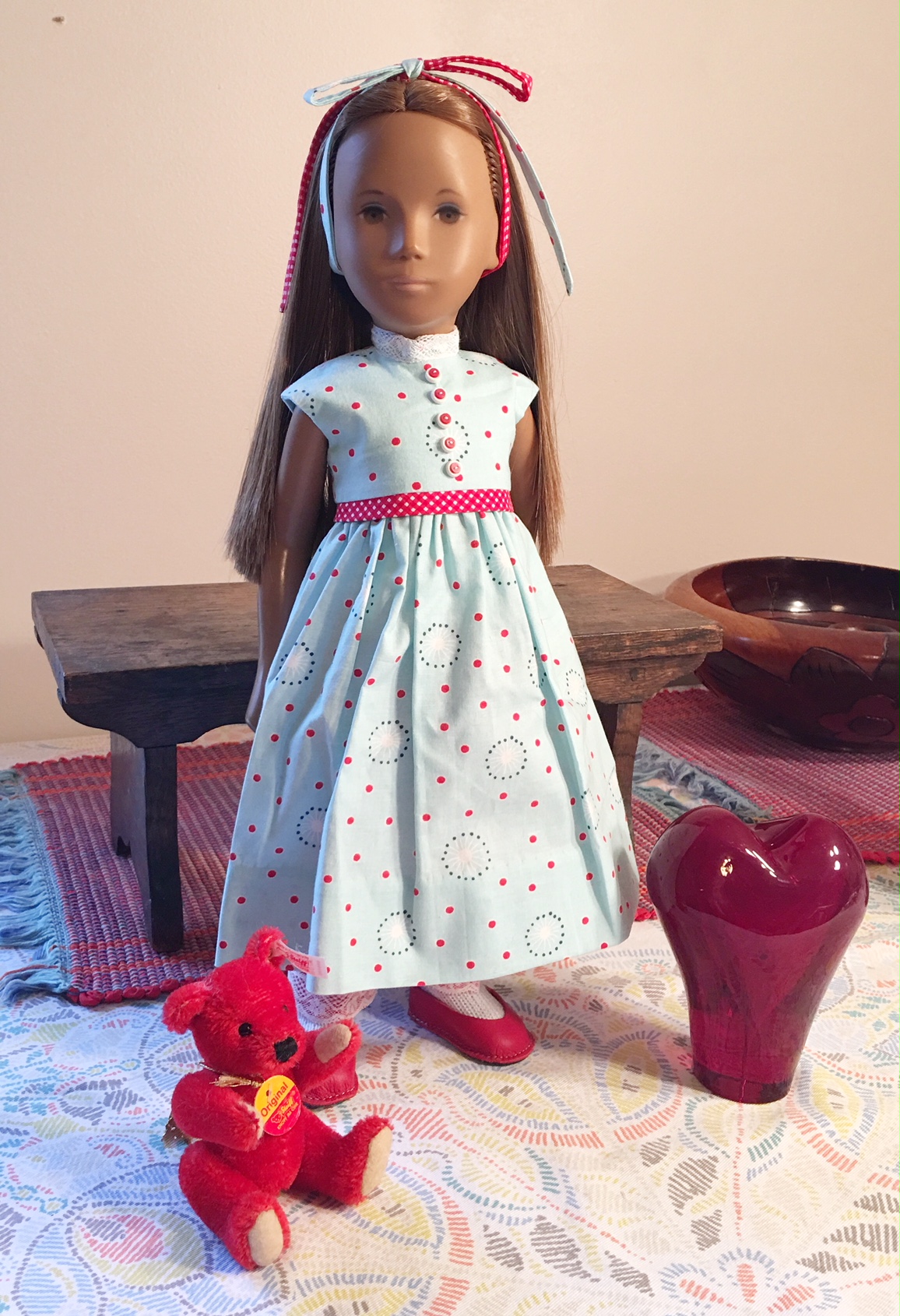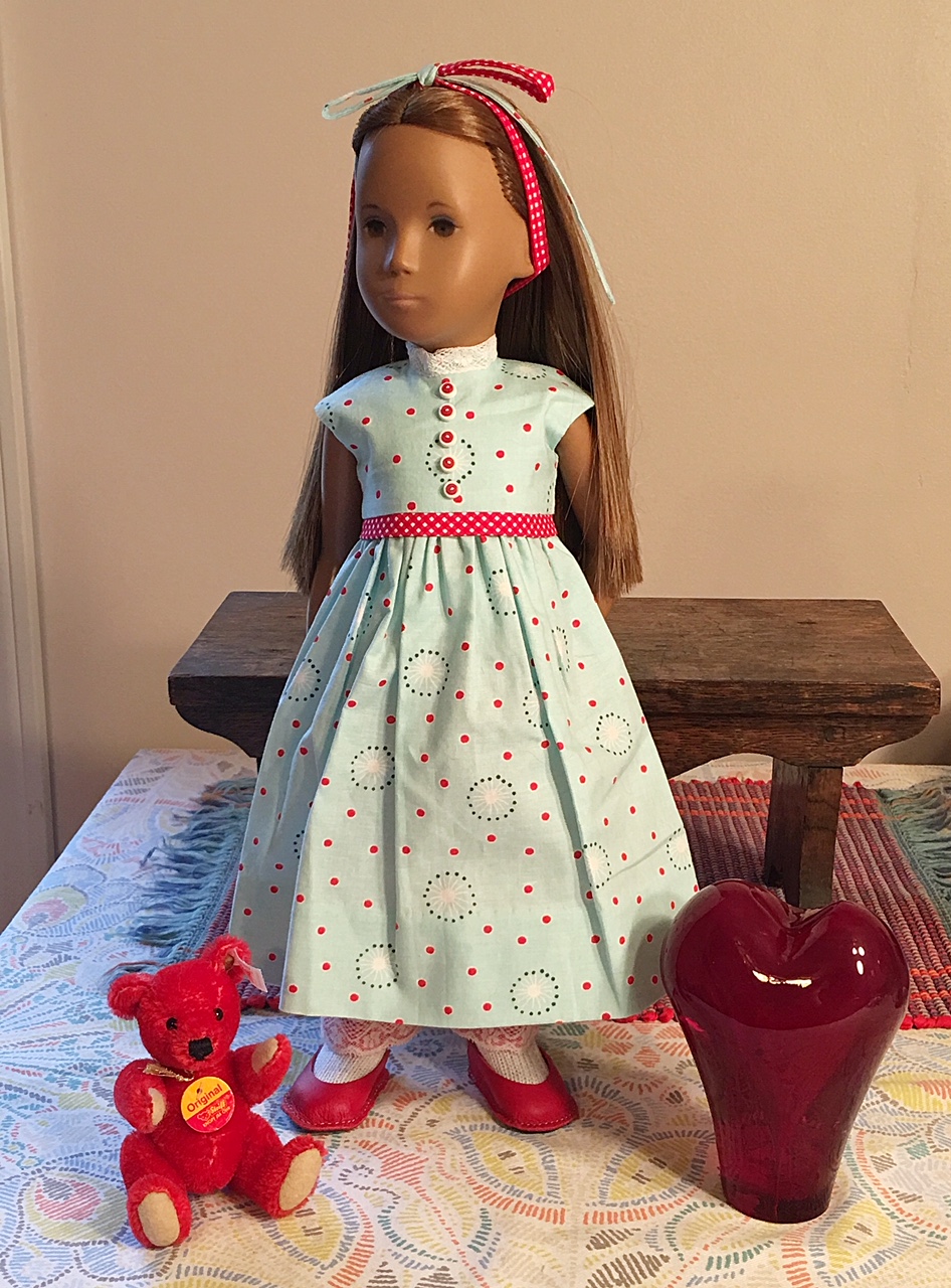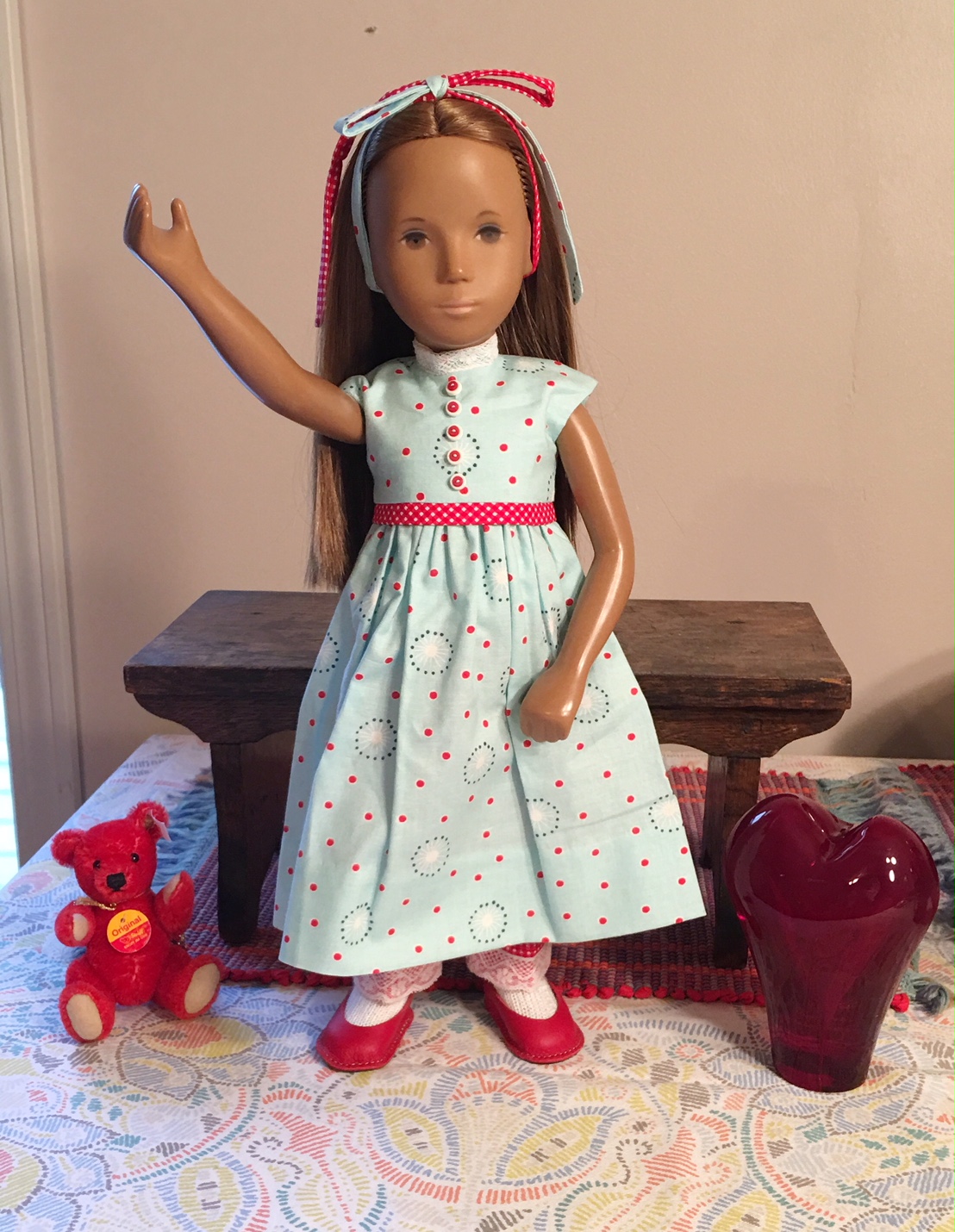 4. I am loving Lucy, Ginger!! Happy belated Valentine’s Day! I had thought she was an early Gregor that had been re-rooted. I do love those wonderful eyes. Love her dress by Maureen Hallenbeck with the coordinating red and white polka dots. And of course Steiff is always a wonderful companion.