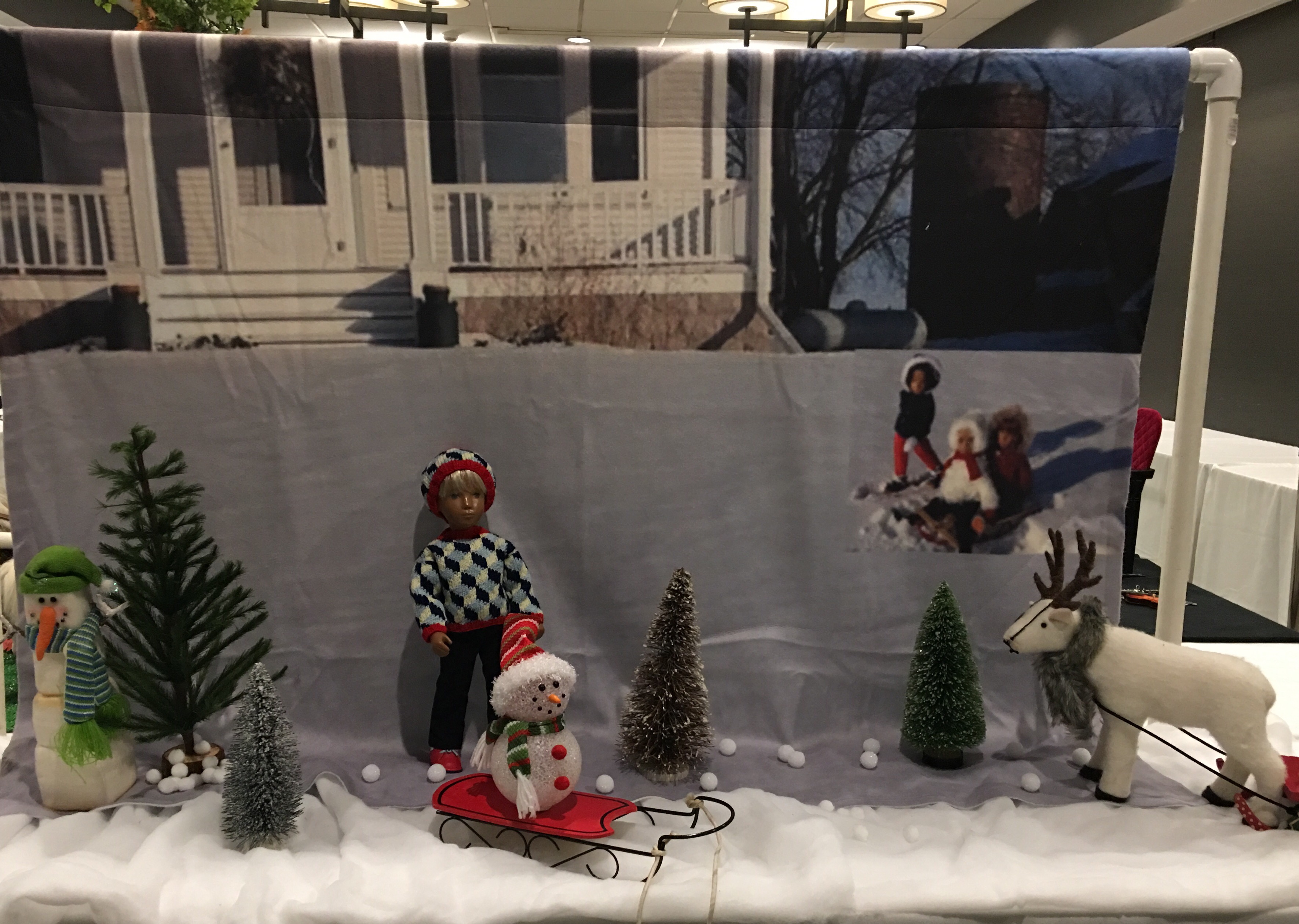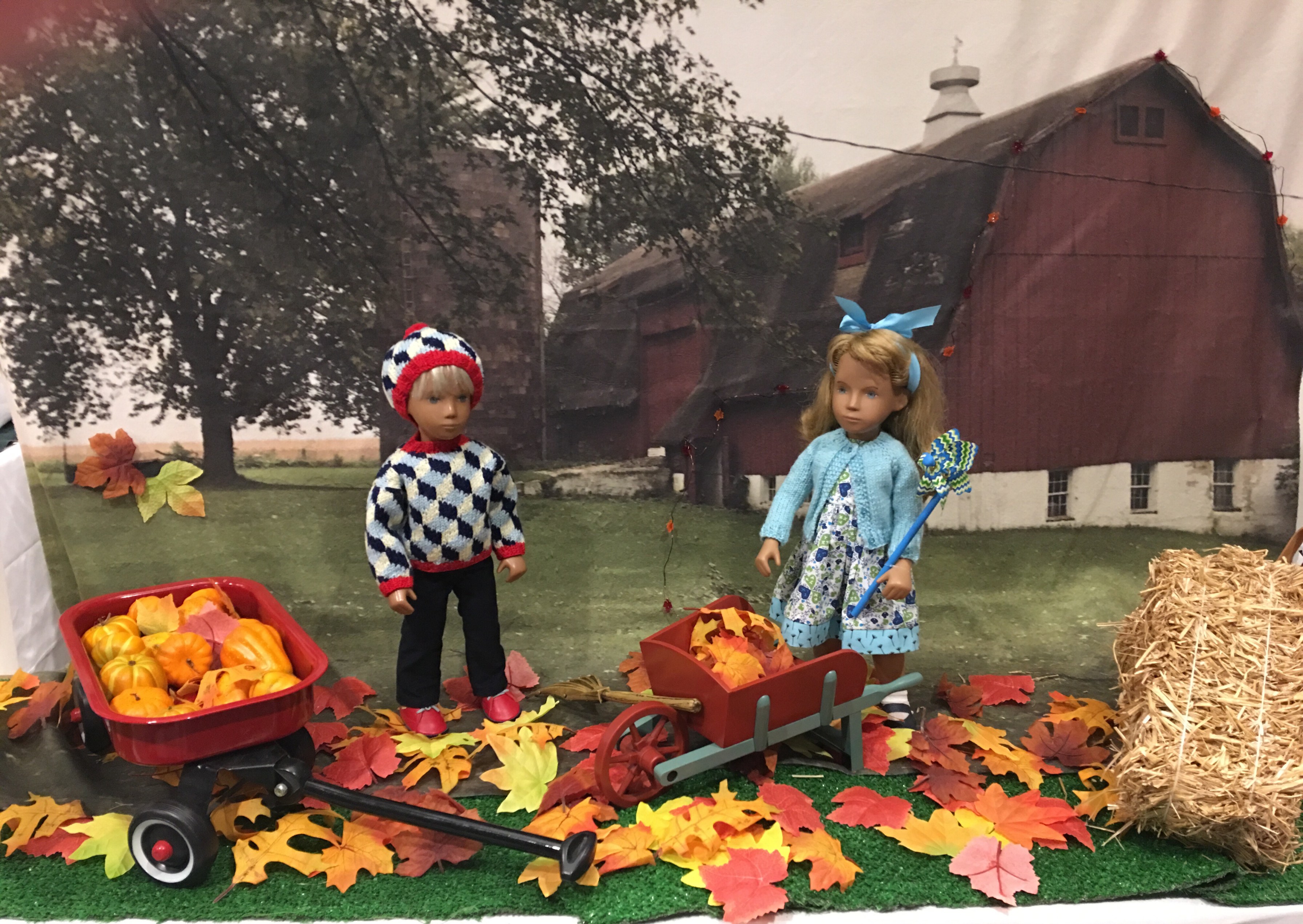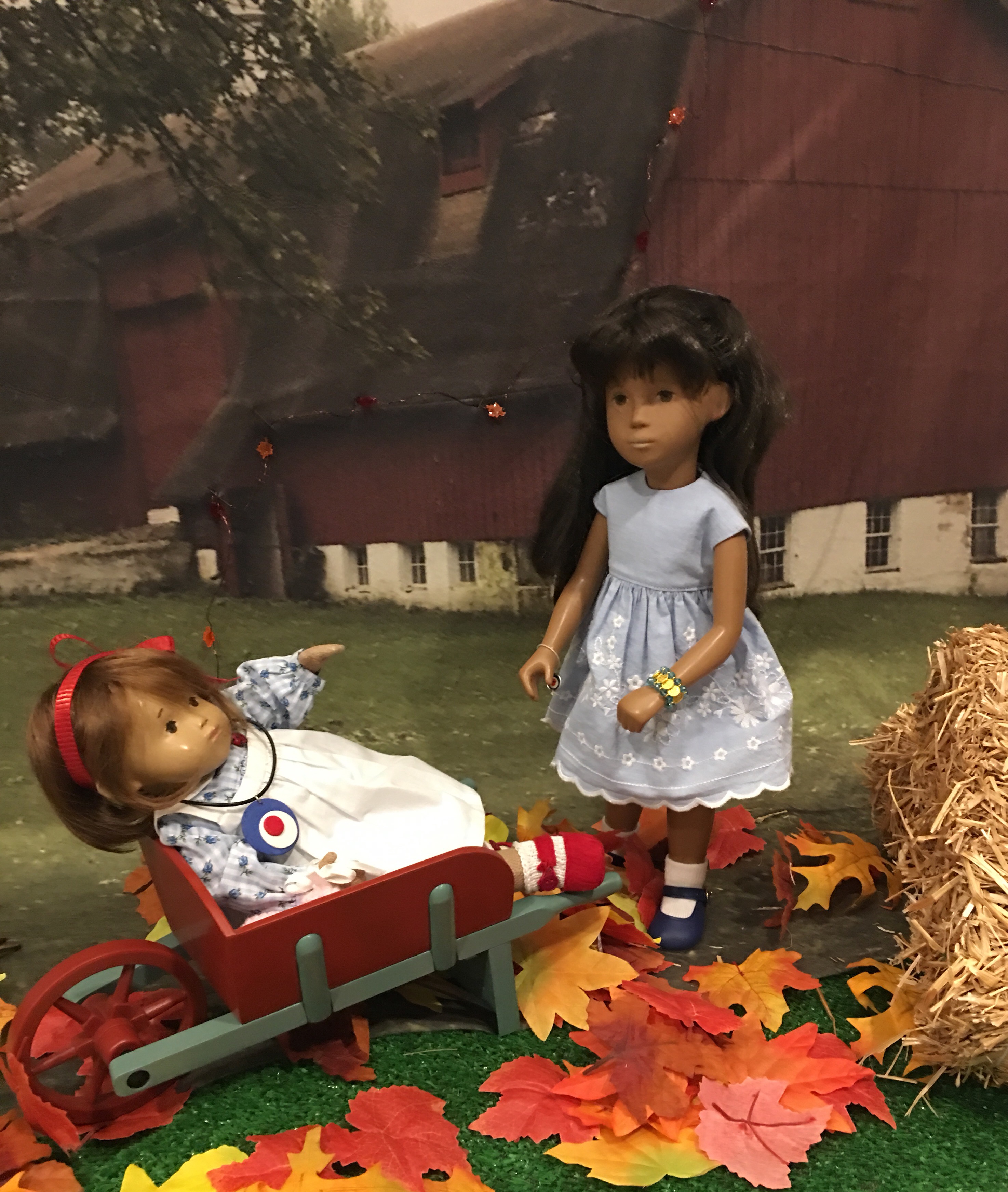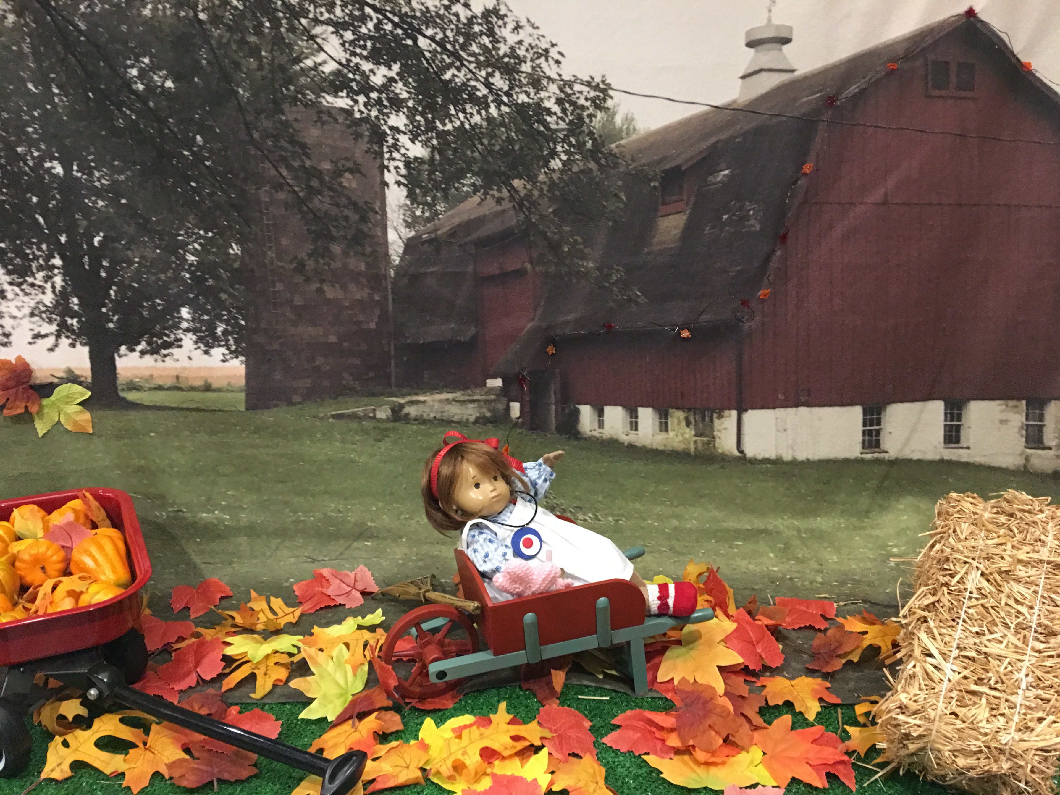 These first photos are of wonderful display scenes that were left for us to take photos of our Sasha dolls. They have a backdrop of seasonal variations of beautiful Minnesota landscapes and nice props. Finn and Gracie both volunteered for this fun time that I enjoyed too.