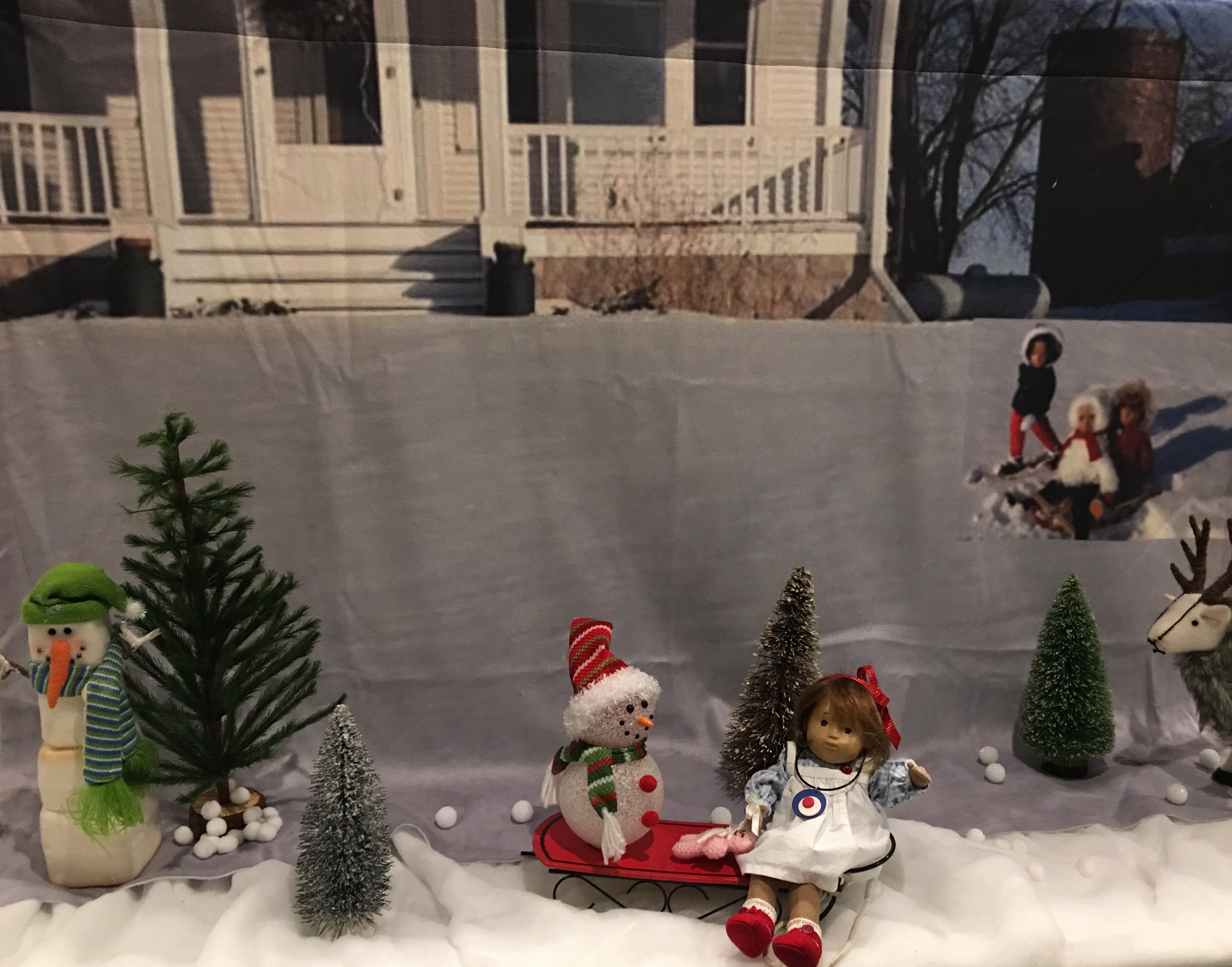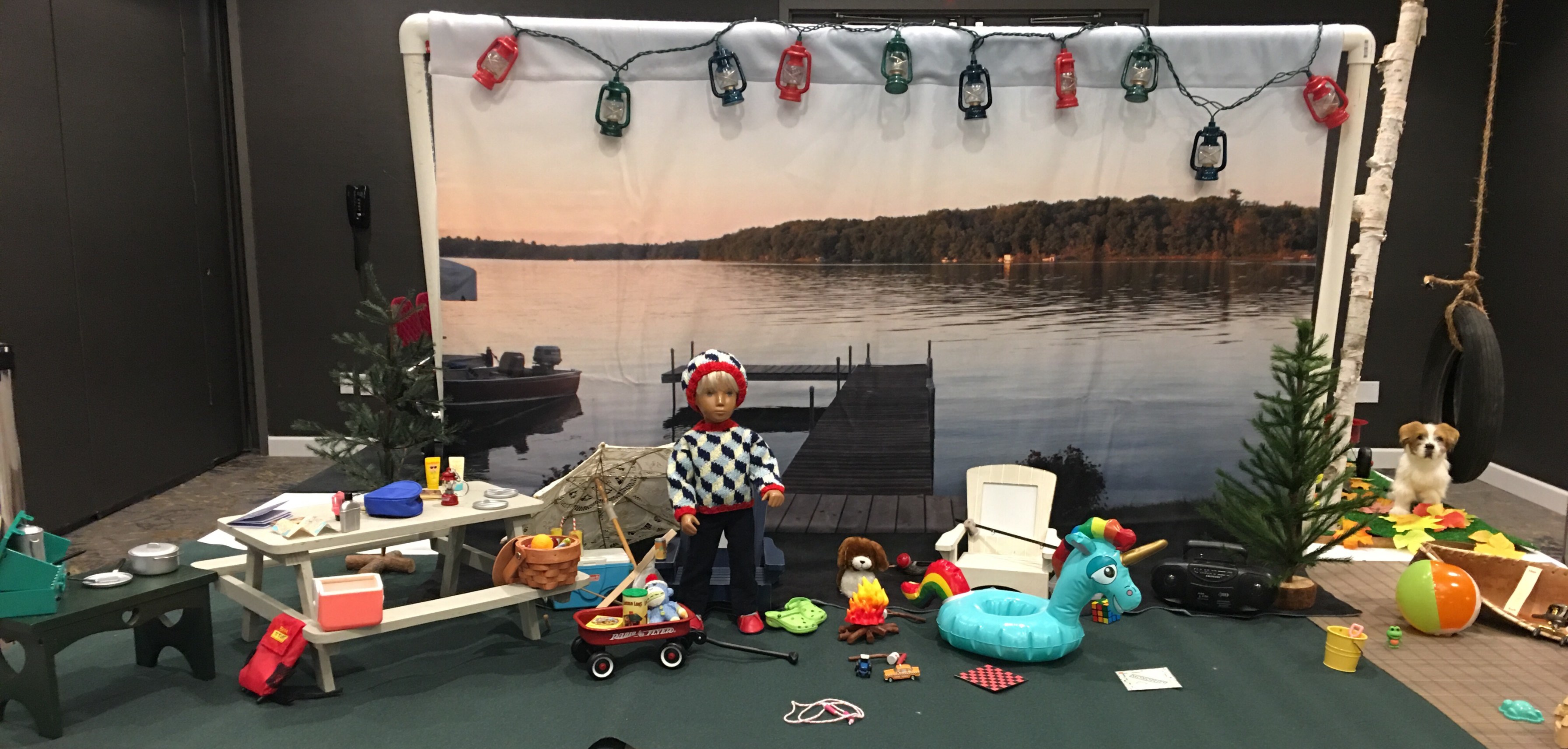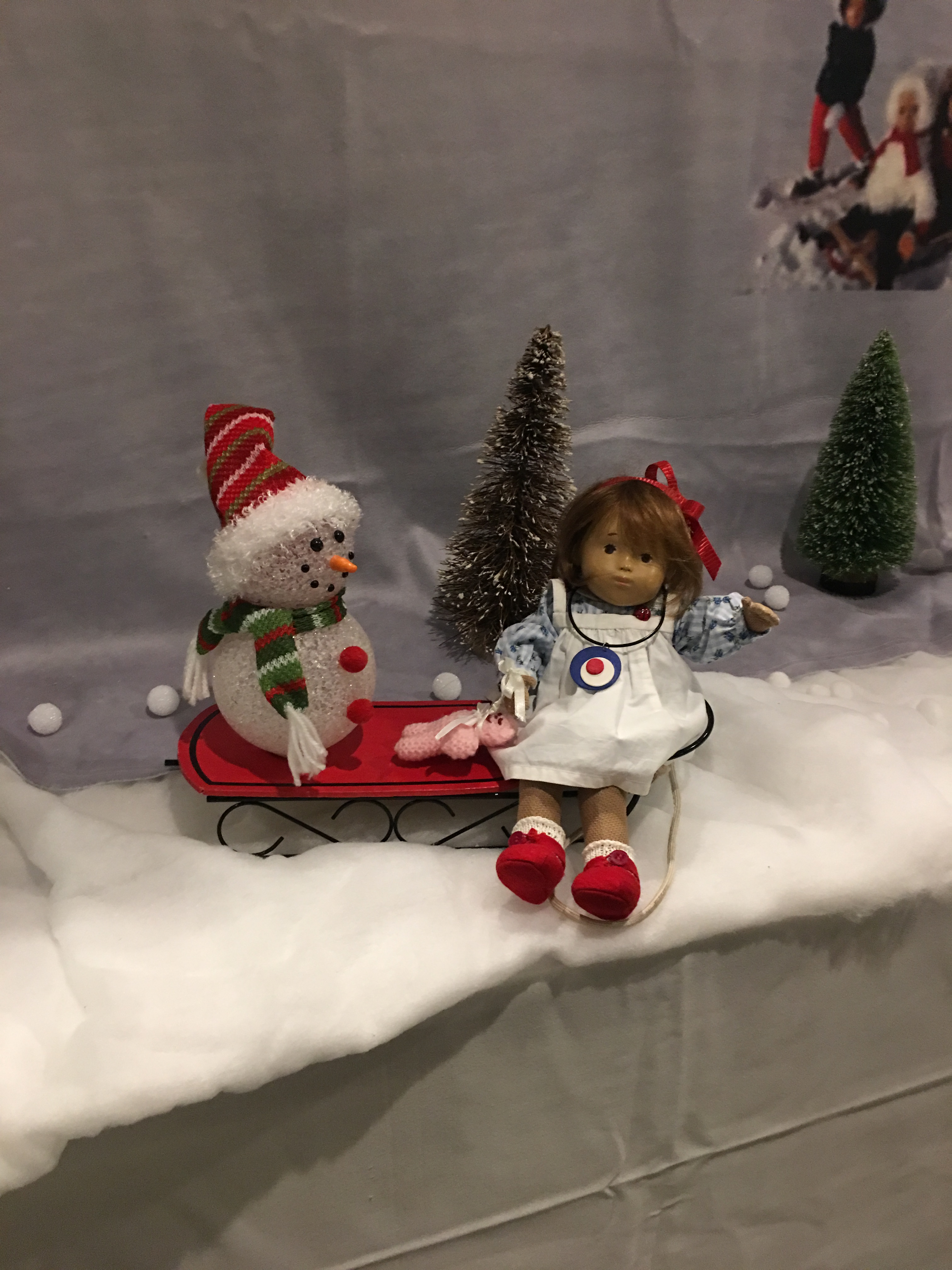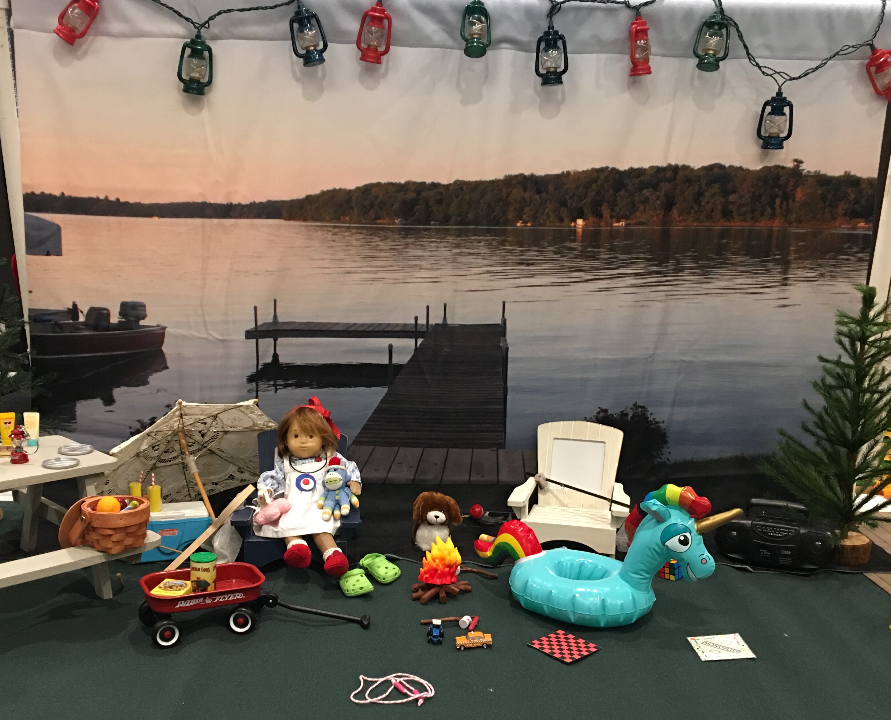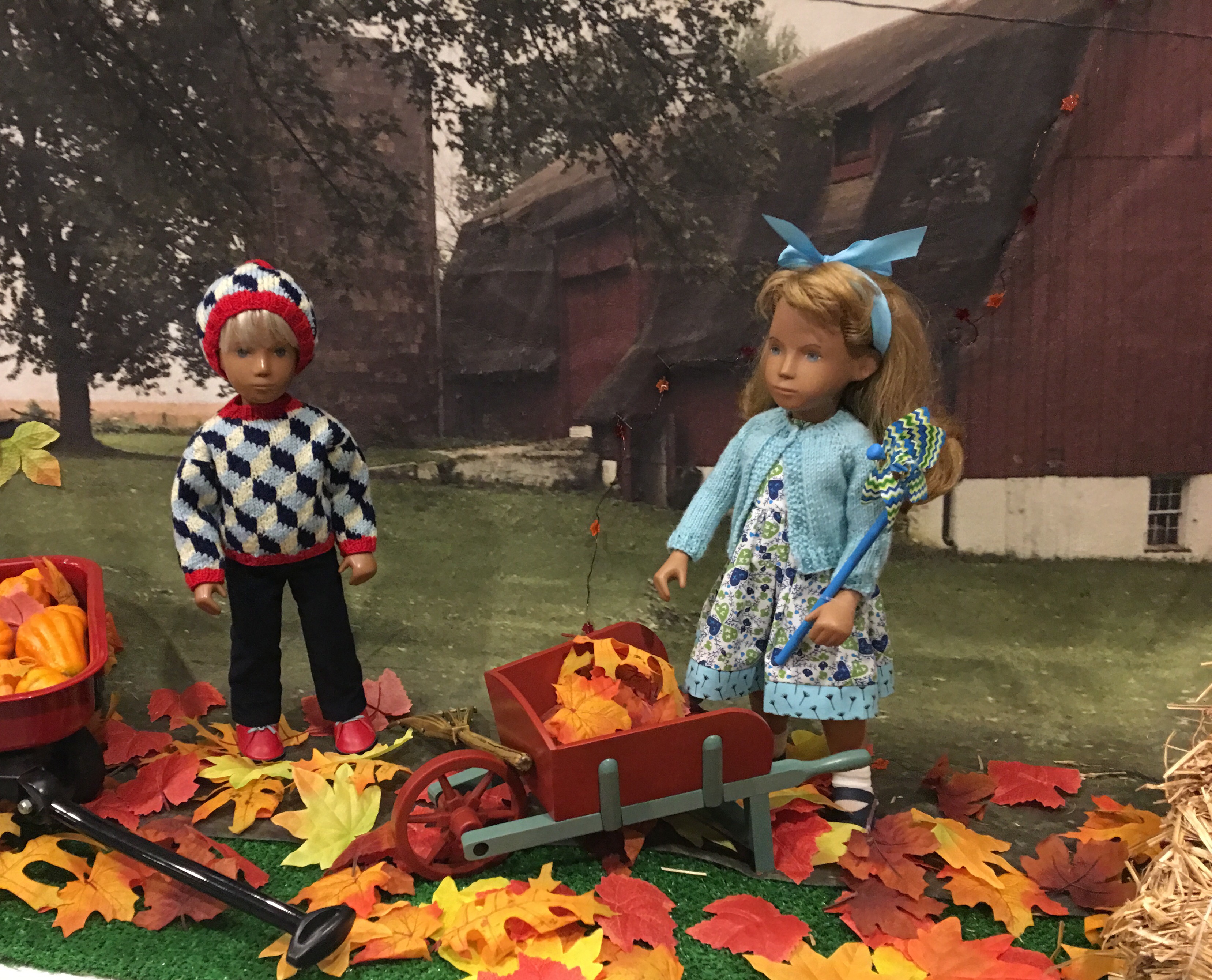 These first photos are of wonderful display scenes that were left for us to take photos of our Sasha dolls. They have a backdrop of seasonal variations of beautiful Minnesota landscapes and nice props. Finn and Gracie both volunteered for this fun time that I enjoyed too.