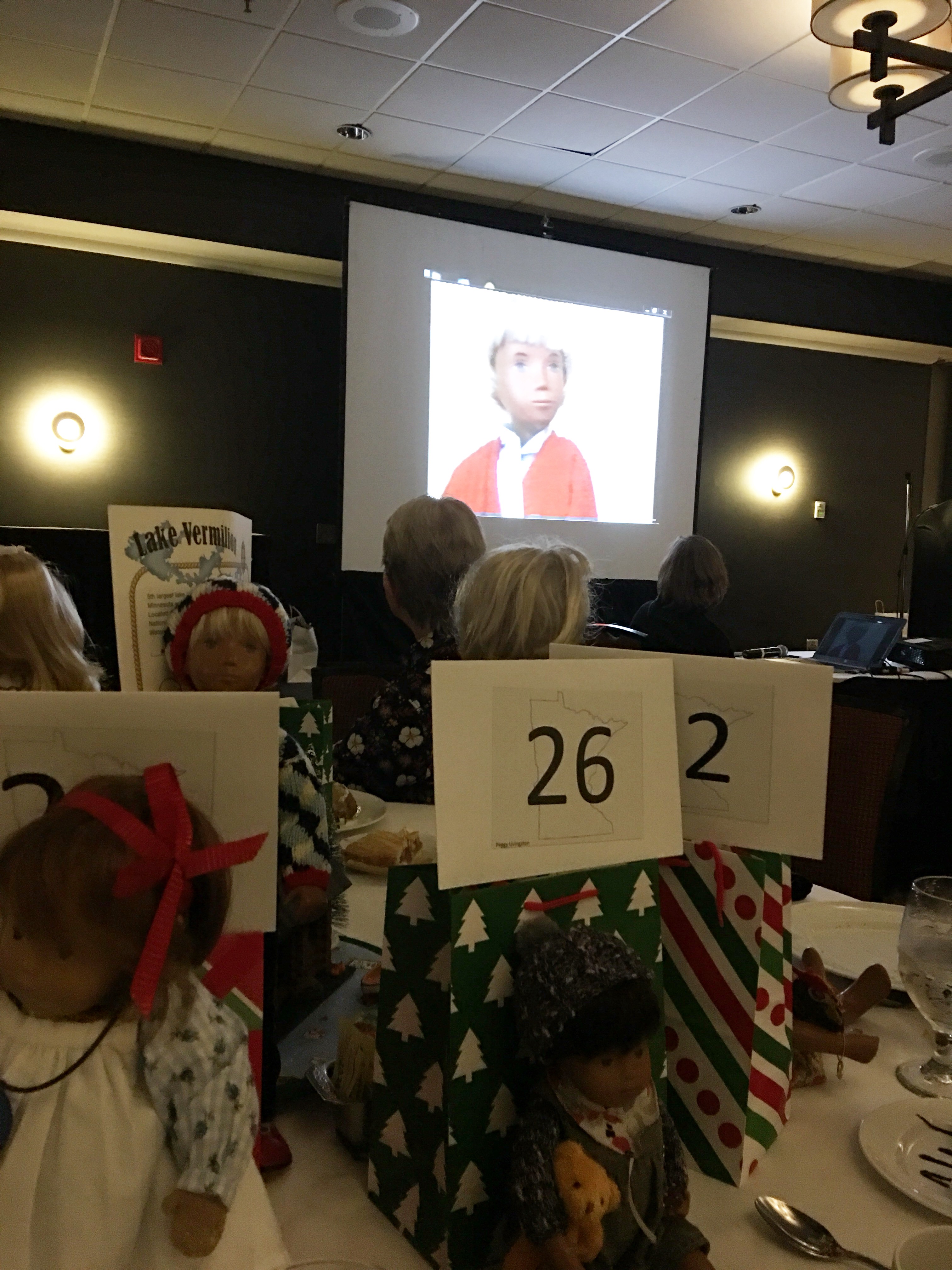 Photos of the gathering in the ballroom for the fantastic dinner meal. Beautiful dolls everywhere.