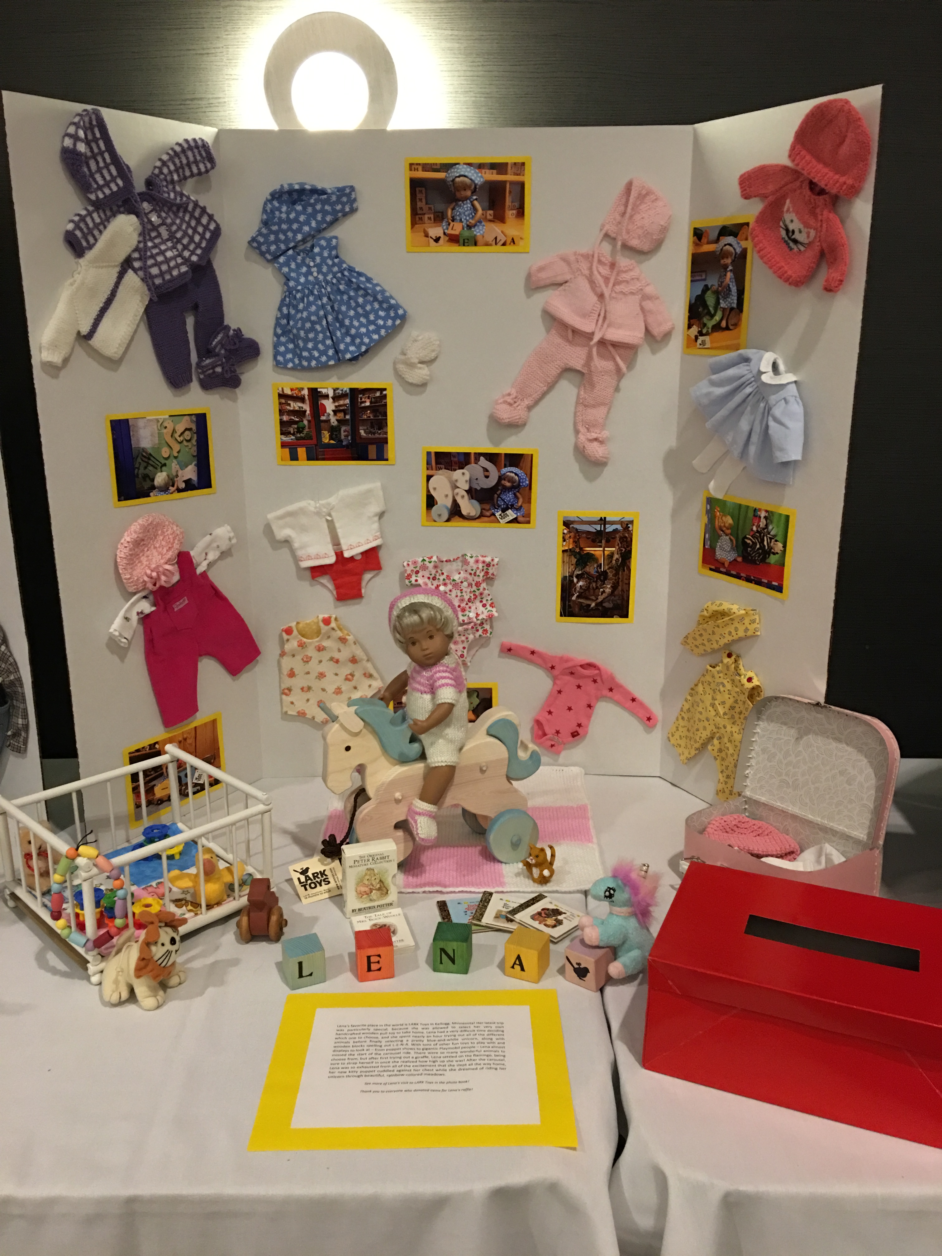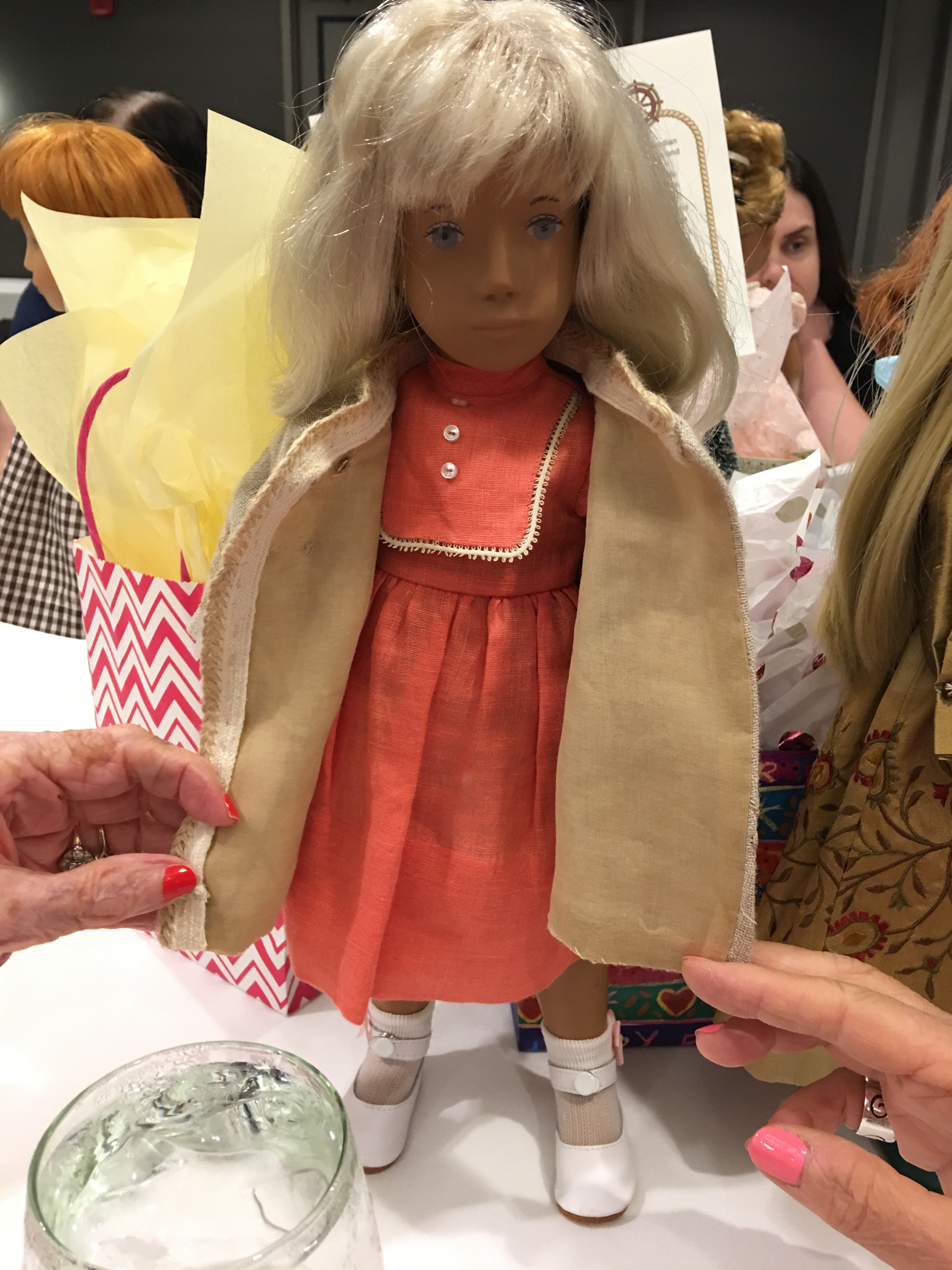 After eating, we viewed a wonderful movie showing the lovely girl touring the Sasha factory in England and having her Gregor made by the lovely people working there. Brenda Walton was interviewed and photos of Sasha dolls were shared. A great presentation.