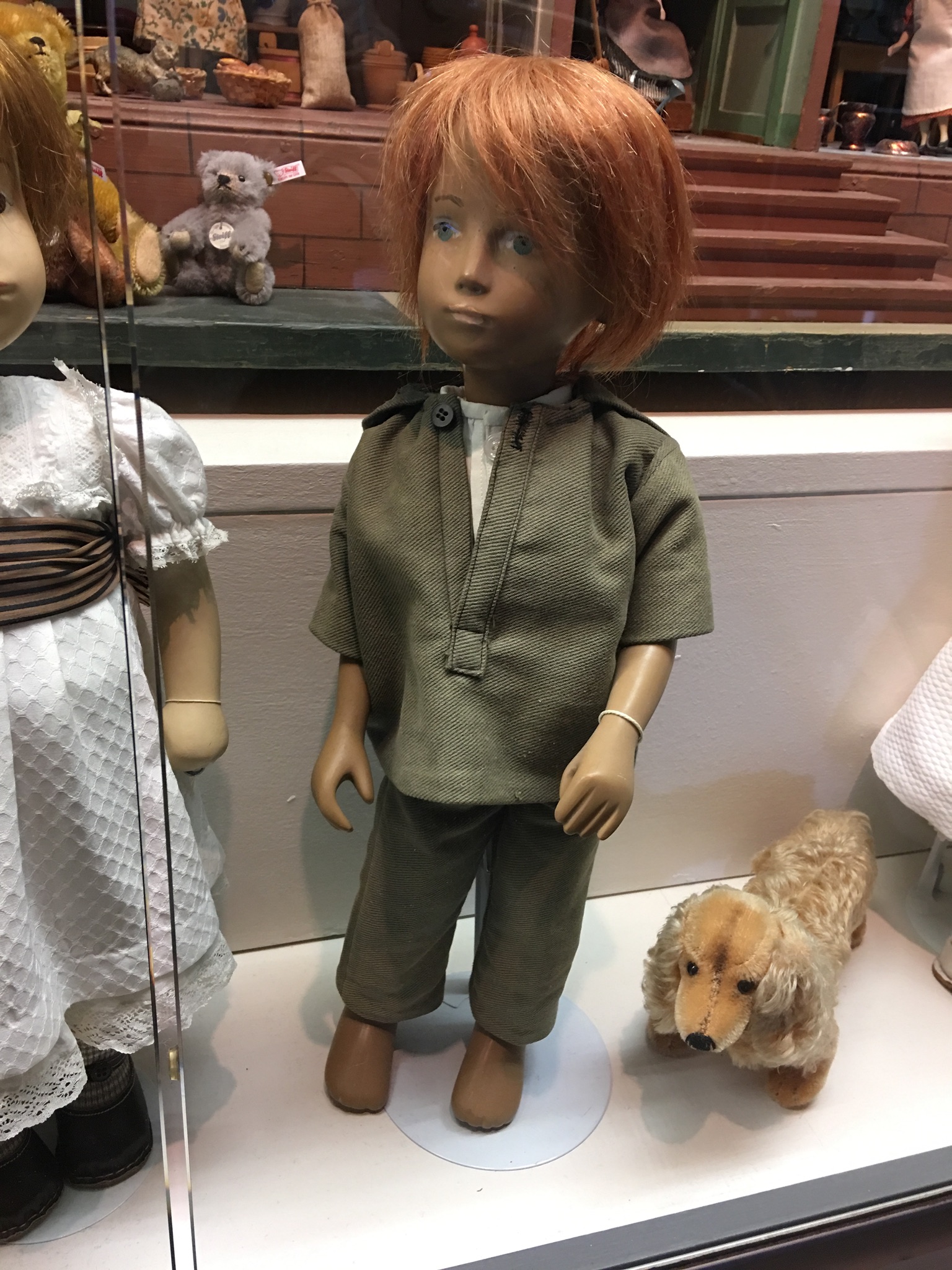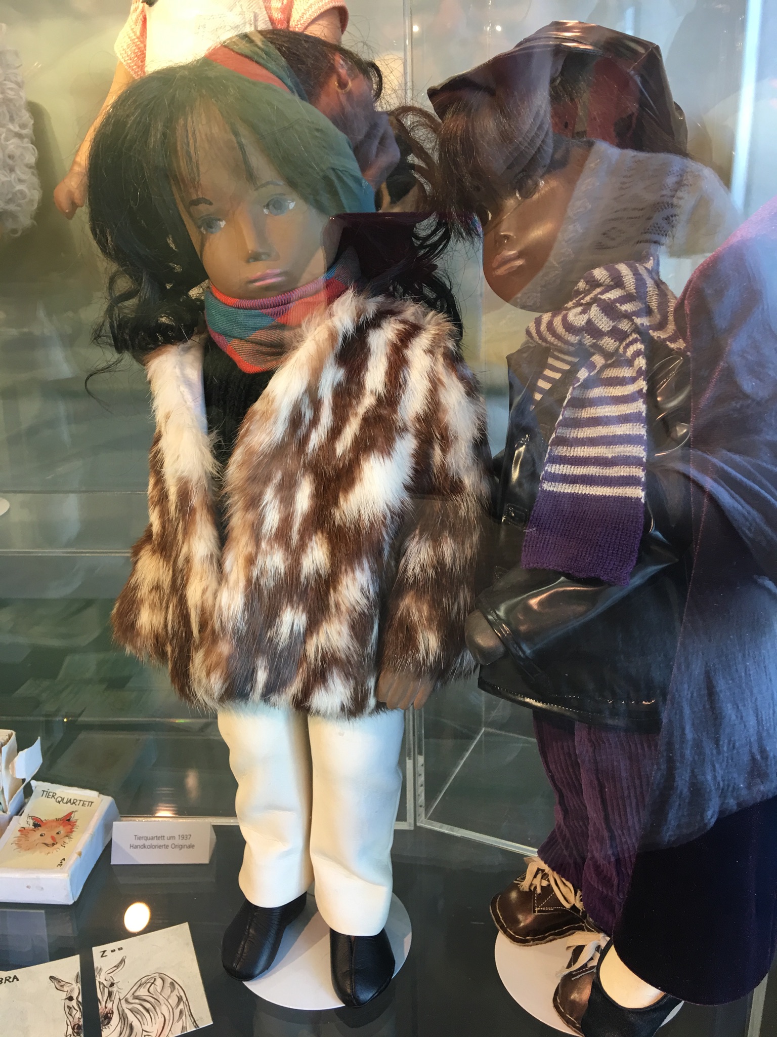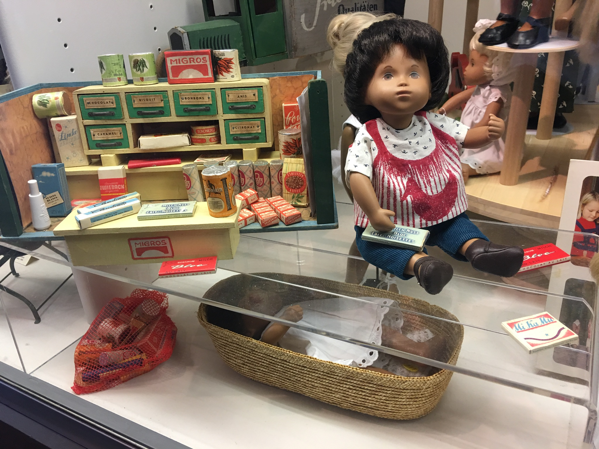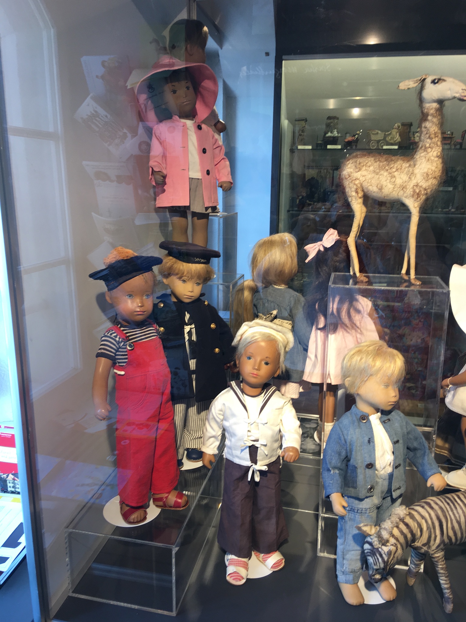 Some of the dolls are from Sasha’s own collection, now held by the city of Zurich, and others belong to the museum itself. The beautiful early Götz girl in the green coat on the carousel display belongs to the museum’s owner and was bought for her by her grandfather who set up the famous toy store in Zurich. They only recently acquired the museum’s own studio bebe, a donation by a local resident.