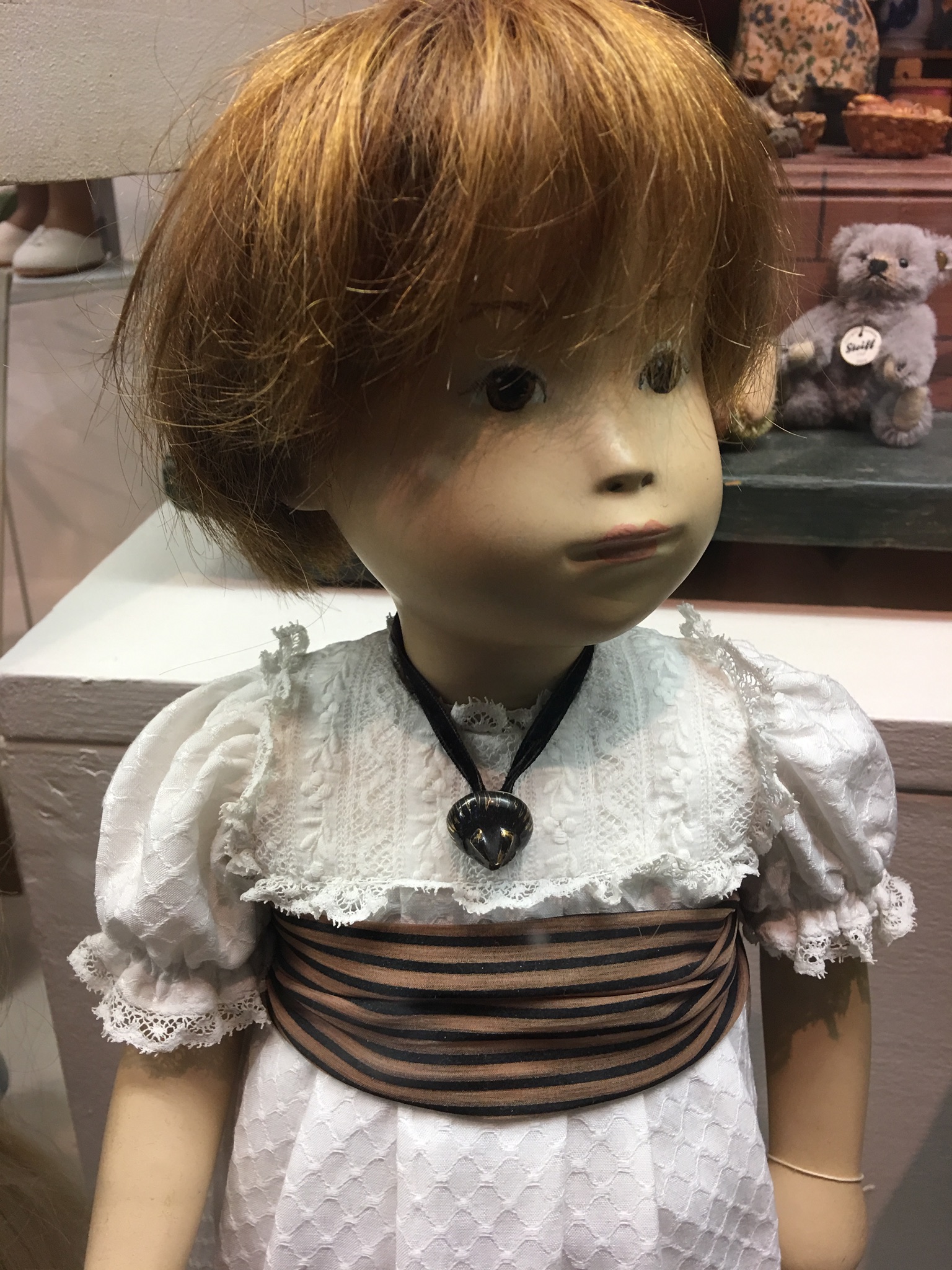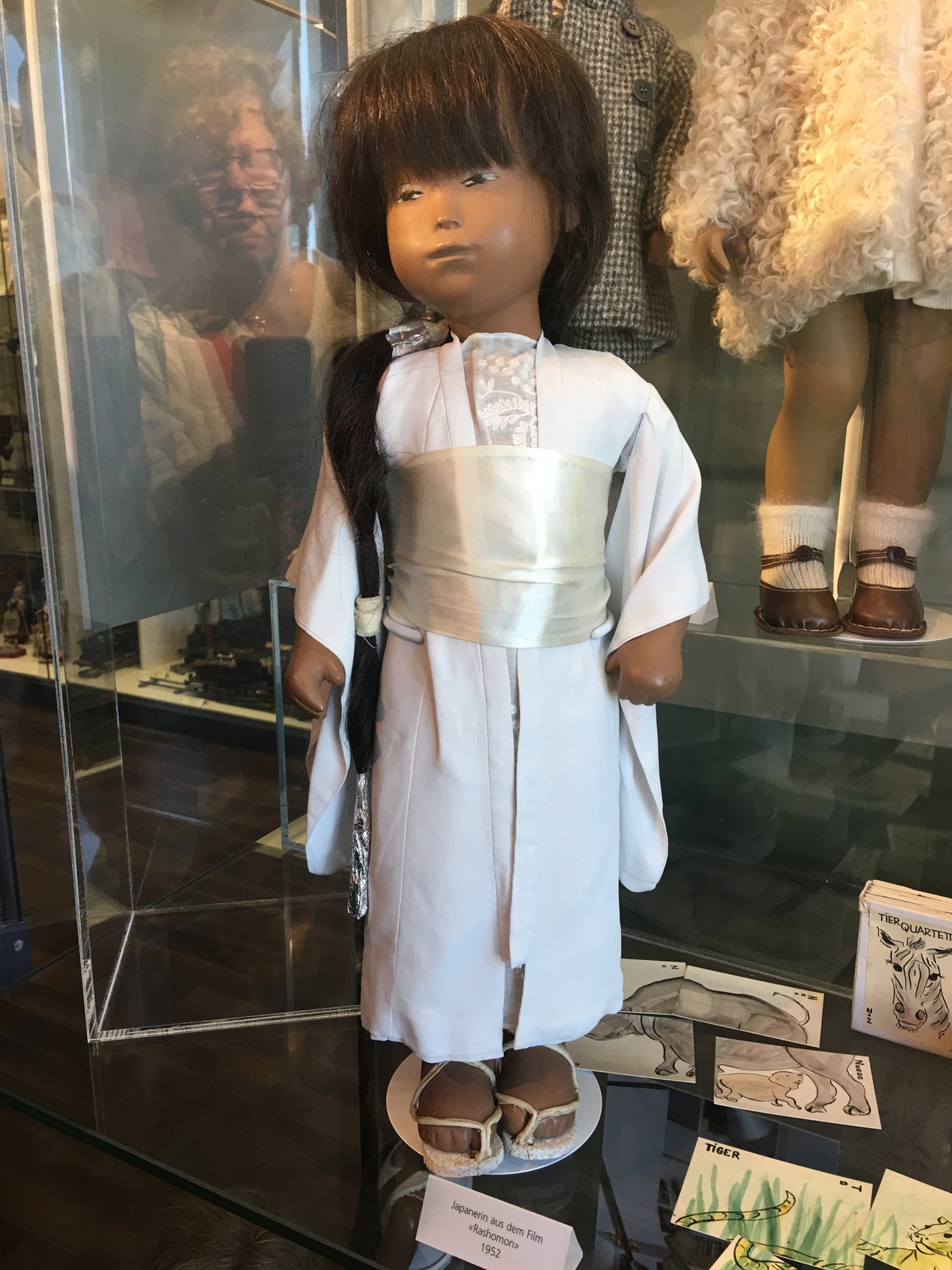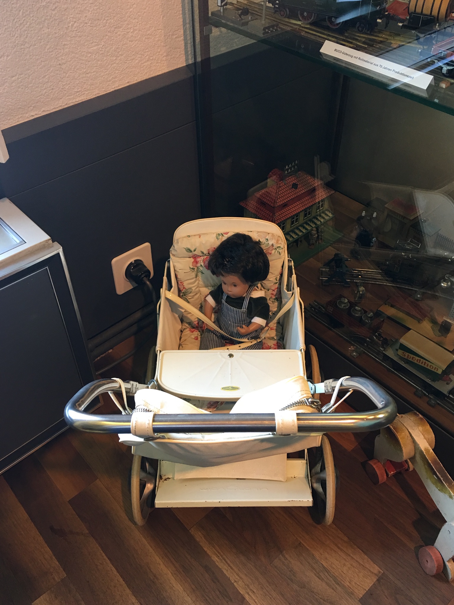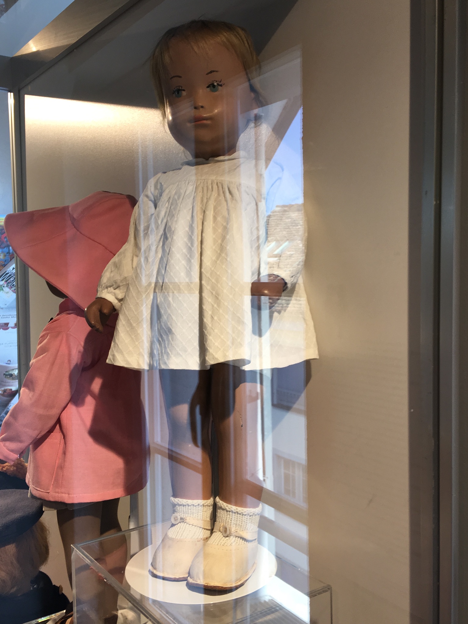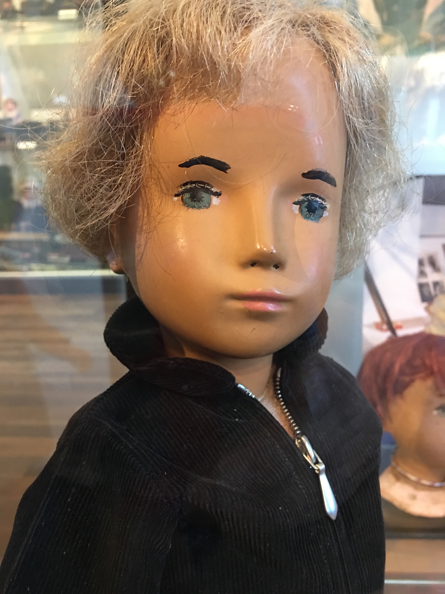 Some of the dolls are from Sasha’s own collection, now held by the city of Zurich, and others belong to the museum itself. The beautiful early Götz girl in the green coat on the carousel display belongs to the museum’s owner and was bought for her by her grandfather who set up the famous toy store in Zurich. They only recently acquired the museum’s own studio bebe, a donation by a local resident.
