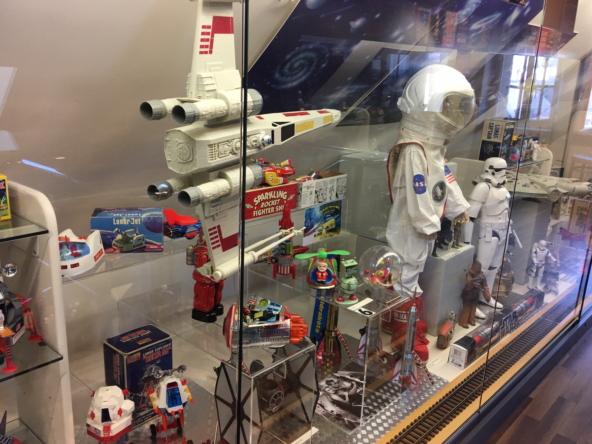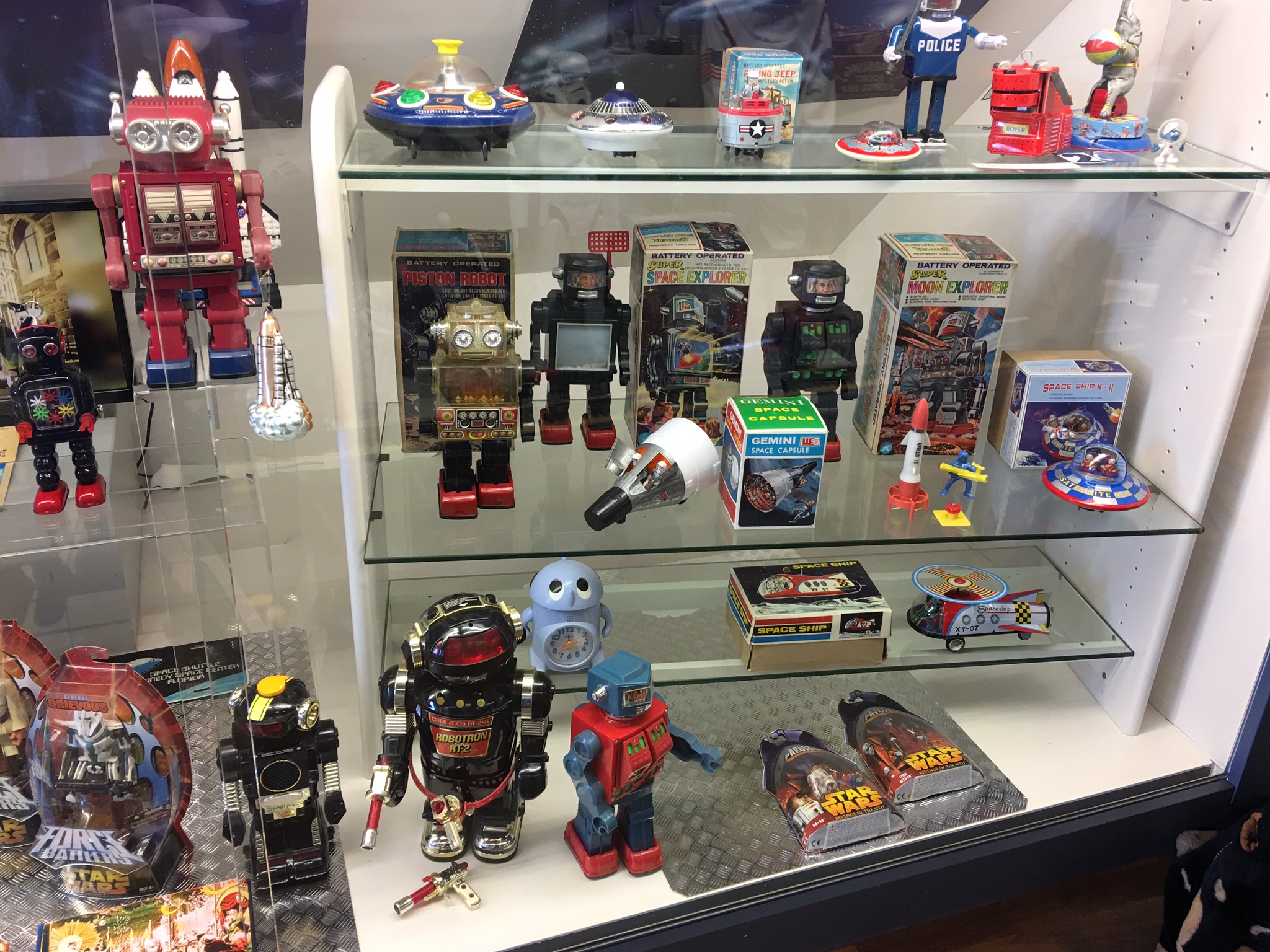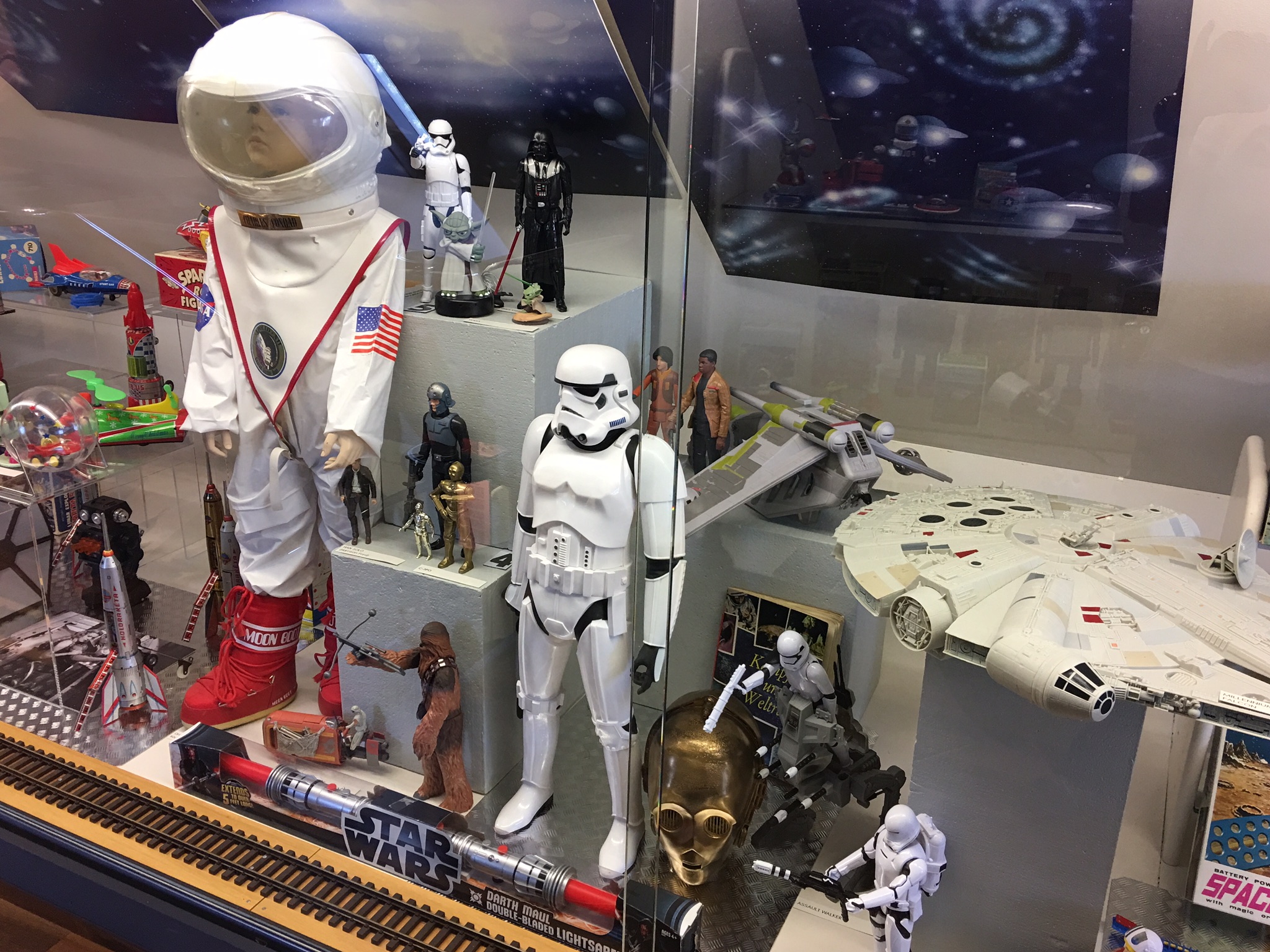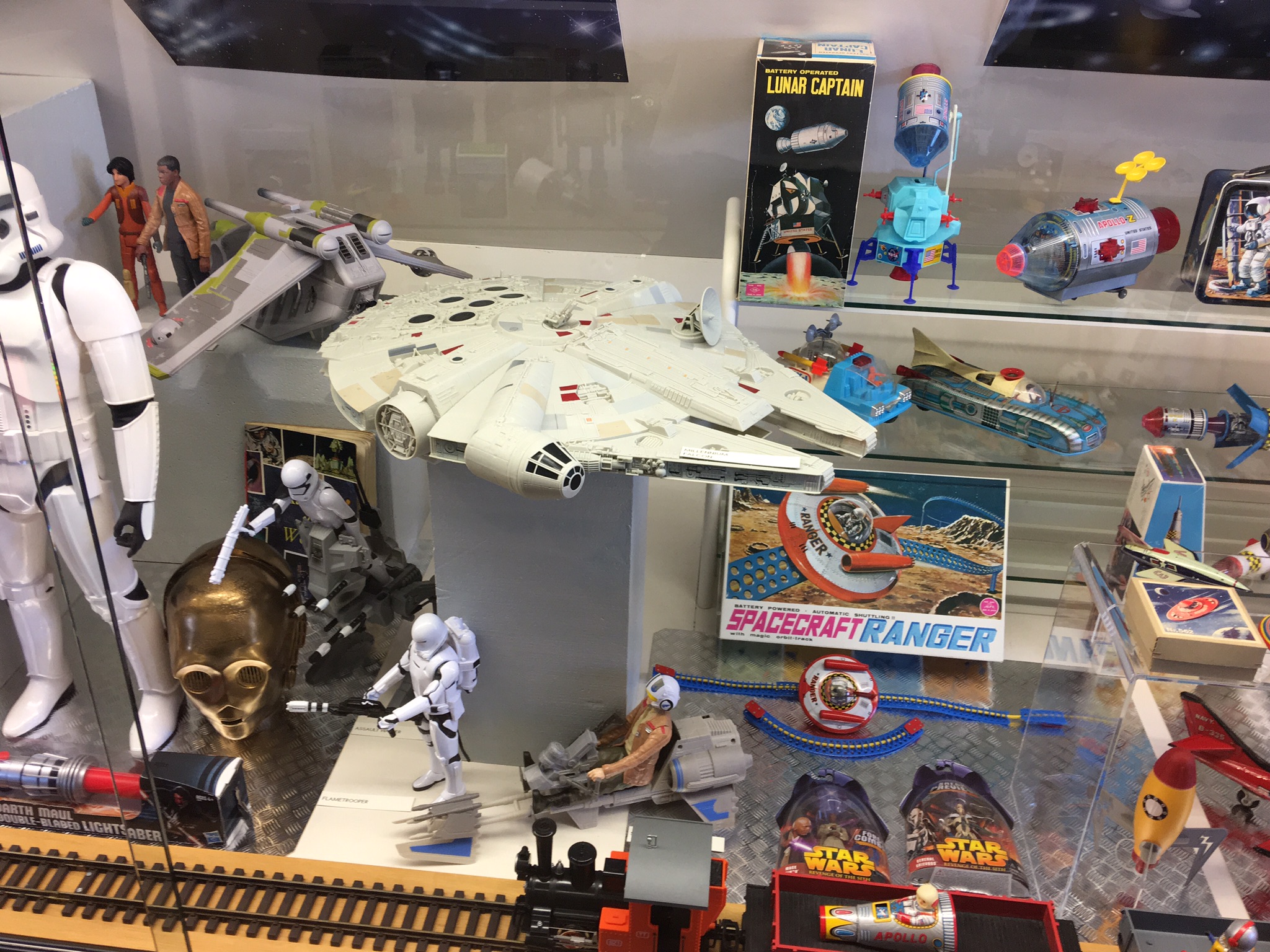 Upstairs the displays continue of space toys and familiar toys to include Star Wars.