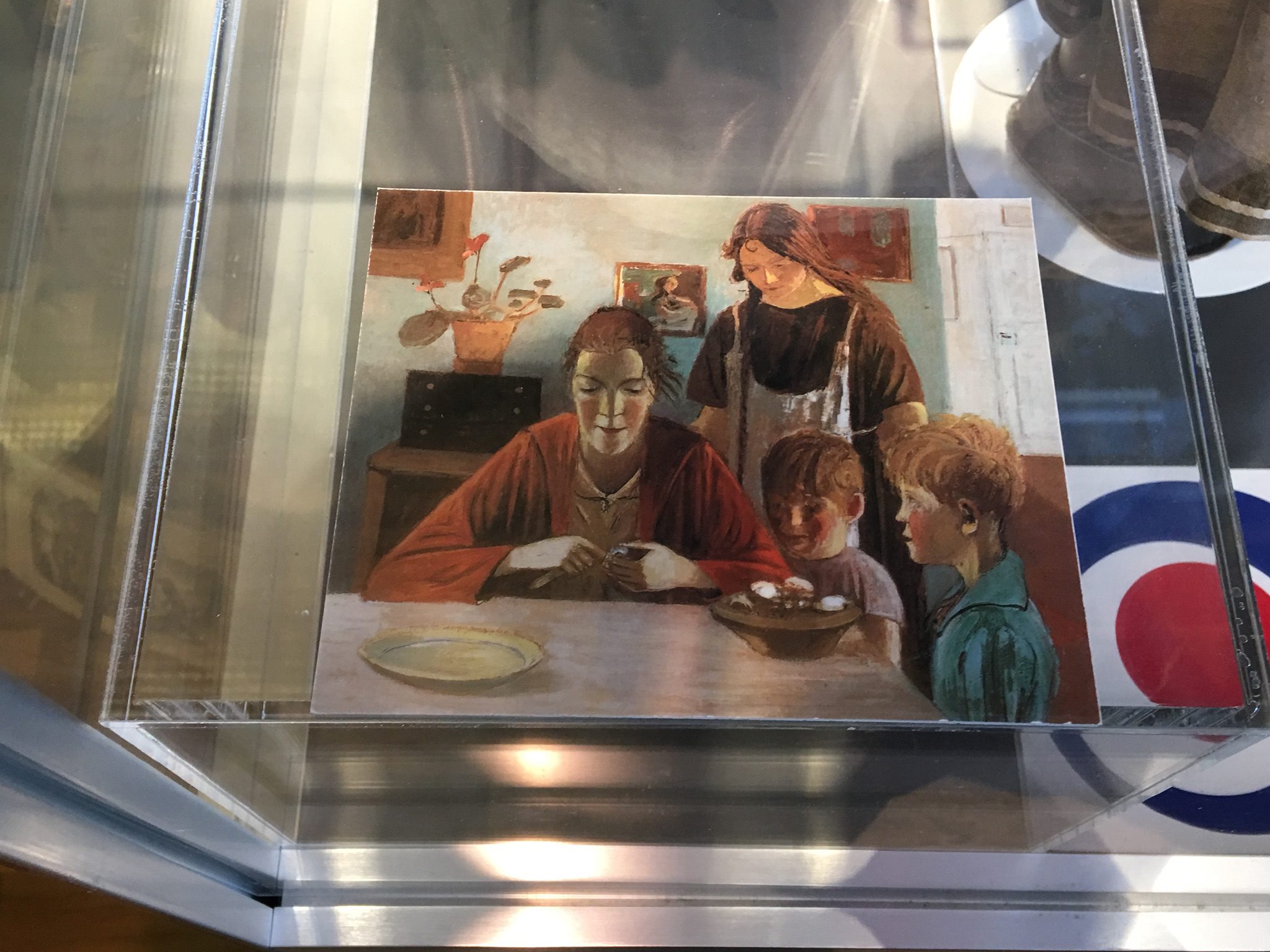 A print of a painting by Ernst Morgenthaler illustrating his wife, Sasha, her sons, and the housekeeper in the background.