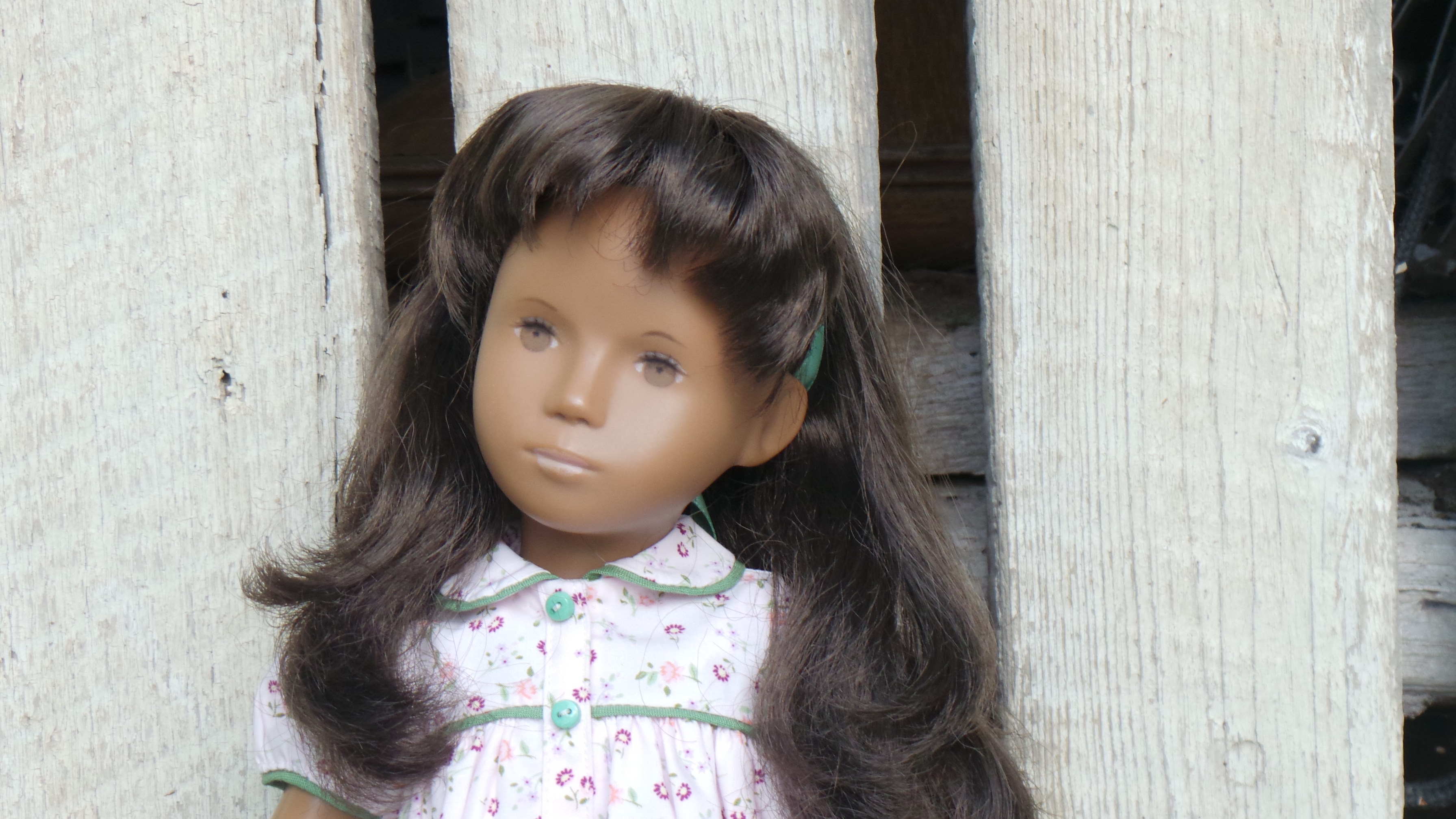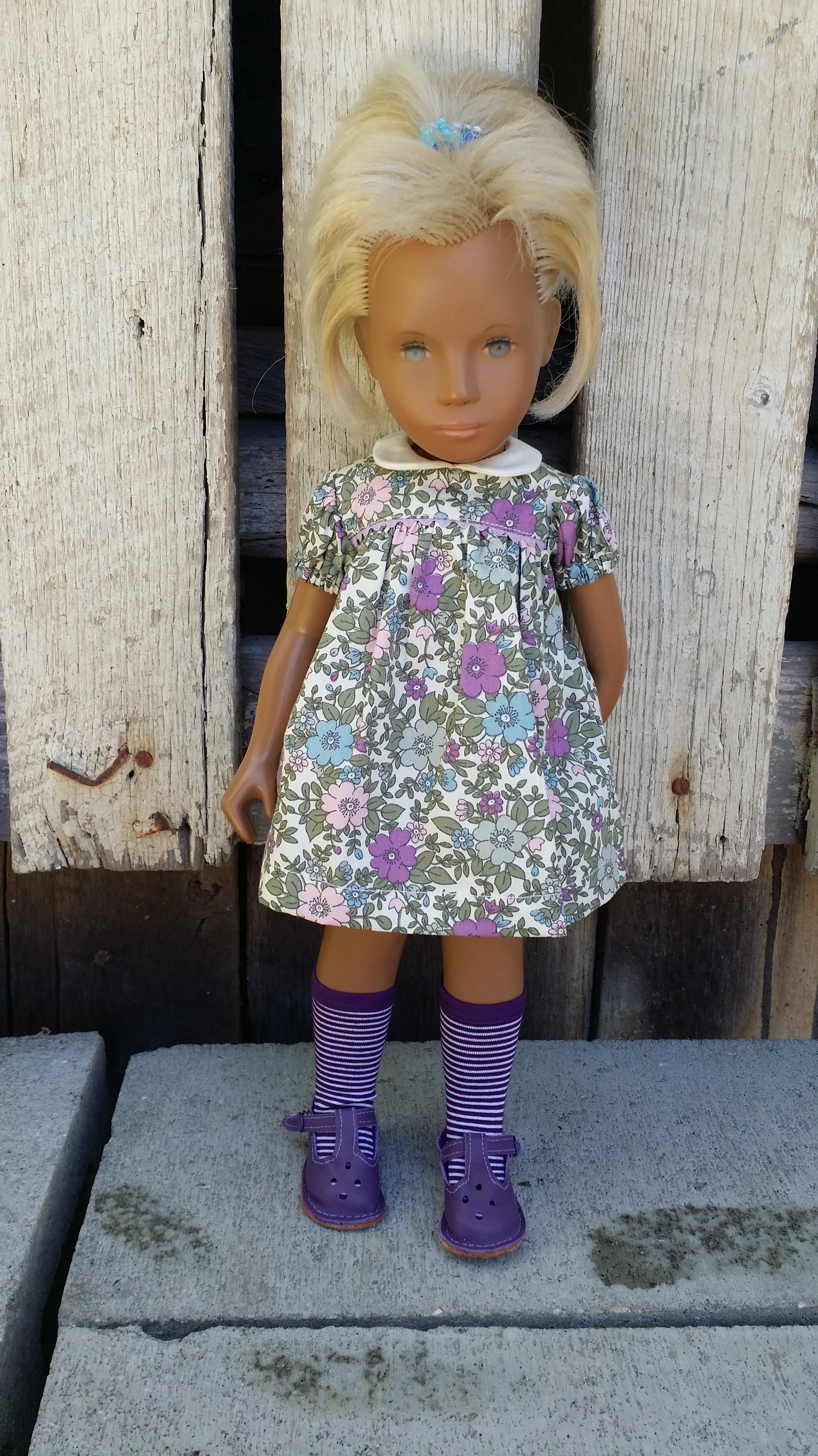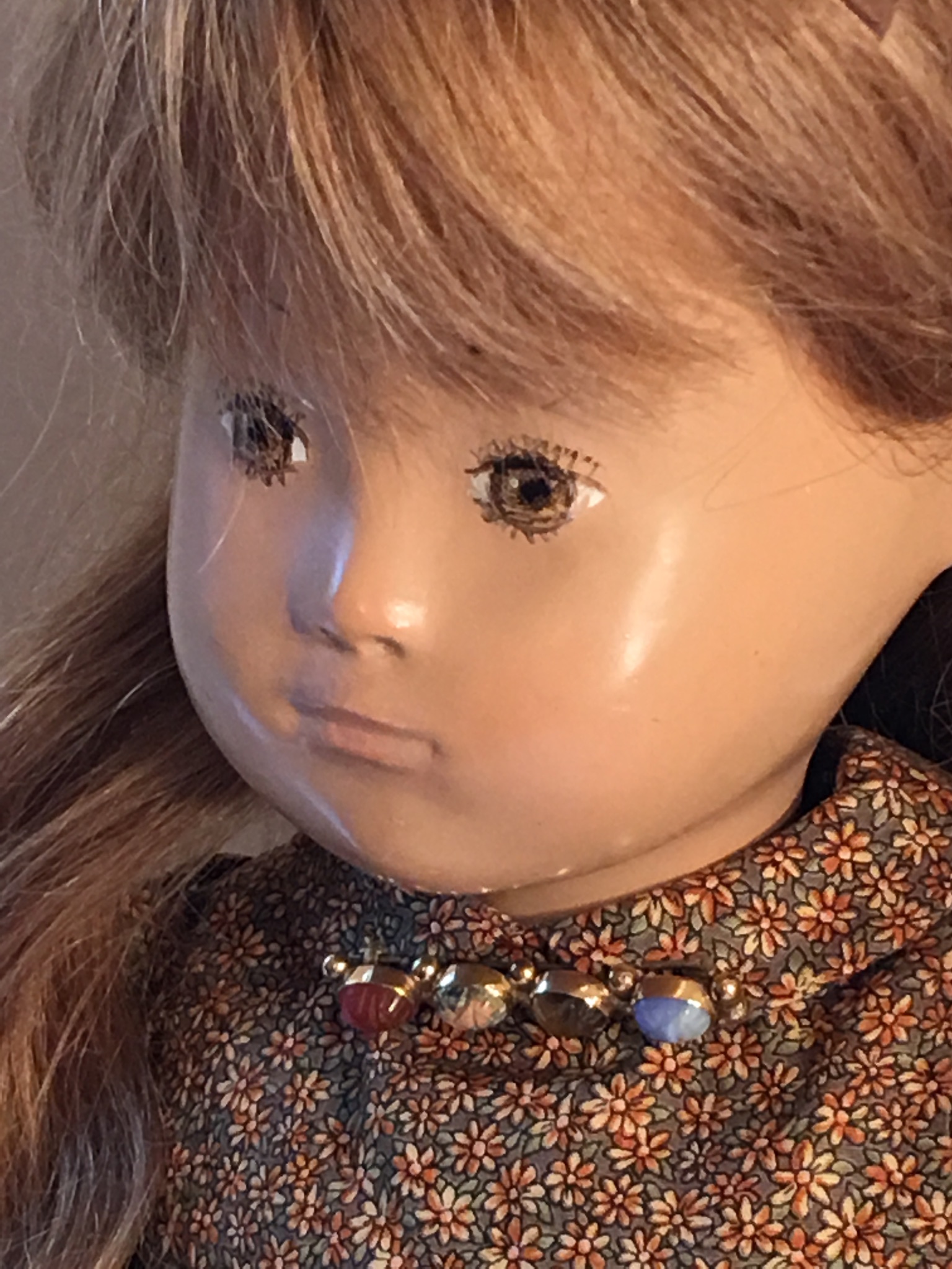 13. Verity, a repaint by Janet Myhill-Dabbs, wearing her green gingham dress made by Janet.