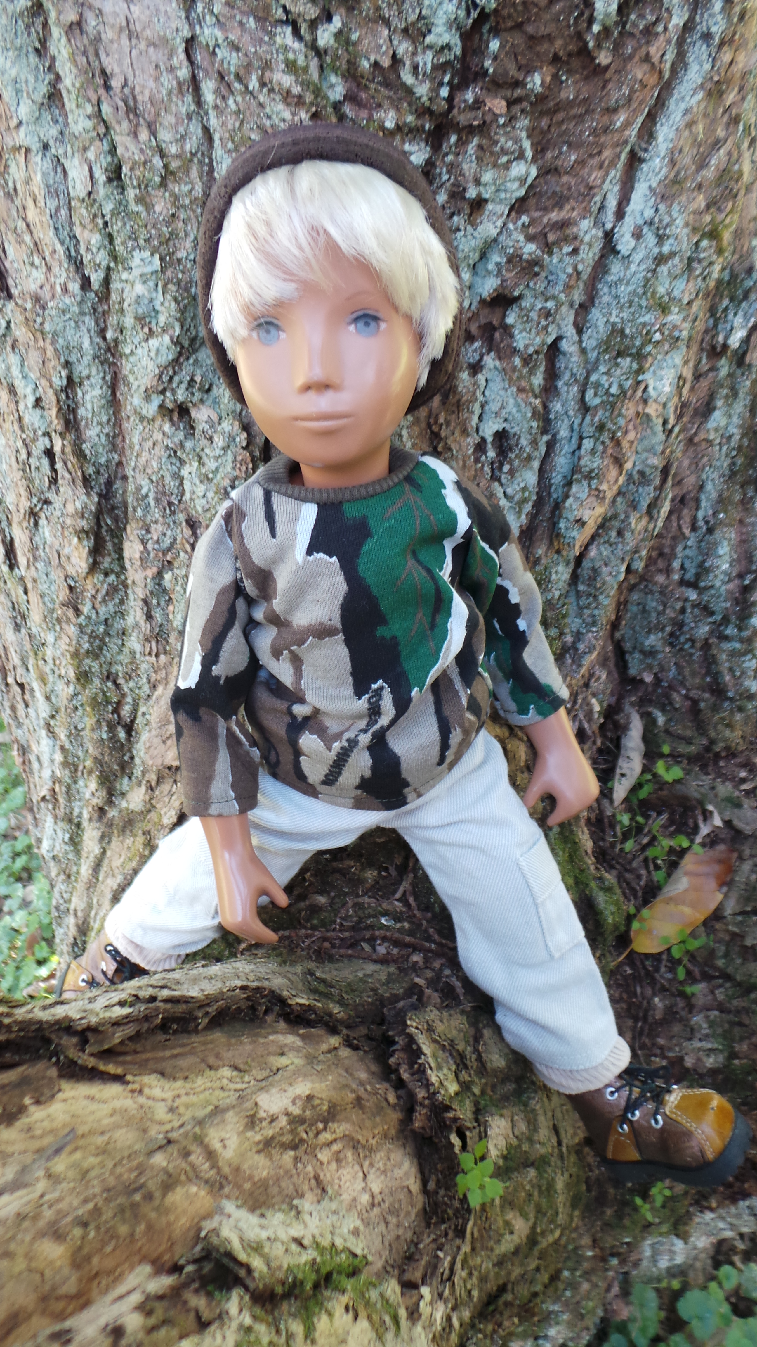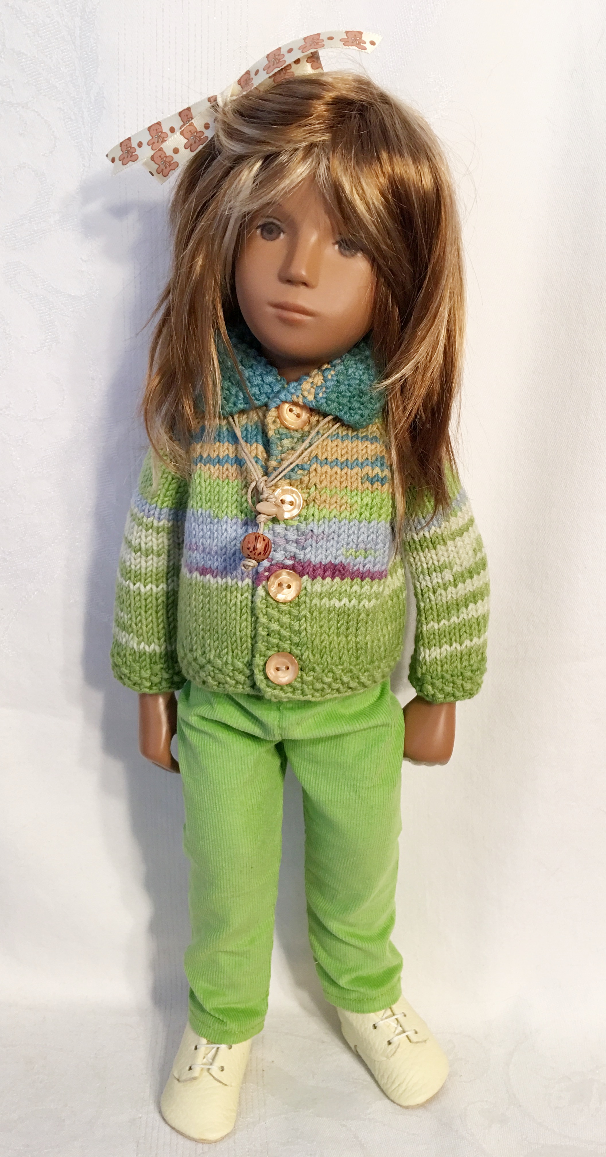 8.  Sudie, a Kelly Wernarsky repaint, wearing a Diane Duke cardigan and corduroy slacks by Michelle Sharpe.