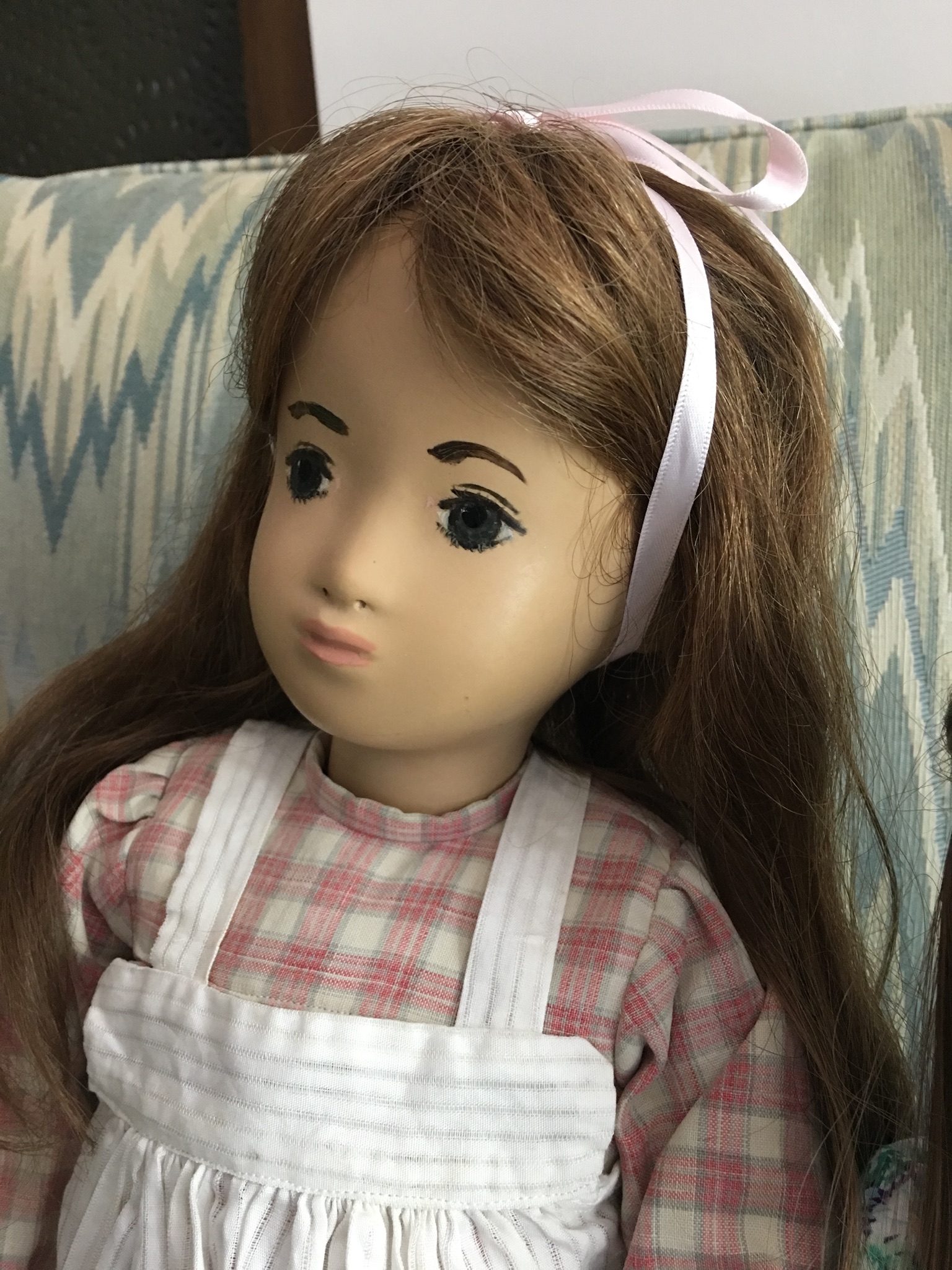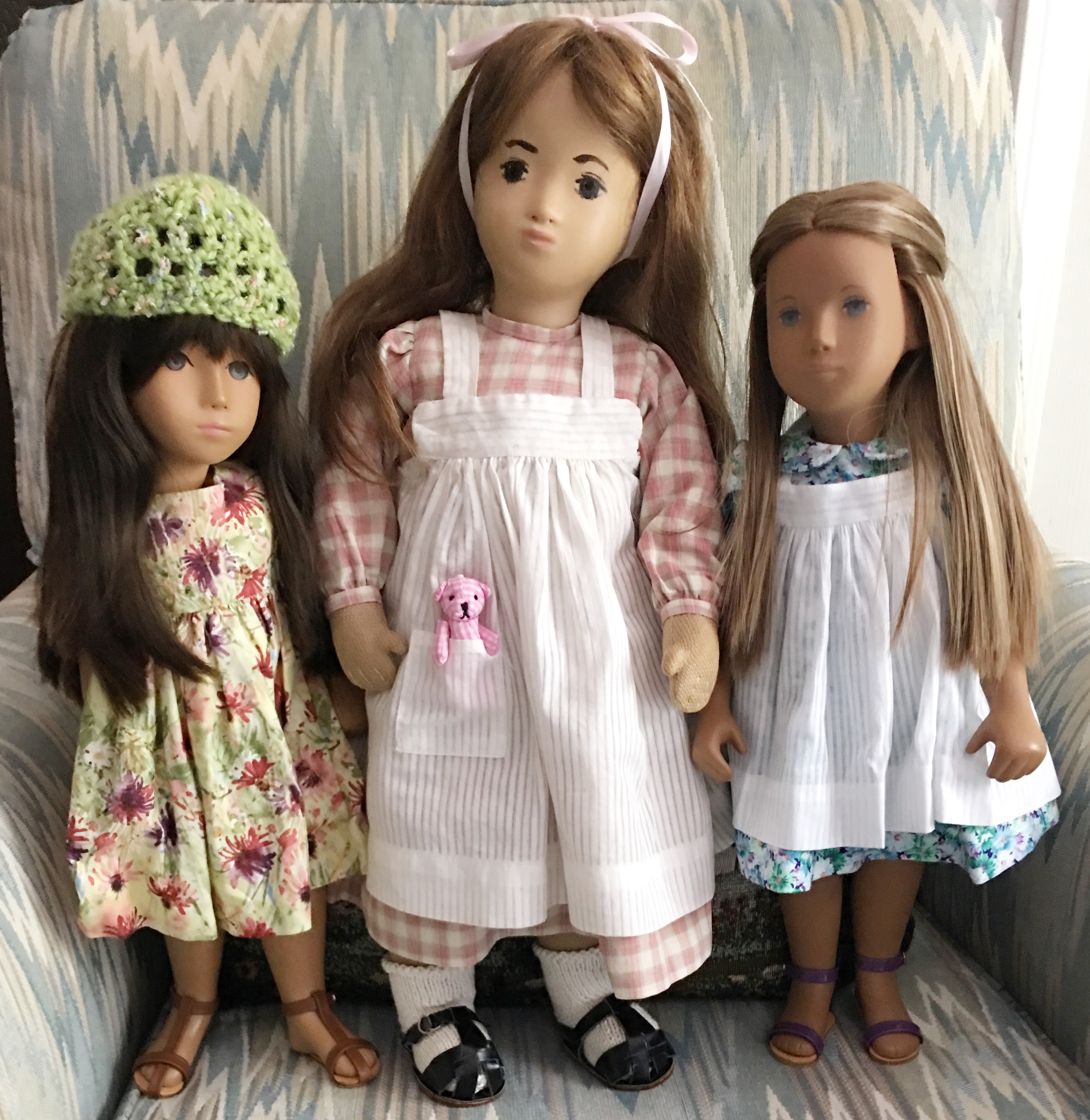 In the previous post, I shared this photo of new additions to our Sasha family and explained that Cathy Himmel and I had exchanged dolls at the Sasha Festival in Cincinnati that resulted in Shelly returning home to Sasha Shangri-La. Shelly is shown here in the center wearing her original outfit.  She is a BIV studio doll.