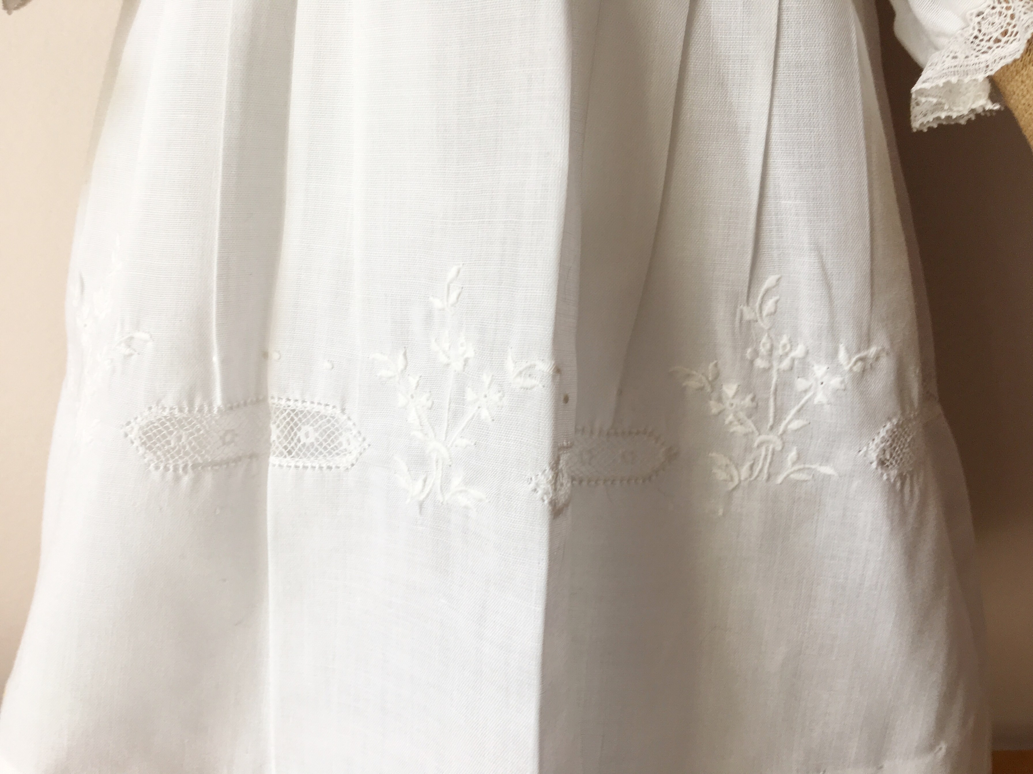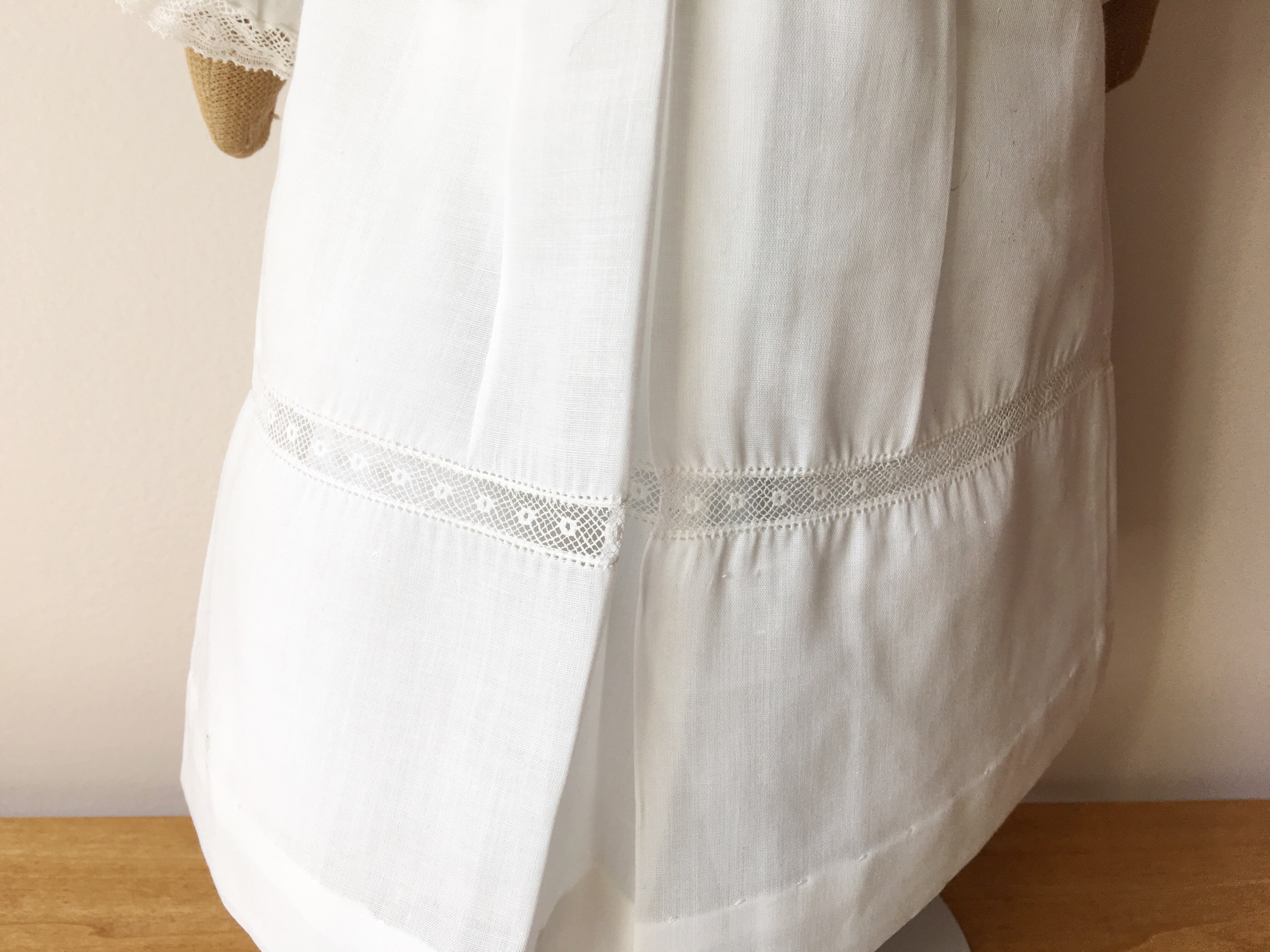 This is the under slip. The neck and arm openings are scalloped. Please notice the lovely work along the hem.