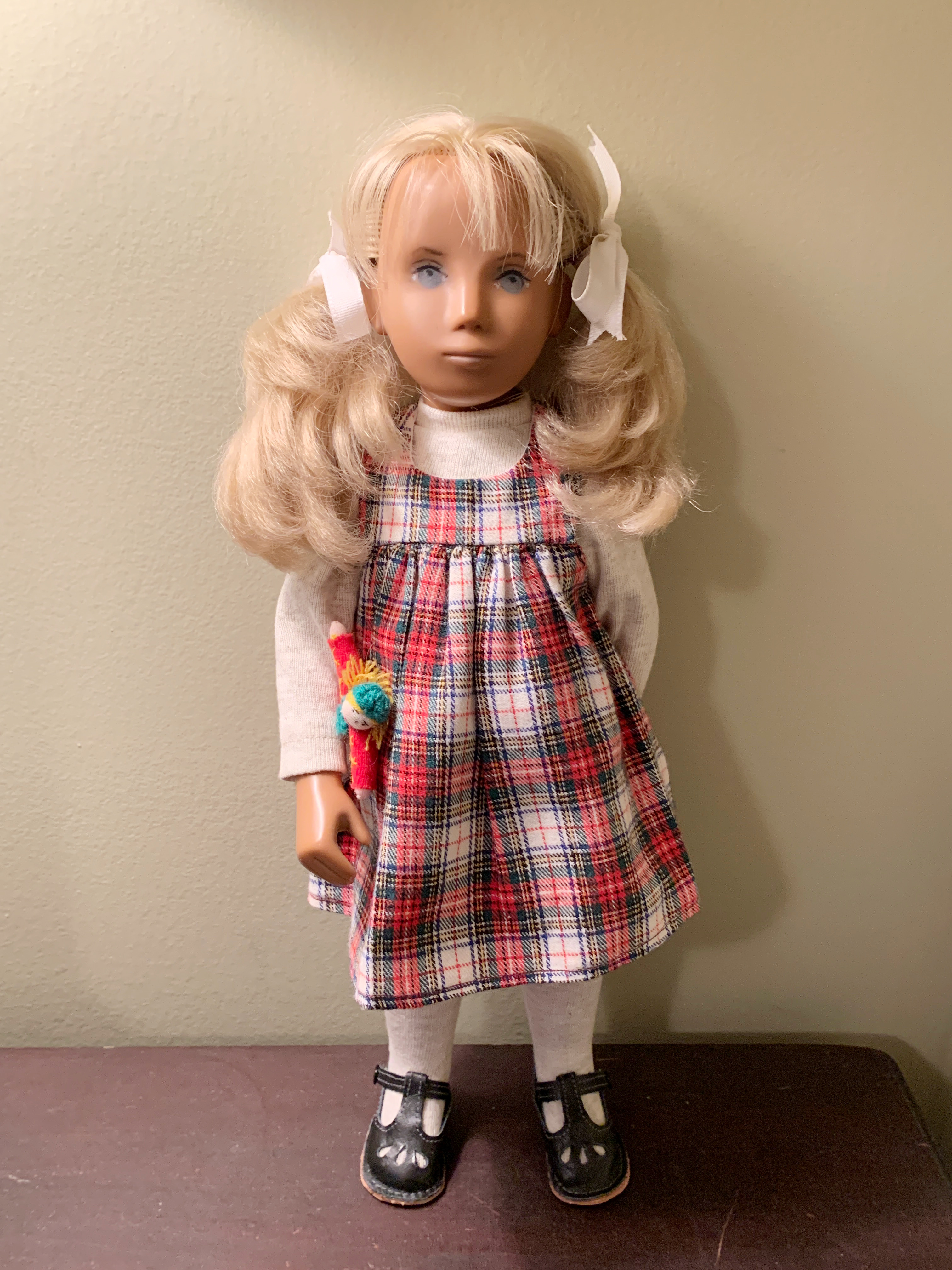 Chloe is a 1966 Sasha doll and was my first NP.  She is a brunette with very beautiful blue eyes. She is wearing a fantastic outfit that I found on Shelly’s site.  I believe Kendal owned this lovely outfit before me and I am uncertain who made it. Thank you Sarah Williams for your help. 🥰