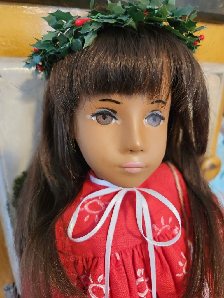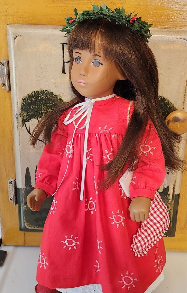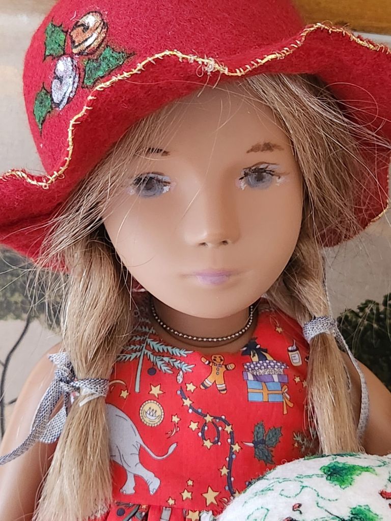 Oh look! Morgen has joined us to wish you a Happy New Year. Morgen is a very special, early Gotz ponytail girl that was repainted by Sasha Morgenthaler herself. She did this for a lady who worked in her studio. Here are a few photos showing Morgen up close.