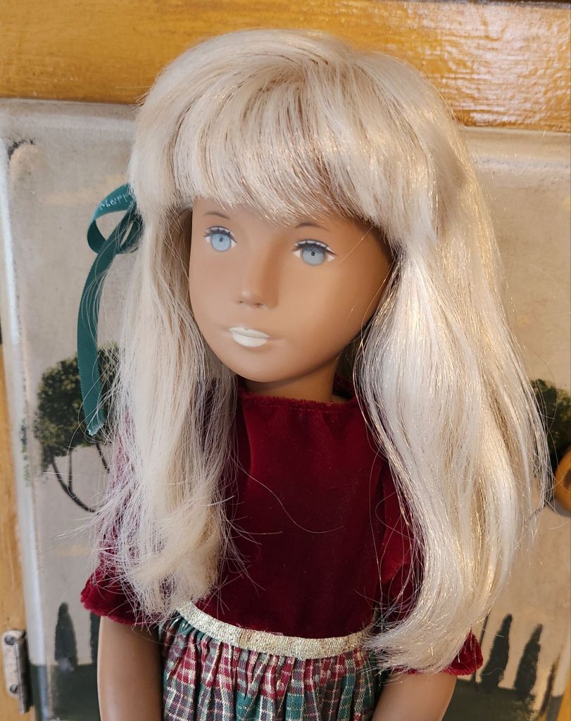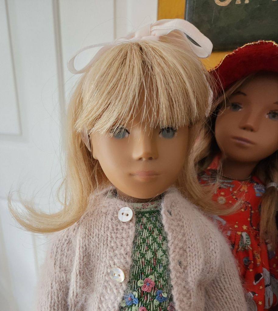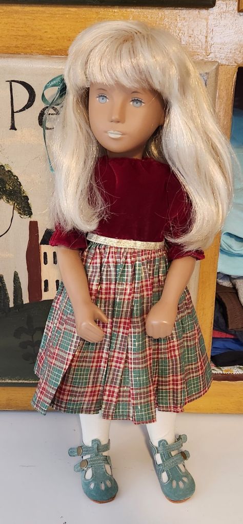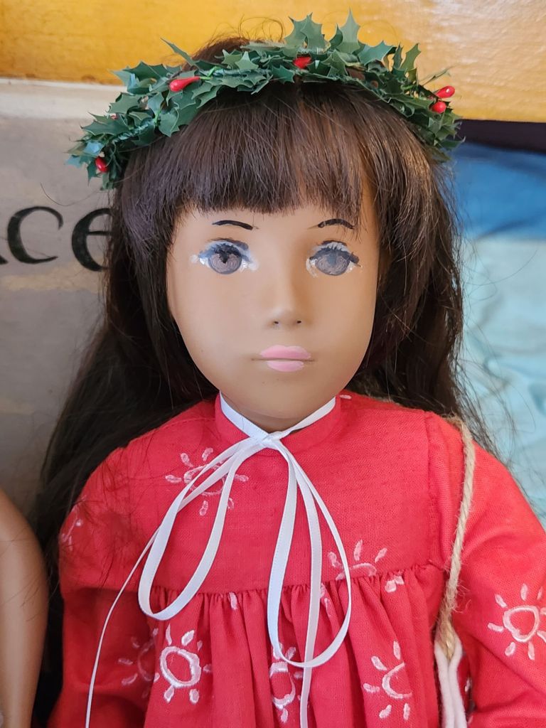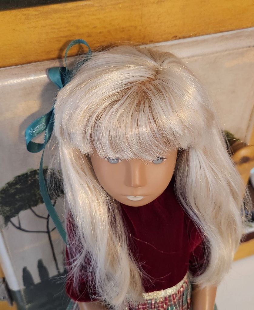 Next we are joined by a new girl that arrived just before Christmas. She was in a doll auction on Facebook and sold by a well known doll artist here in the USA. I was looking to see if she was selling any dolls with the Albert Marque head mold when I spotted a Sasha doll! I was so surprised and delighted to bring her home. Here was her sole auction photo.