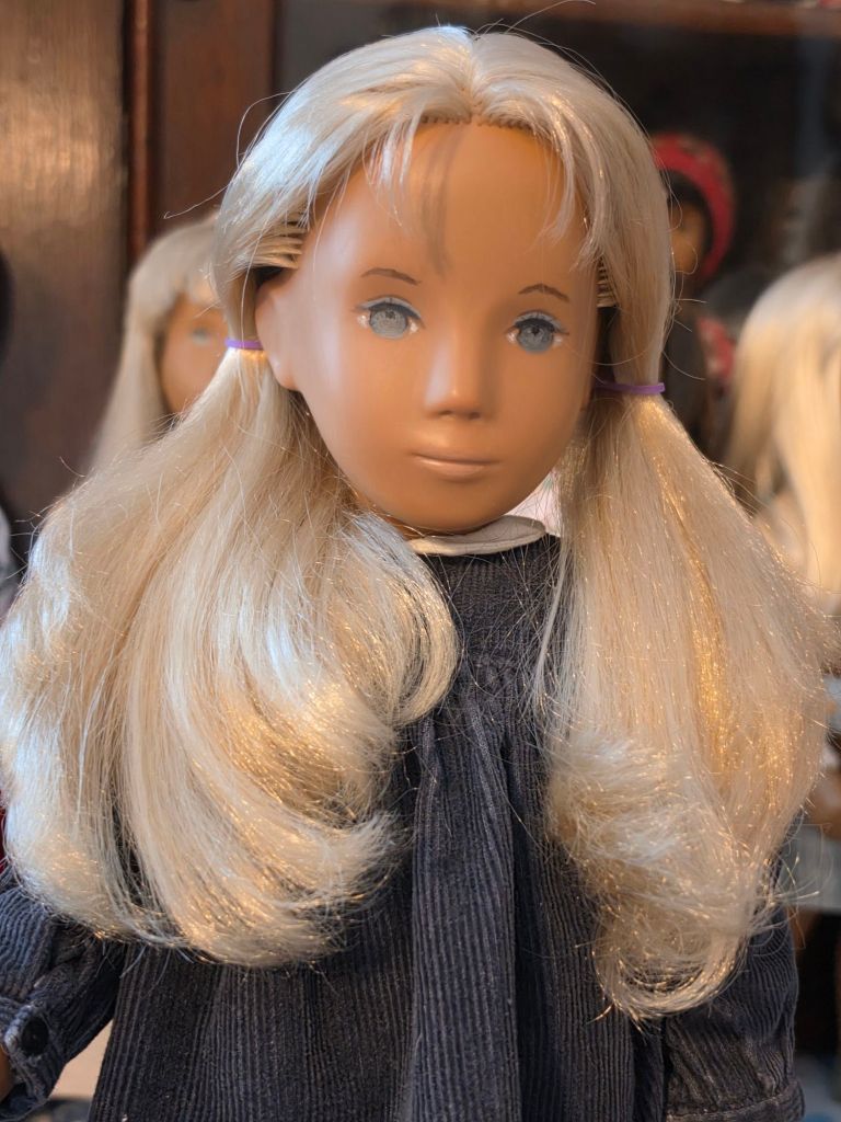 A couple of close up photos show the wonderful hand painting of this NP girl. I am thinking she is a bit of a transition girl painted sometime from the graphic-style eye painting to the more feminine painting of 1967 which gave the NP girls beautiful eyelashes. This helped to distinguish them from the eye painting of the NP boys that were new on the scene in 1967. Anyway, I love her dreamy eyes. ❤️