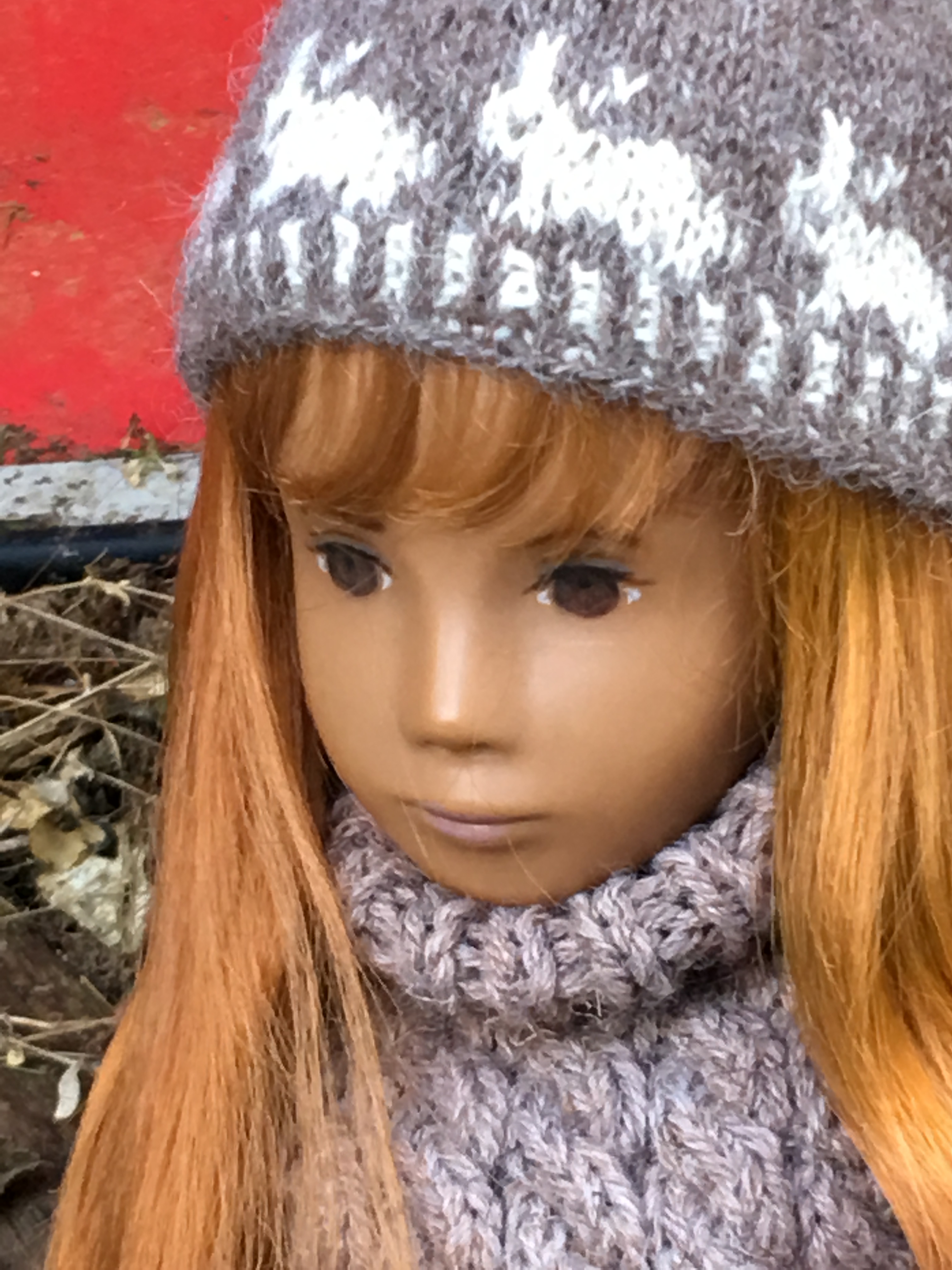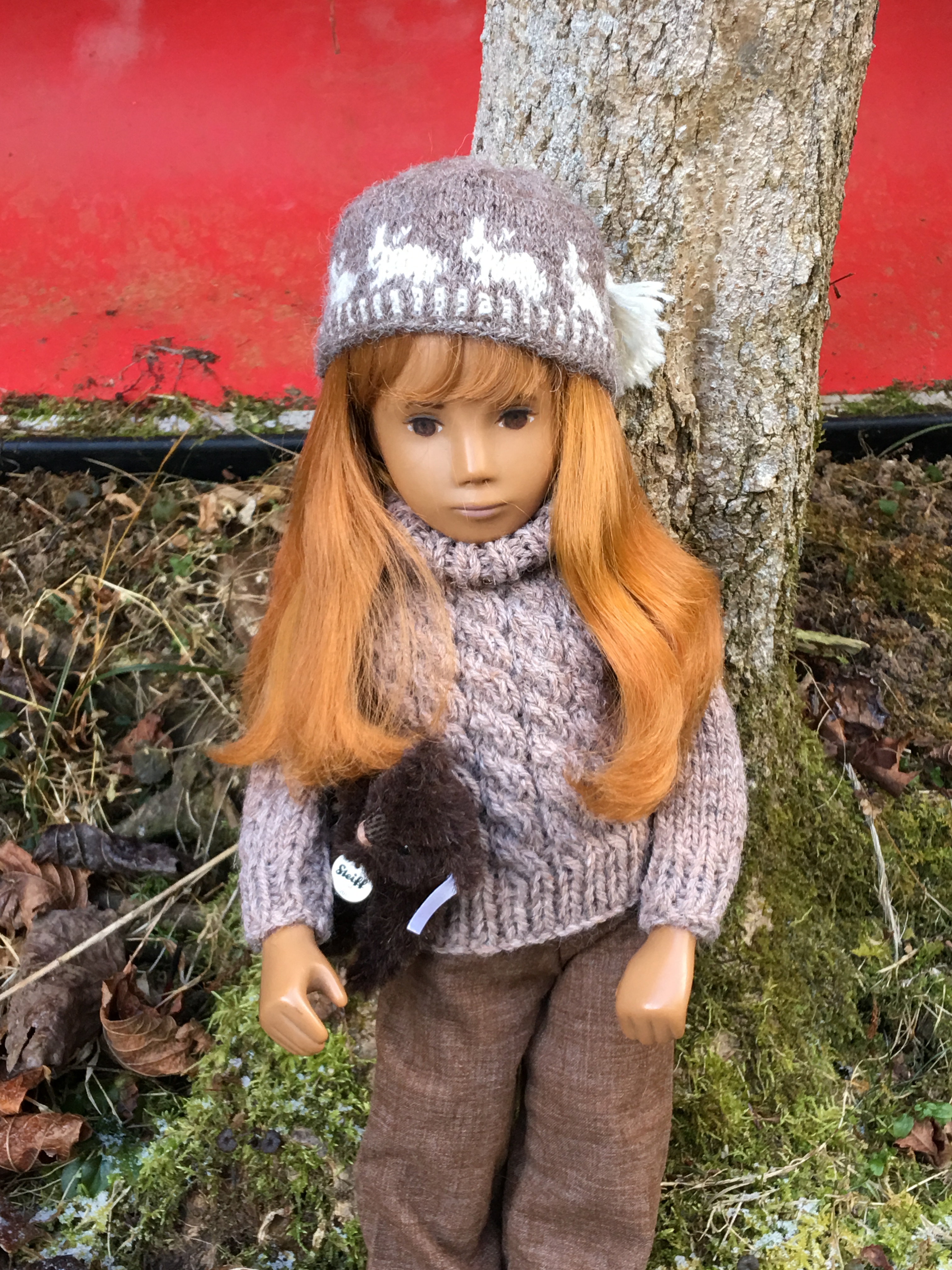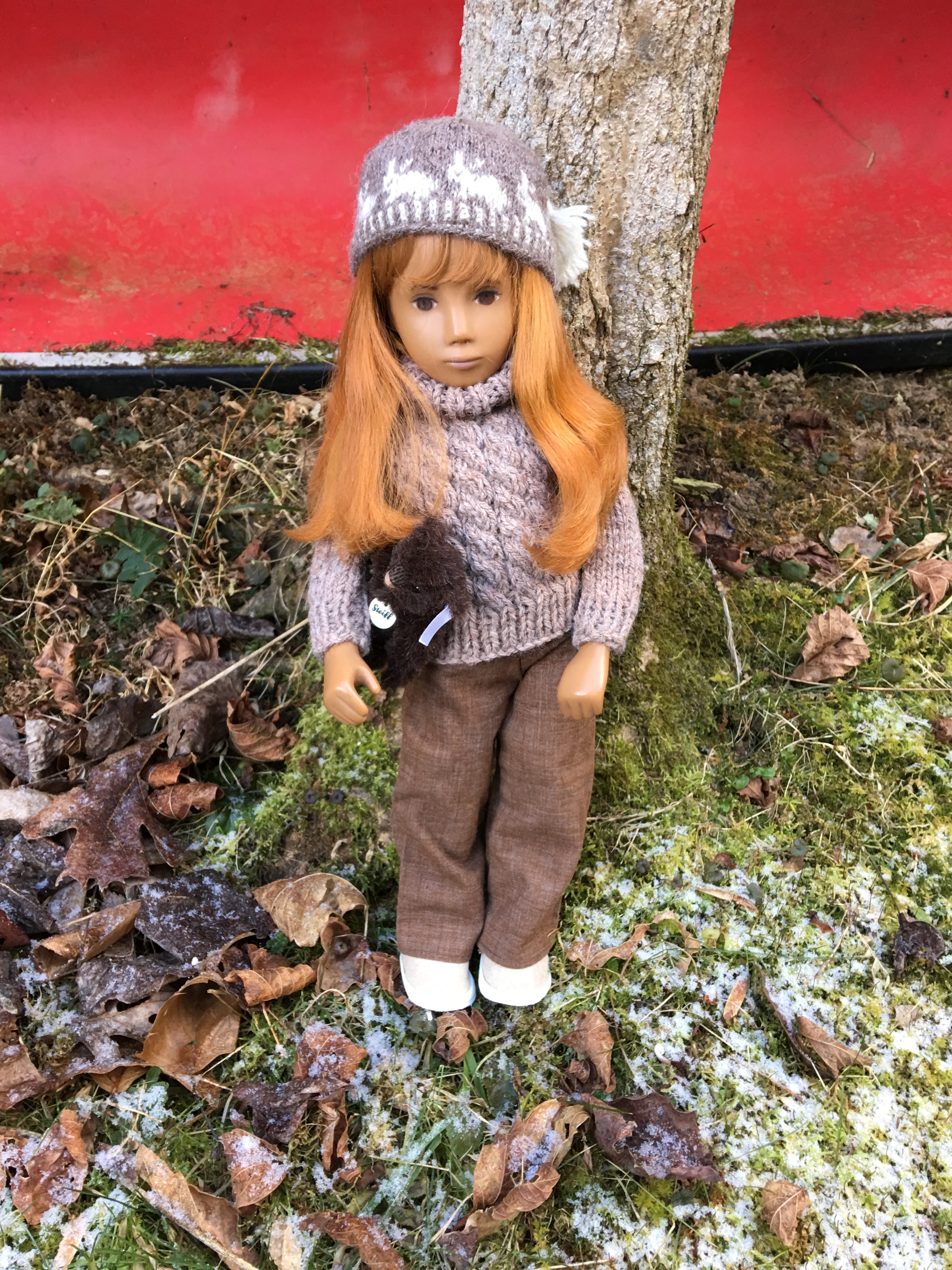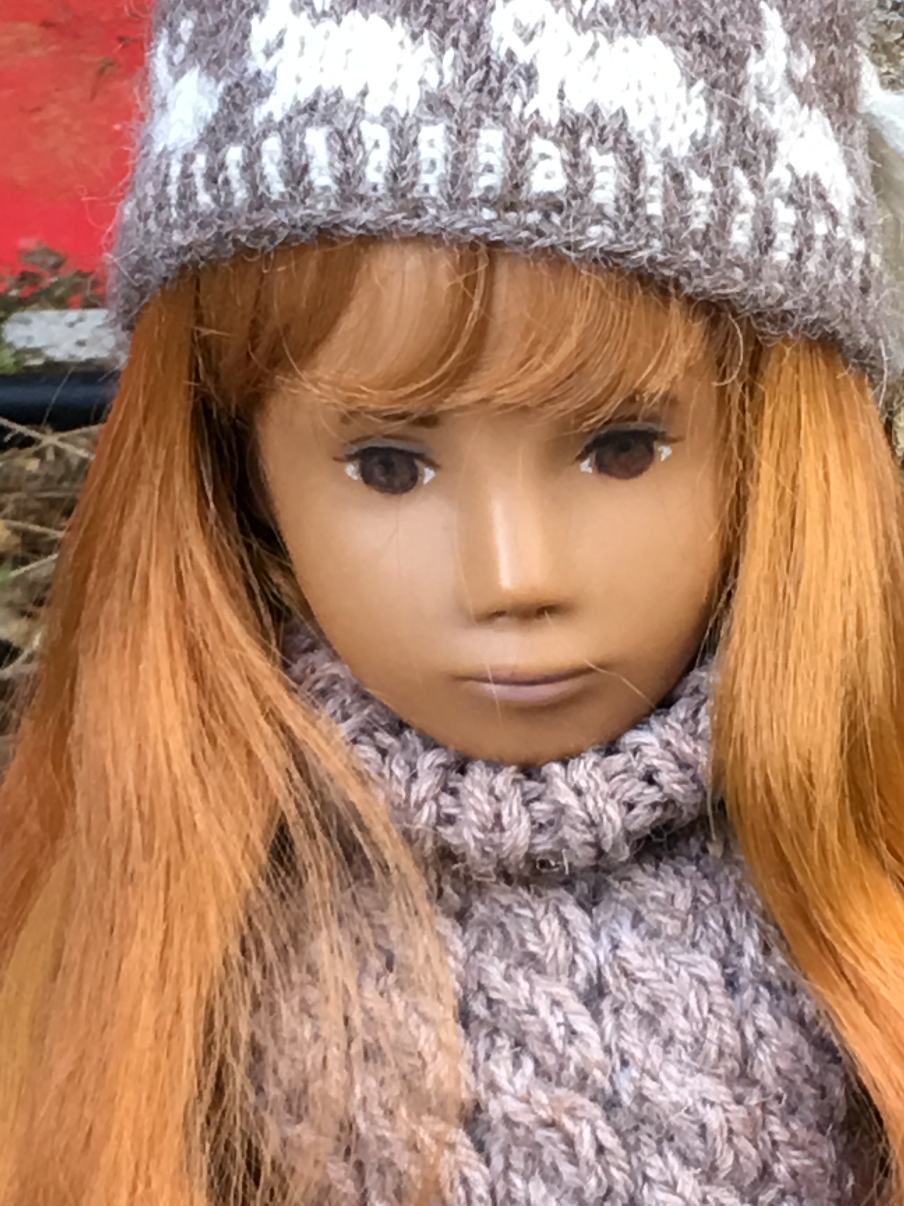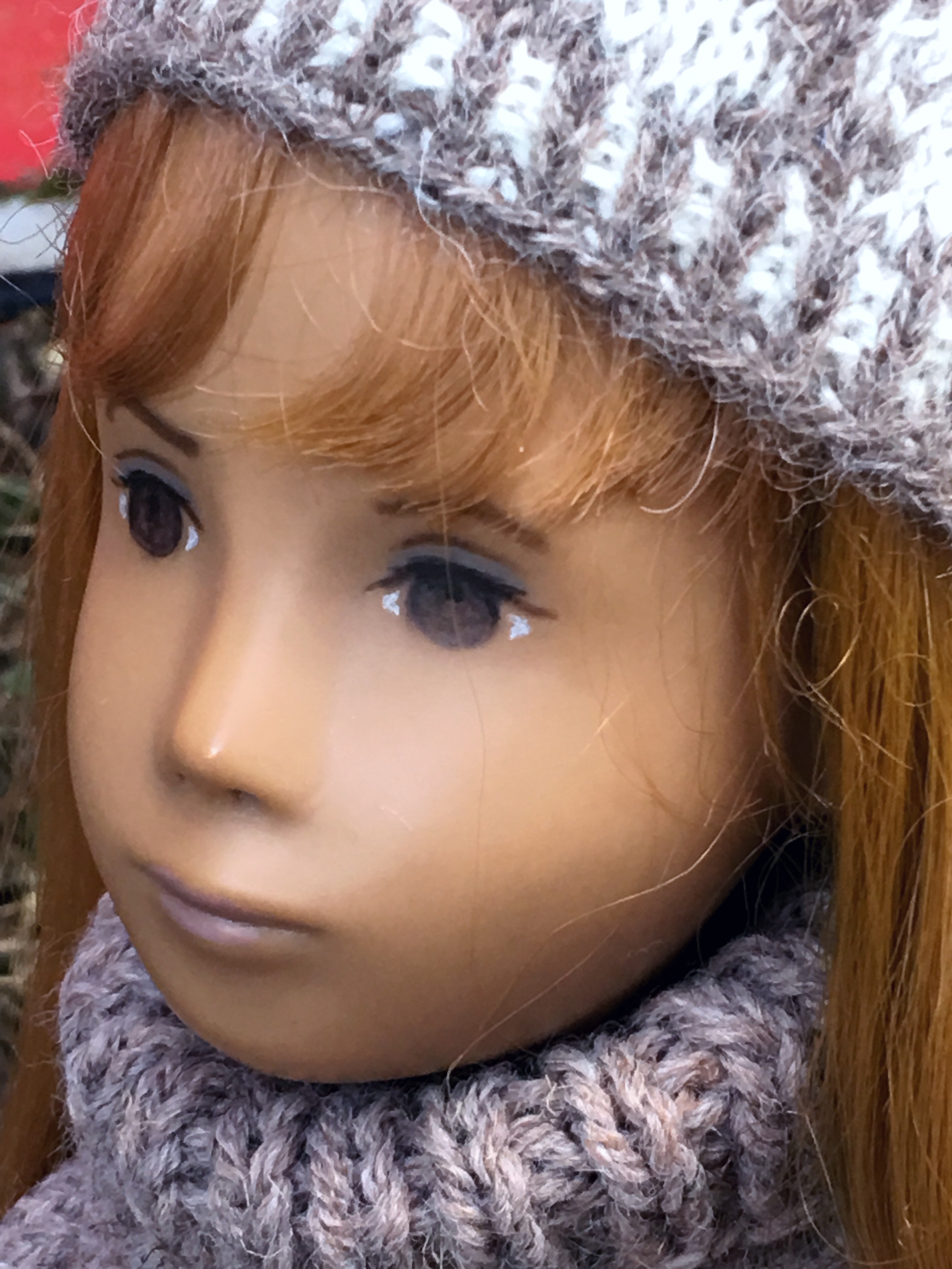 A couple of years ago when Janet Myhill-Dabbs let me know this beauty was up for adoption, I could not adopt this beautiful girl quickly enough. When Janet visited last Fall, she offered to enhance her eye painting to be more in keeping with the original studio doll and less of the previous owner’s request. I was happy to see how her new eyes might look though I liked her eyes before and everything about her. The first two outdoor photos were taken when she first arrived and are on the blog. 😊