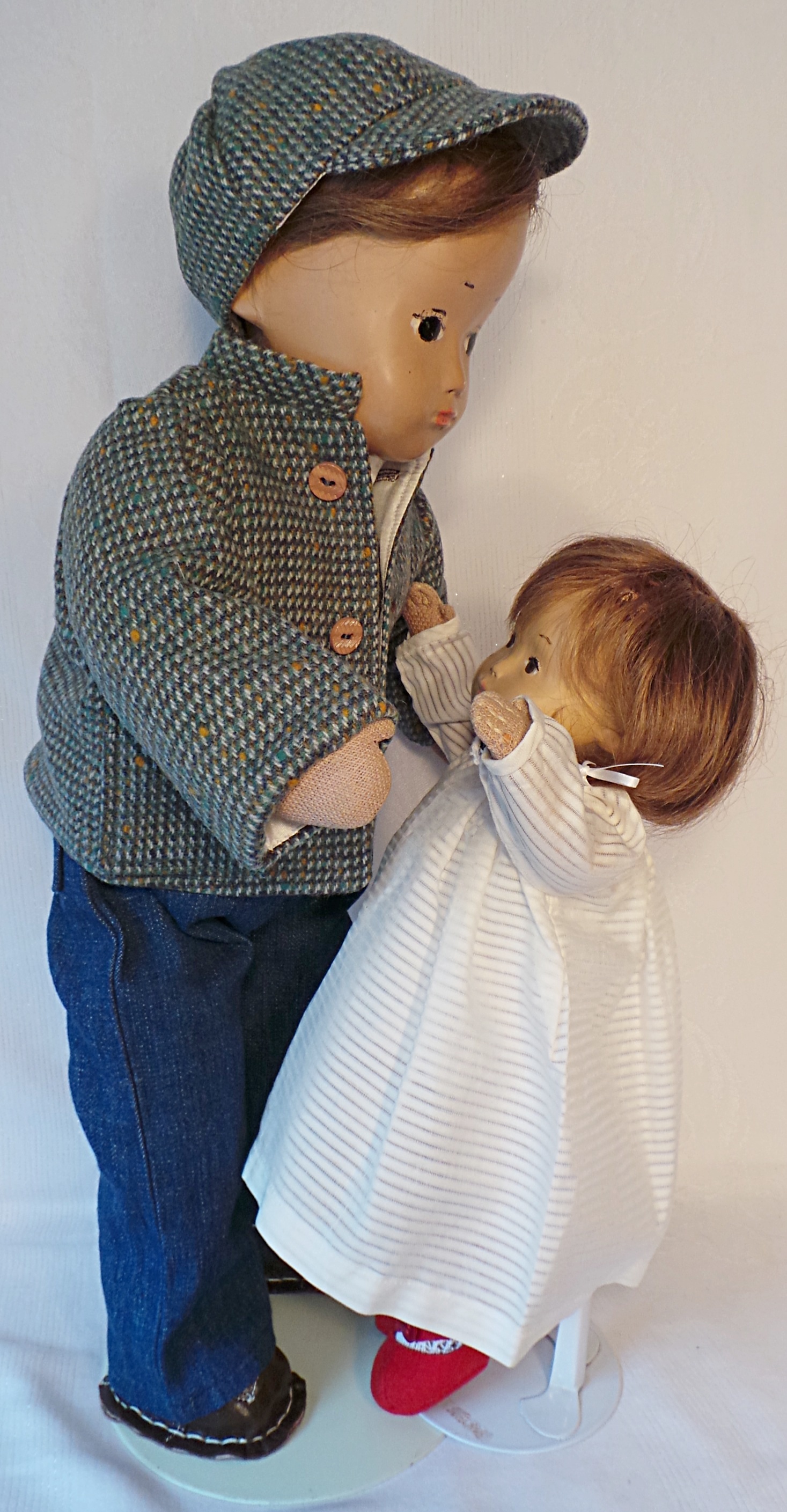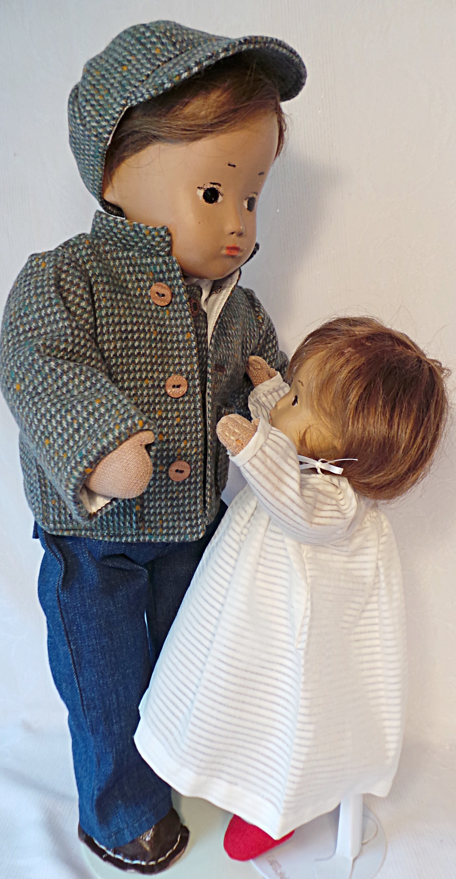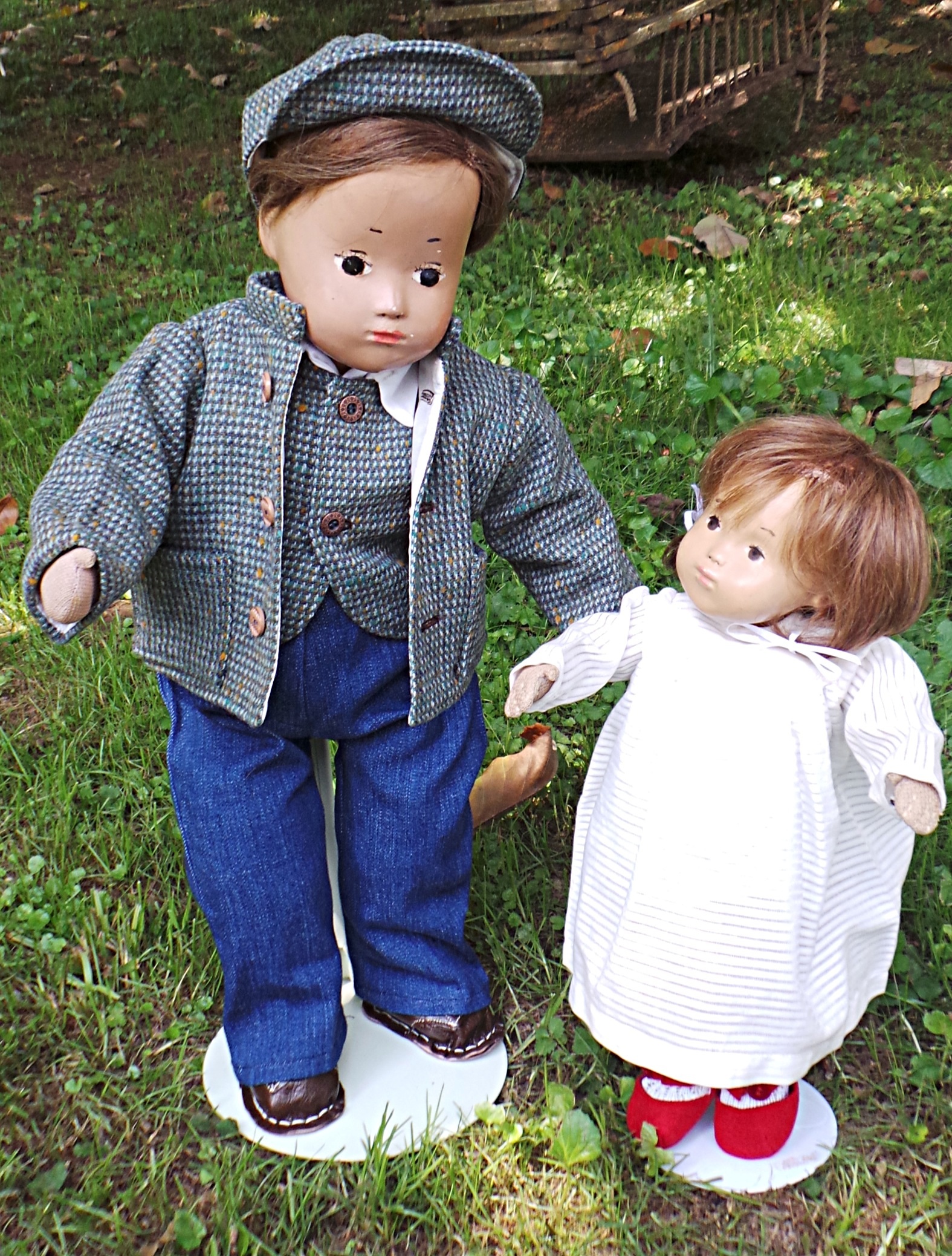 Here we have Lucy in a cheery yellow outfit, Finn in the middle in his new shirt and shorts, and Kim in a pretty pink outfit. Sharon ran ideas by me during her creative time and I liked that very much.