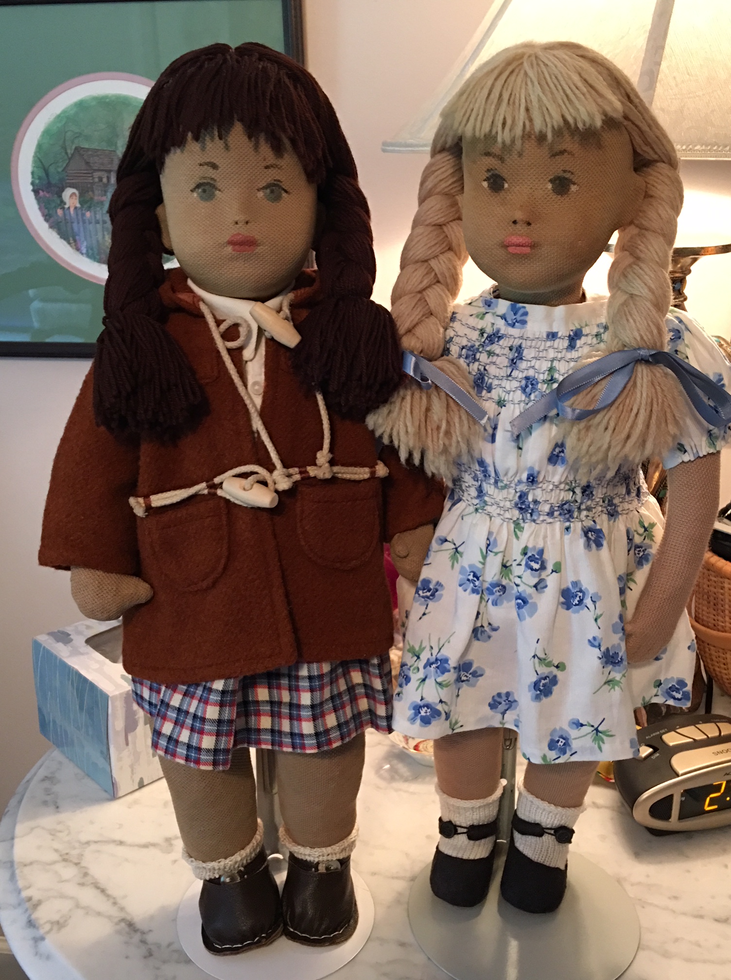 Some of you may remember this painting of my Mom that was painted from a black and white photograph during WWII. My great uncle had it painted while he was stationed in England. He had brown eyes so I think the artist thought my Mom did too. However, my Mom and my Grandmother both had blue eyes. Other than the eye color, the painting is very accurate and resembles Mom, Mary Adeline. My Grandmother’s name was Adeline Pearl. Please let me introduce a new Sasha studio doll who is named Addy after my Mom and Grandmother.