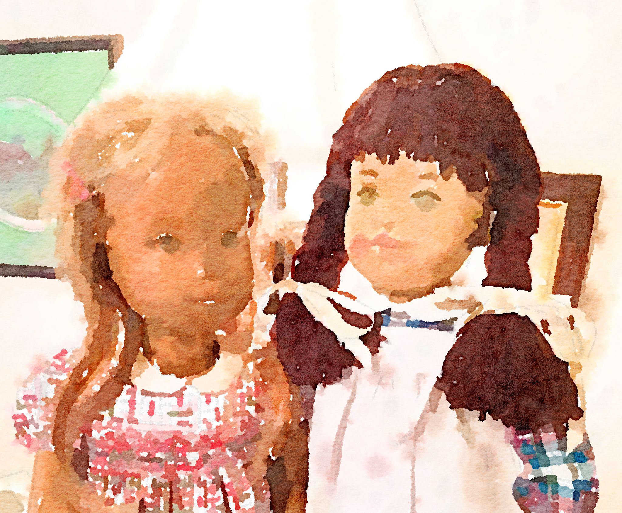 Addy is standing next to her sister Abby, an AI studio doll that has lived here at Sasha Shangri-La for several years now. They are both about the same height. It is so nice to see them together.