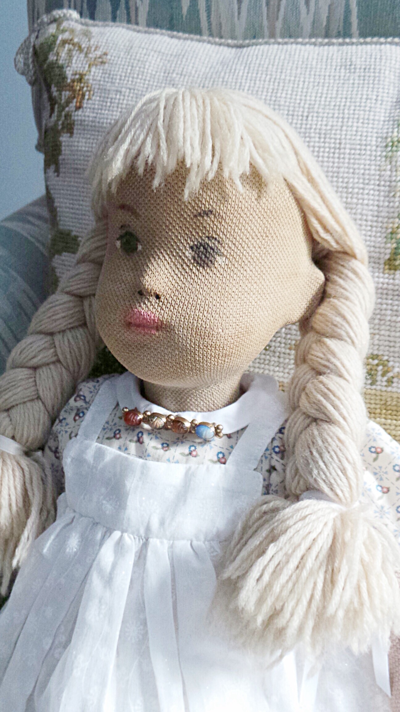 I have loved cloth dolls all of my life and finding this beautiful girl feels like finding a treasure!