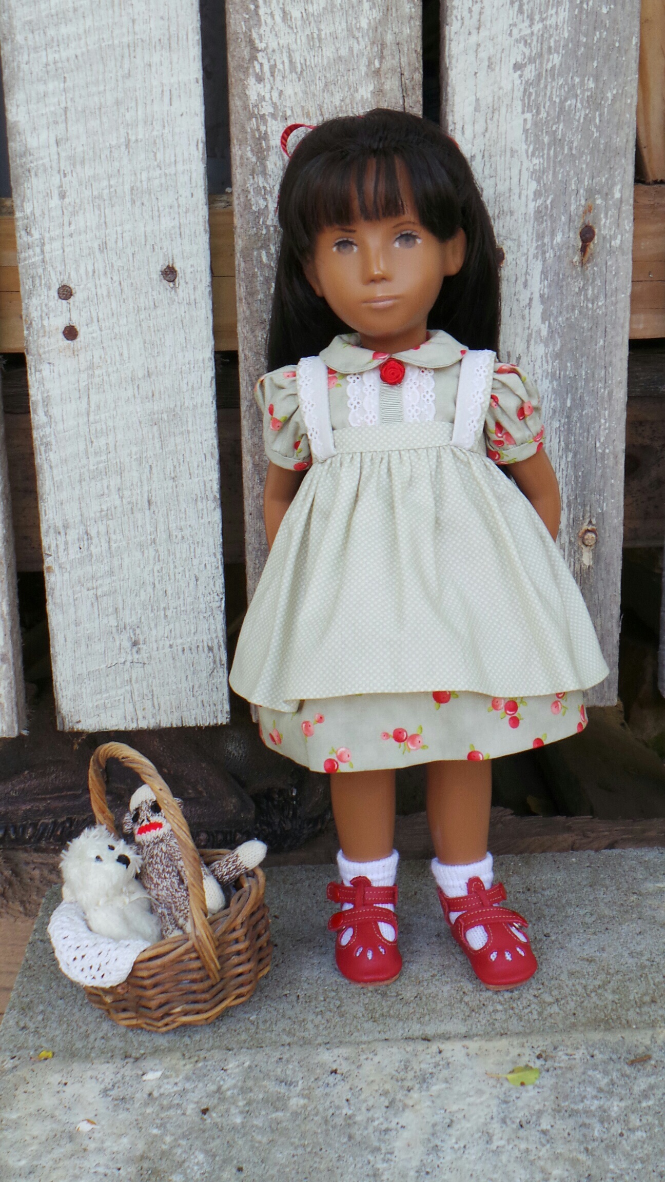 Pearl wearing her new outfit with ballet pink leather shoes from Sashapotamus. I have the perfect pair of brown boots for this set but I wanted to show these pretty matching socks. π