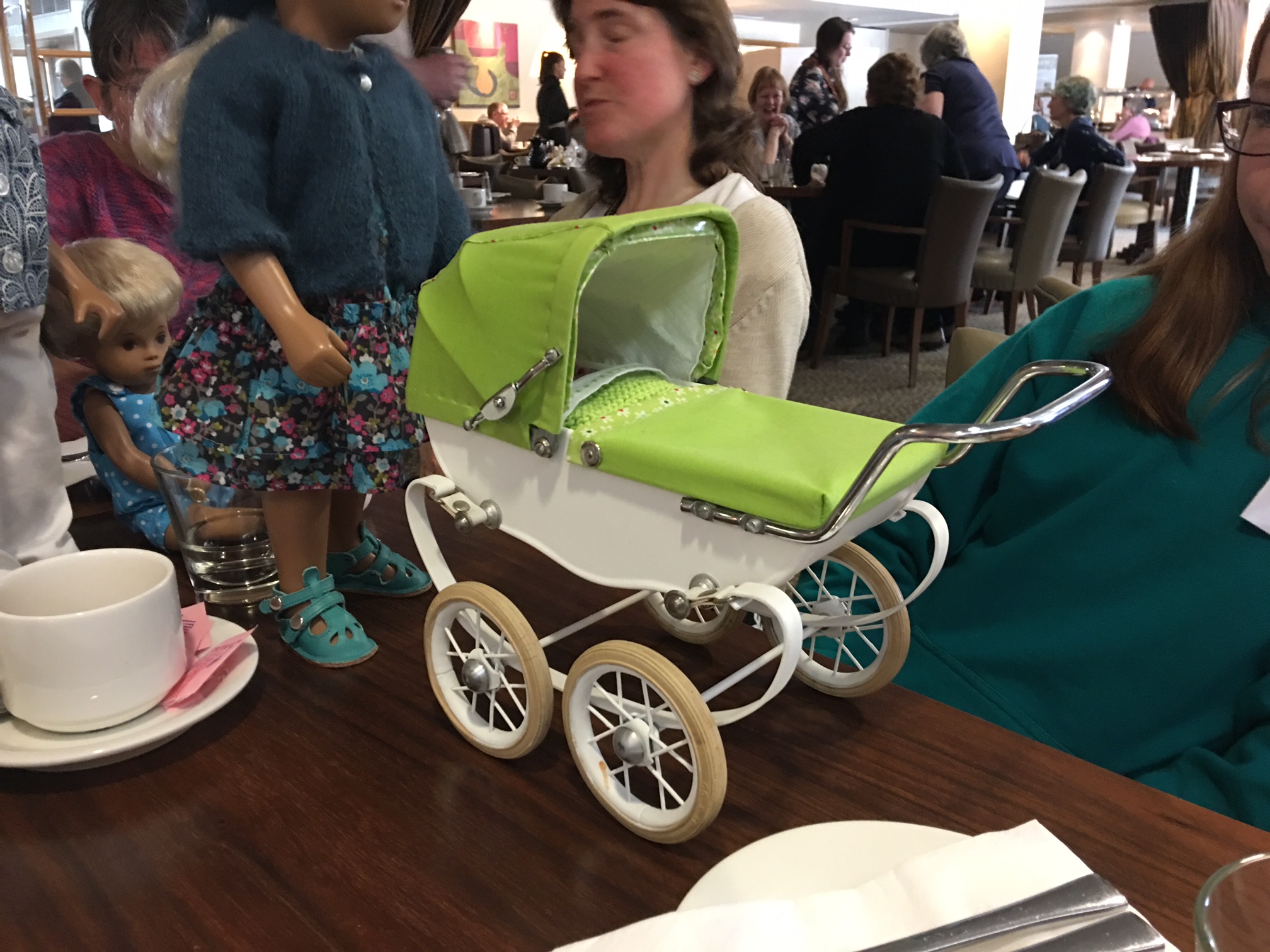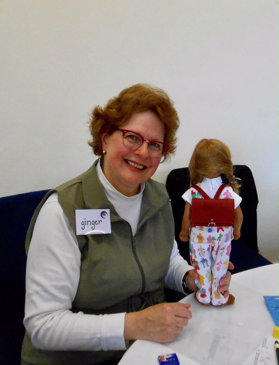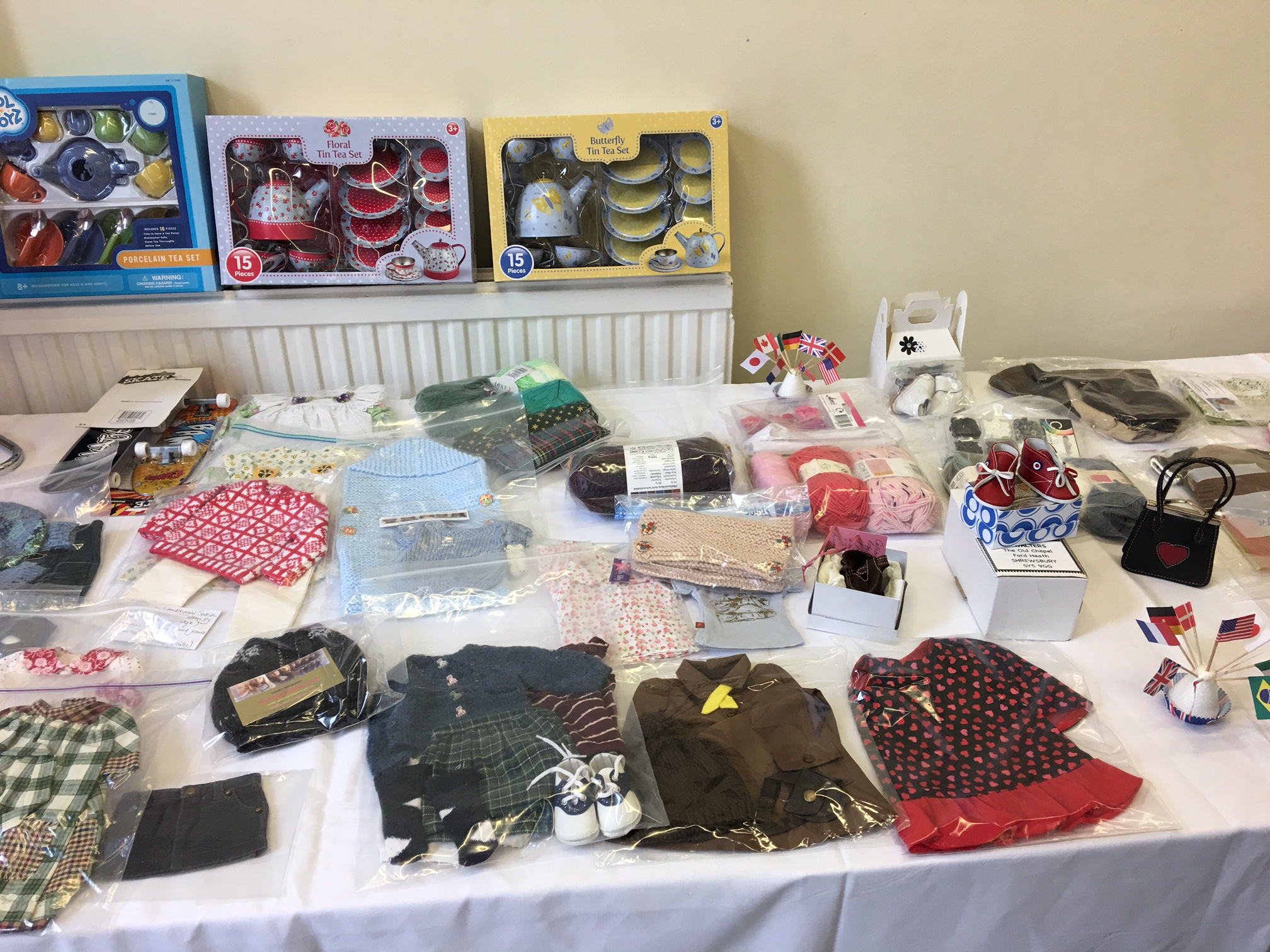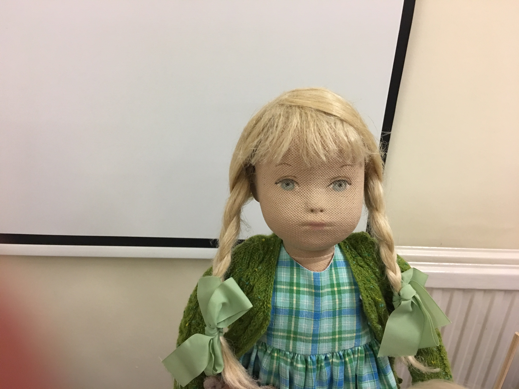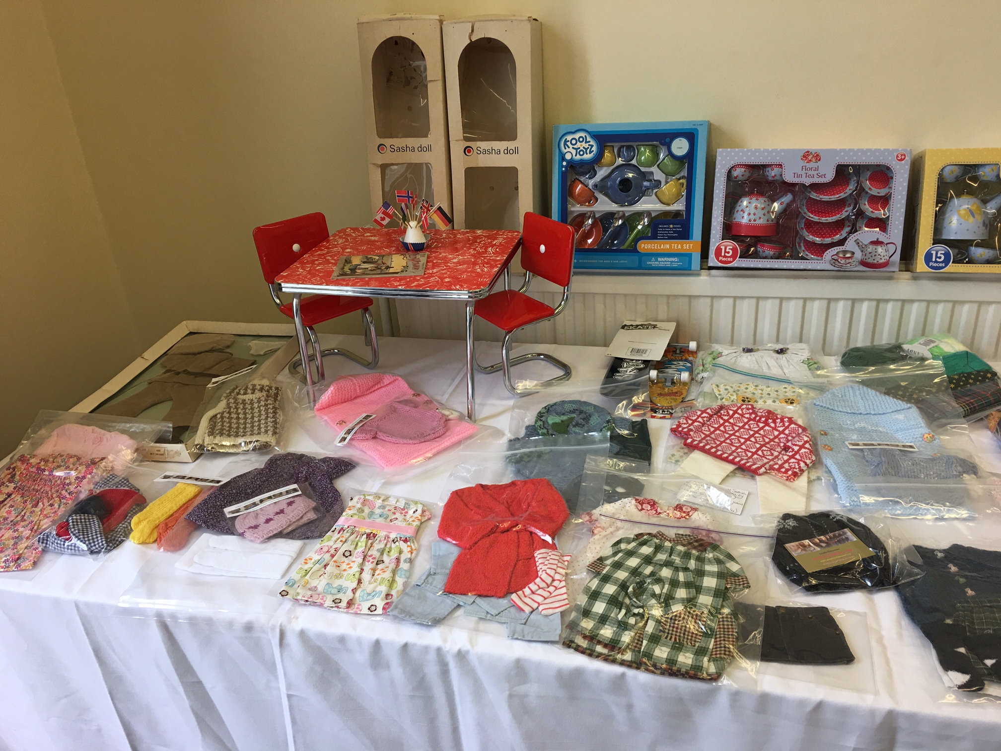 I am very happy here because I actually made the red leather satchel that Gertie is wearing.  This happened thanks to Brigitte and her patience plus I sat next to her which helped me a lot. I also made a wooden duck toy at DollMum’s table which was so cute. There were more crafts and I did get kits to take home to make at a later date. All wonderful crafts! ❤️