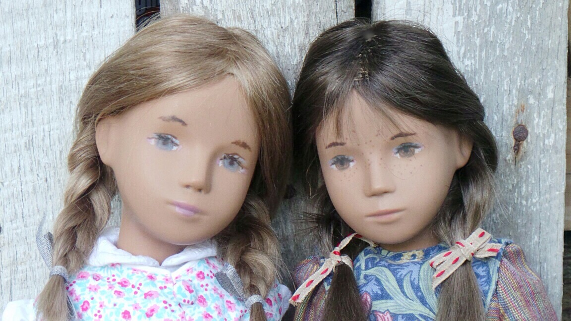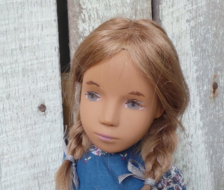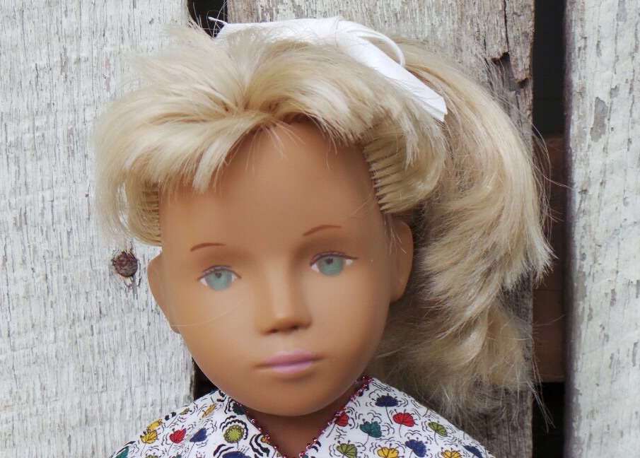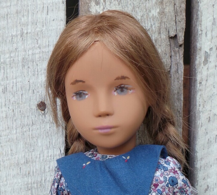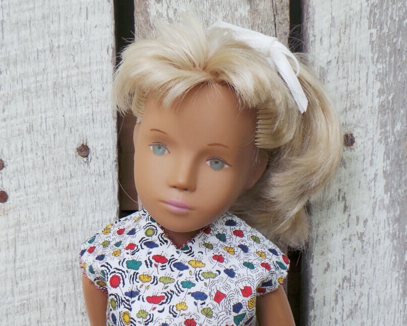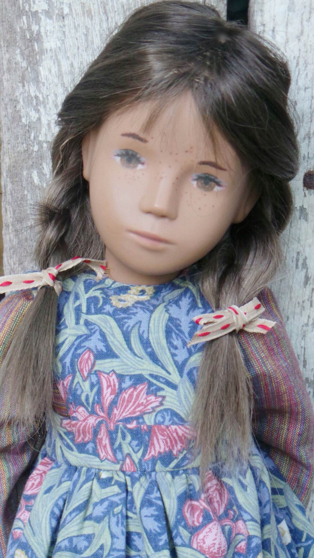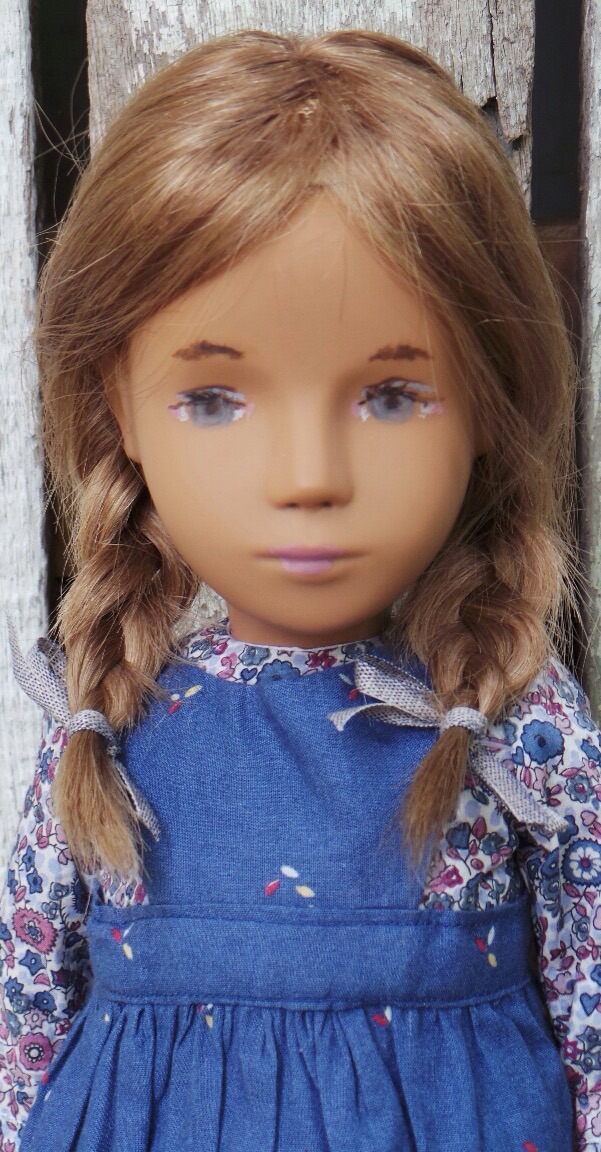 Some of you may have seen this lovely photo taken by Janet Myhill Dabbs and posted on facebook. Janet hand painted this lovely girl and gave her aΒ new life! She had previouslyΒ been a Pintucks girls with a bobbed wig and overall needing a lot ofΒ help. Janet gave her a spa treatment, a new pintucks wig dyed to this delicious new chestnut Β color, restrung her, and created the gorgeous outfit you see her wearing in the photo.Β This new girl’sΒ name is Lizzy. β€