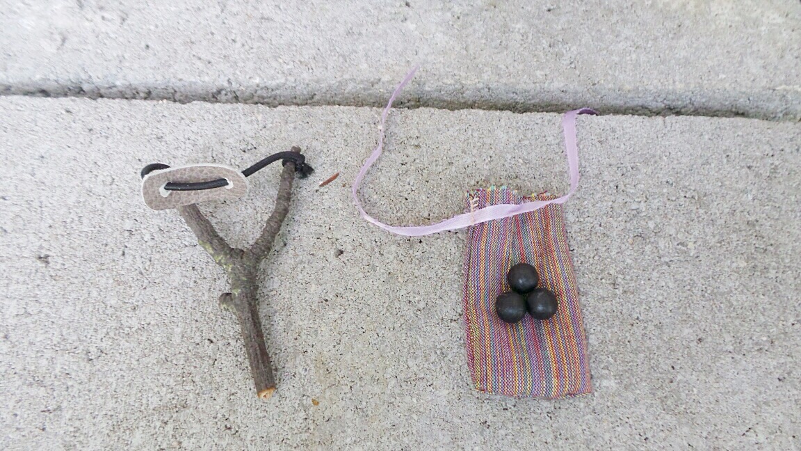 Gertie was so happy to receive this handmade sling shot and bag with ammunition! Gertie wants to practice her accuracy on Dad’s firing range one day soon. π
