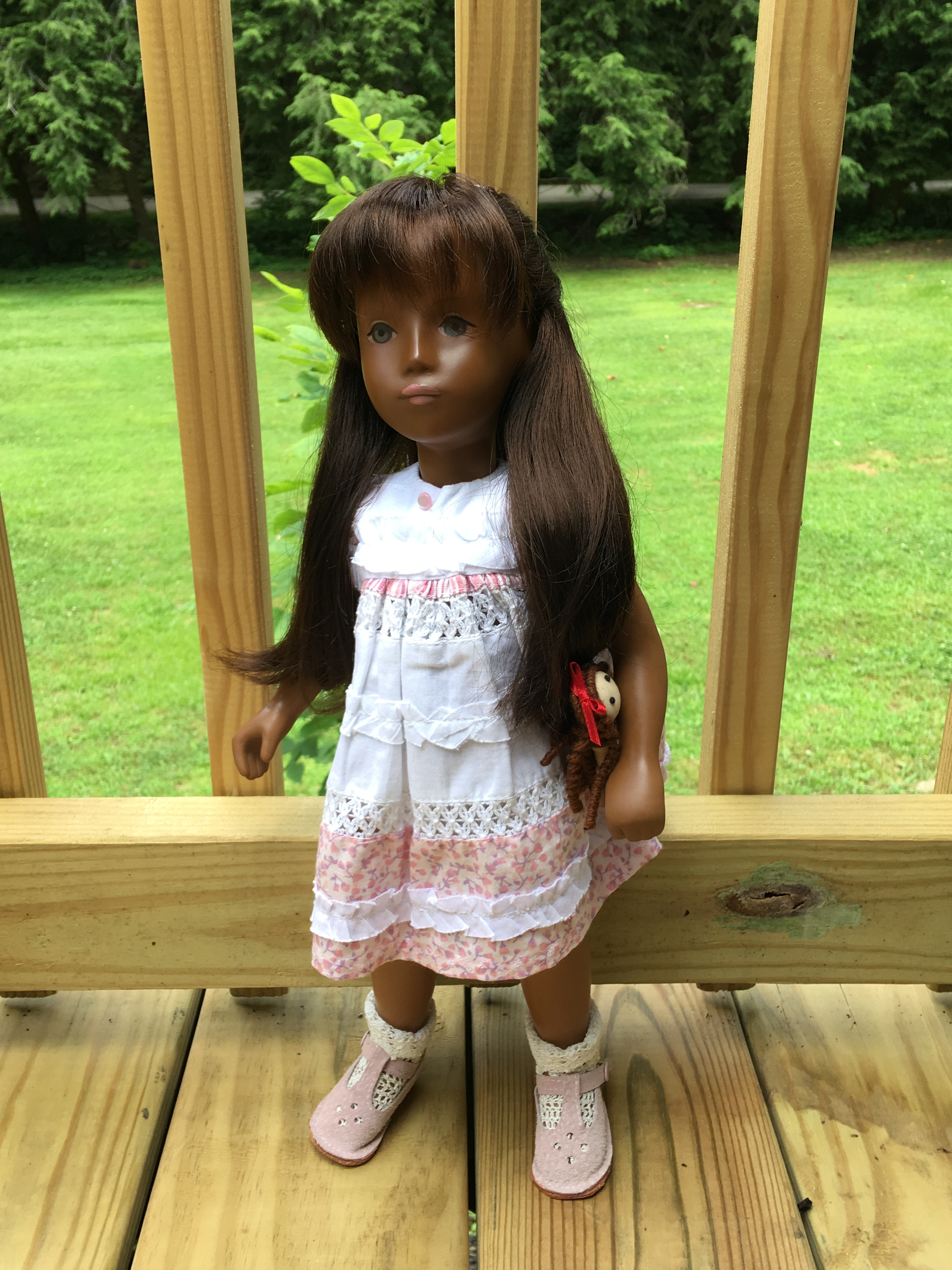 Well, hello there sweetie! This wonderful unisex Sasha doll arrived here at Sasha Shangri-la last Fall. Recently on Facebook, we were asked to show dolls that arrived in our collections in 2025 and also dolls that had left. I have since discovered that I left a few arrivals out of that accounting and this unisex doll was one of them.